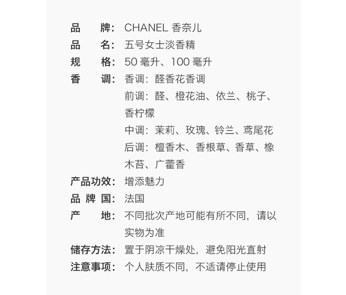 【门店直发 支持同城配送】CHANEL 香奈儿 N°5五号经典女士 EDP 优雅迷人 不能拒绝的诱惑50ml