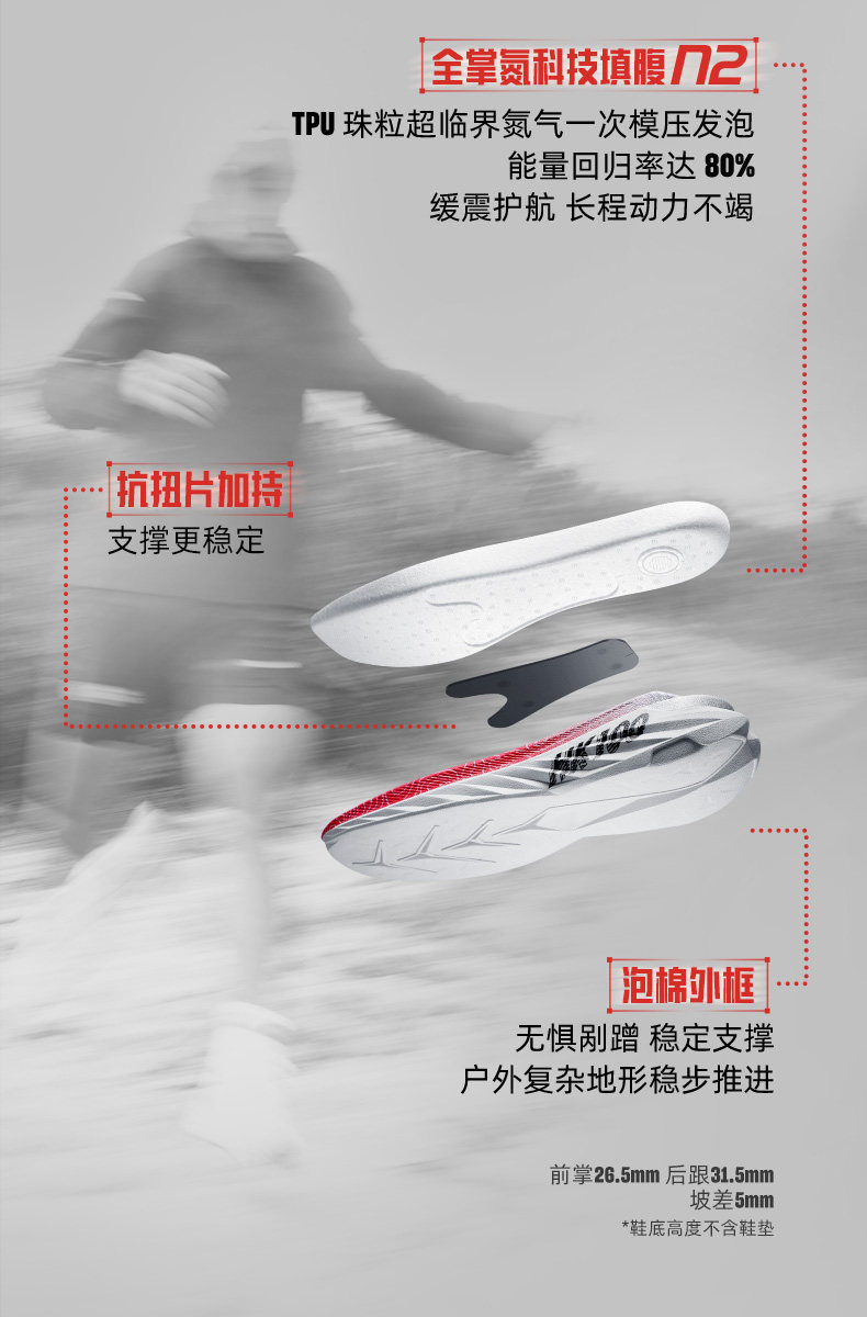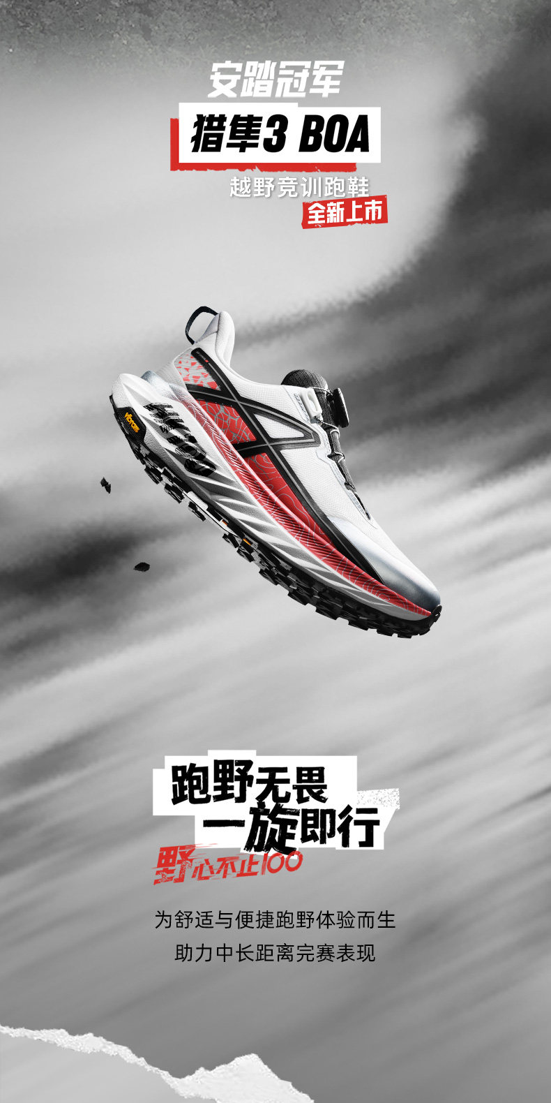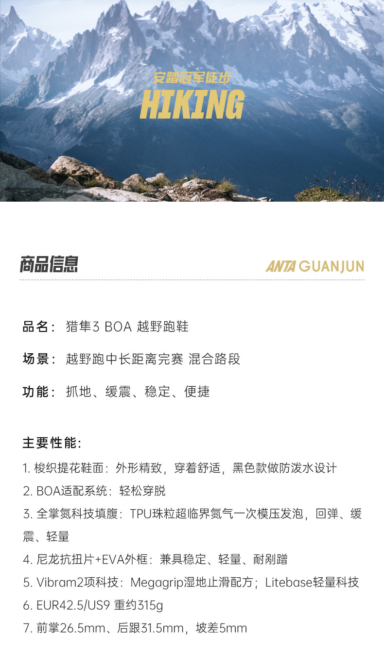 安踏冠军港百猎隼3BOA越野跑鞋男女Vibram氮科技户外鞋112615508A