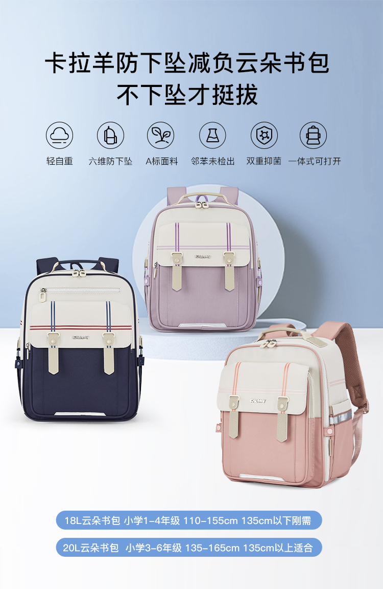 【云朵书包3.0轻盈版】卡拉羊小学1-6年级六维防下坠云朵书包 苏格兰 CX2193+CX2661