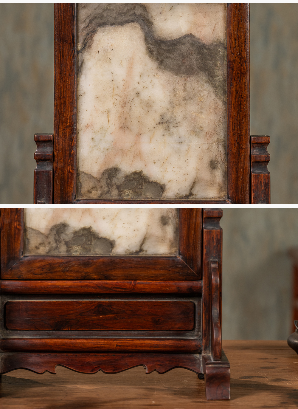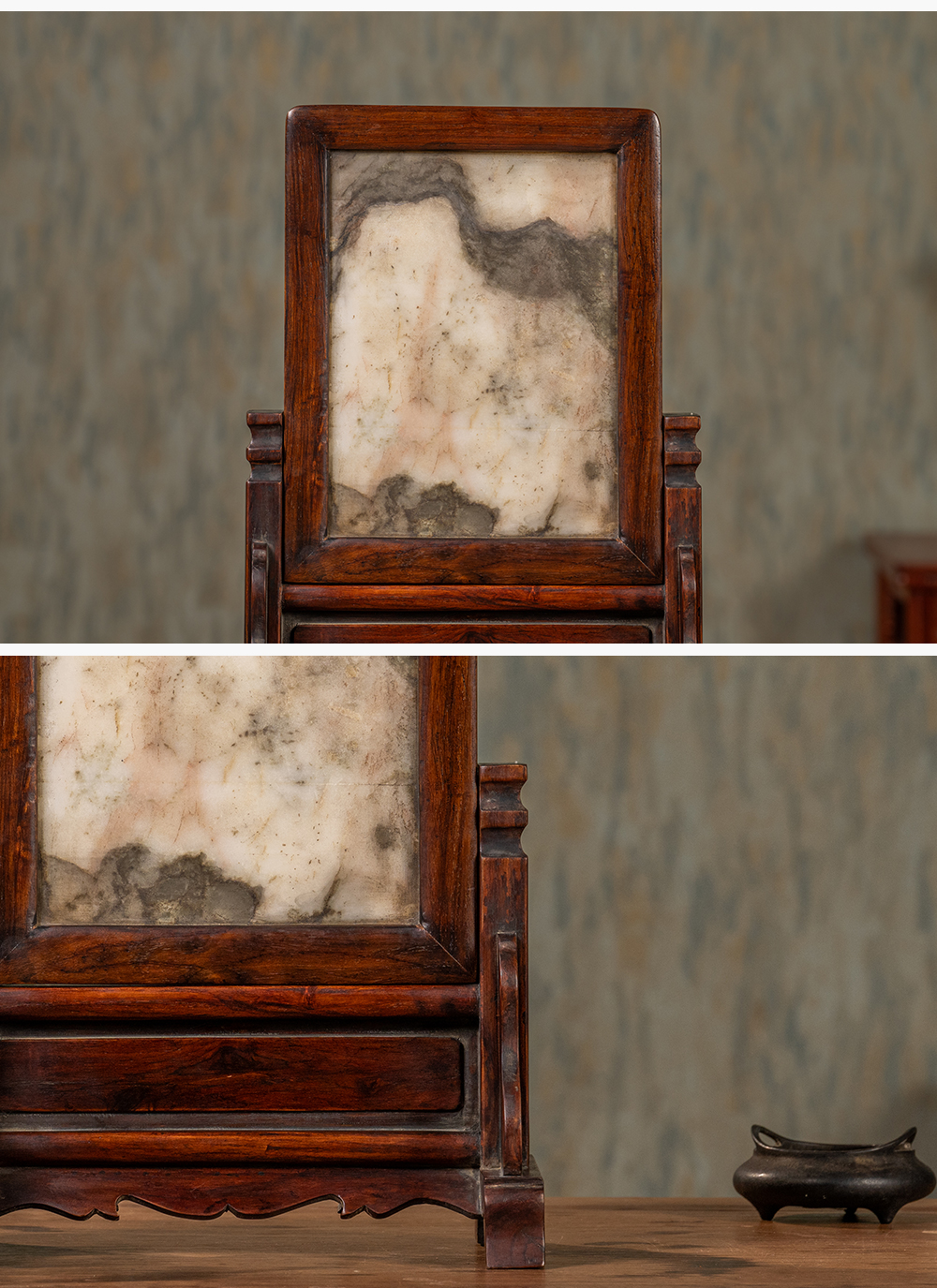 二十世纪 红木螭龙纹带围栏三层架格(一对)