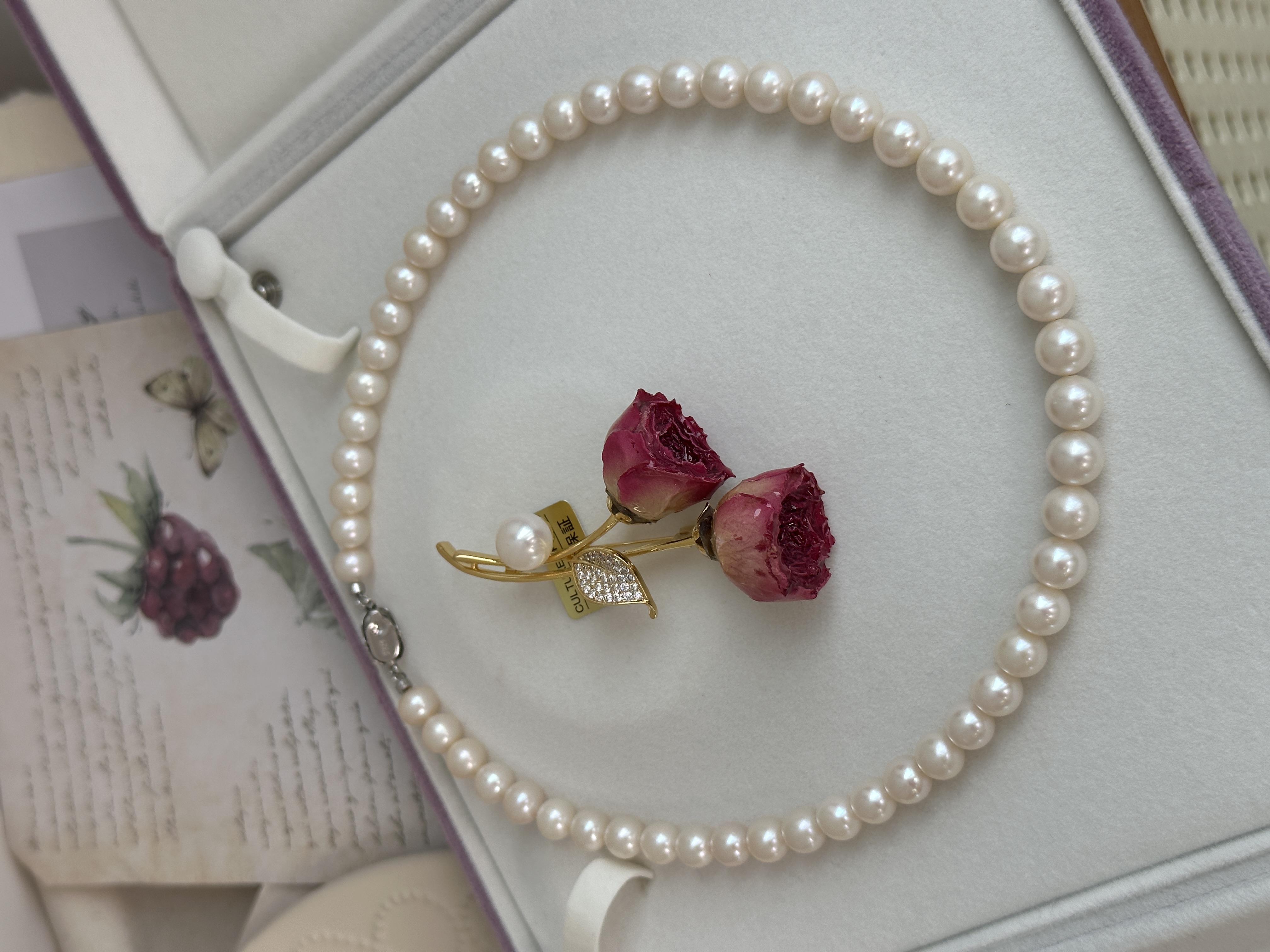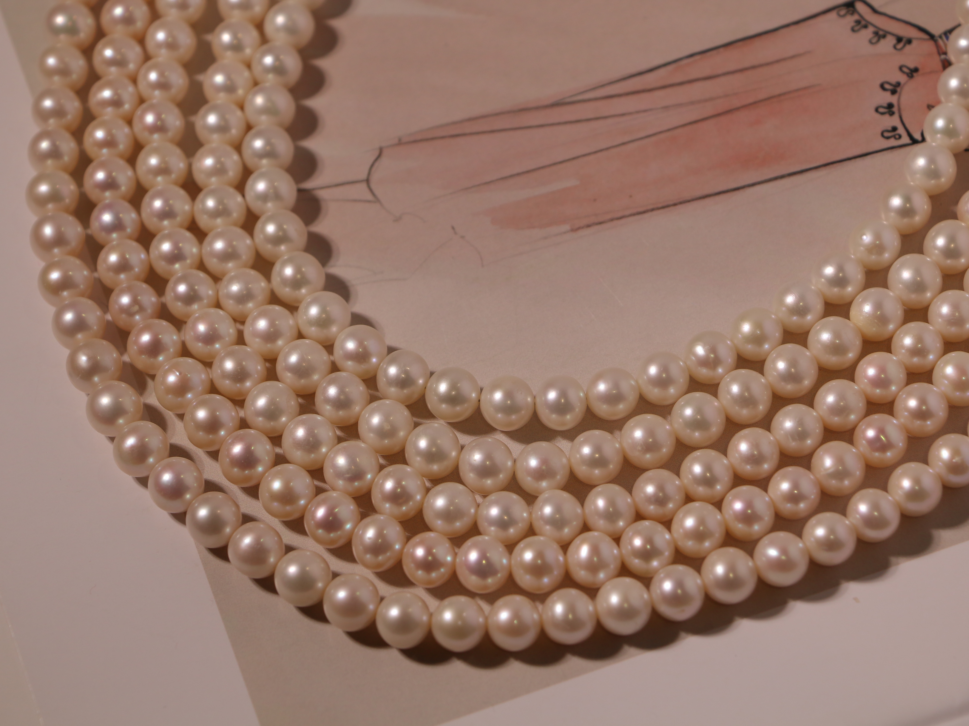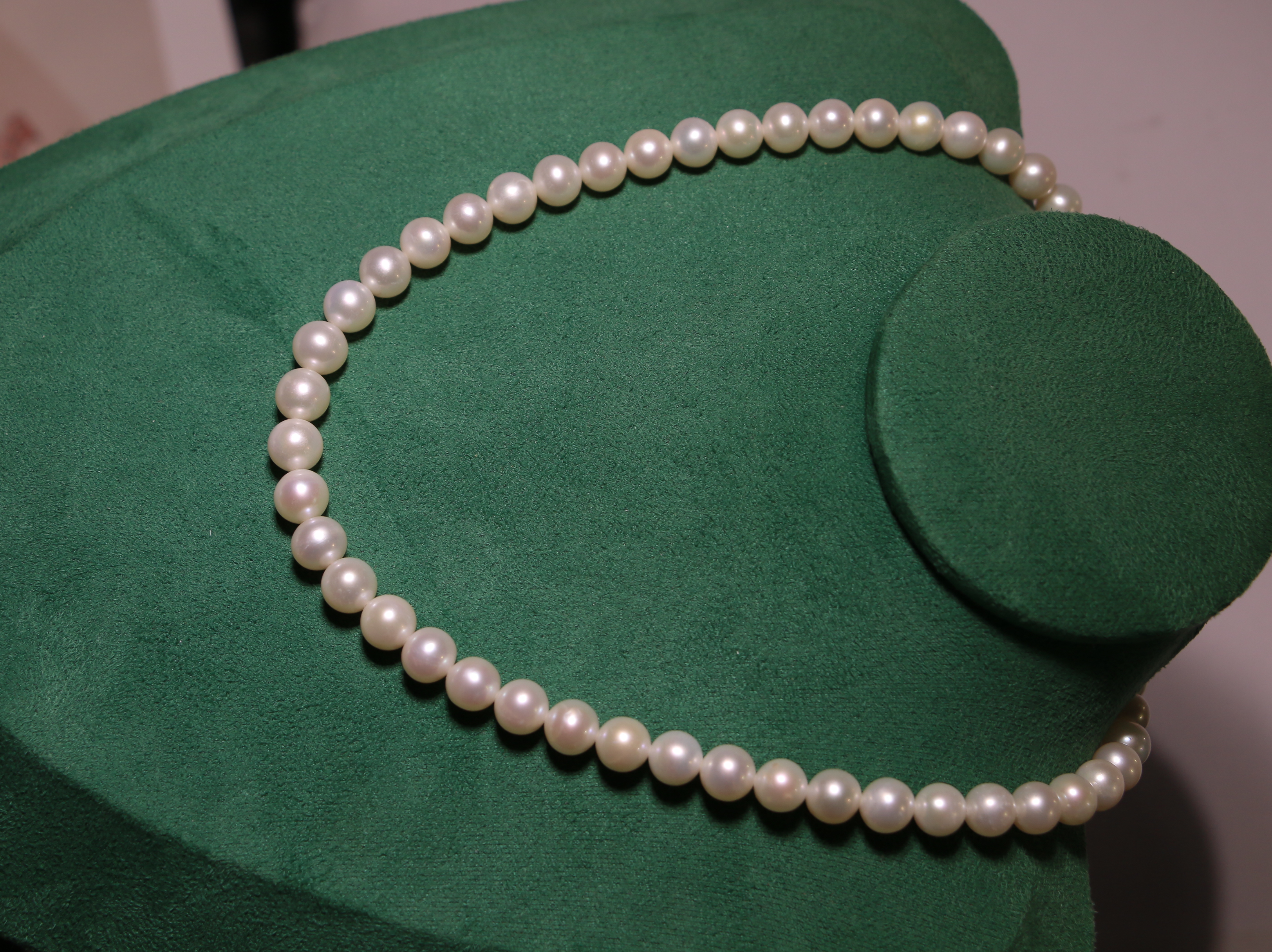 第三组:7.5-8.5mm,近正圆,无暇。这几条是无暇的,适合对瑕疵要求比较高的妈妈们哦~佩戴之后视觉上也是蛮圆的,所以性价比很高的哦。售价1380一串。