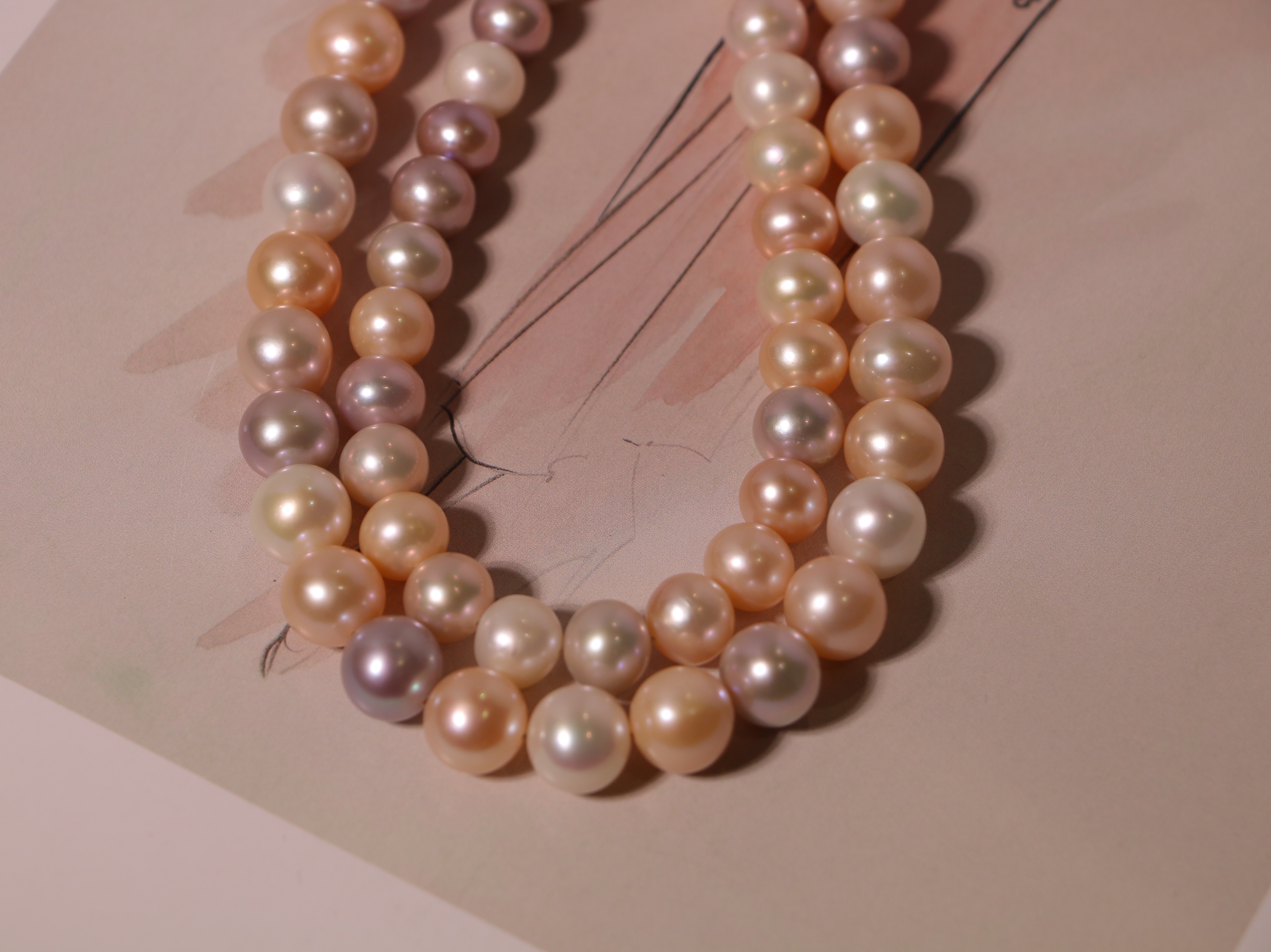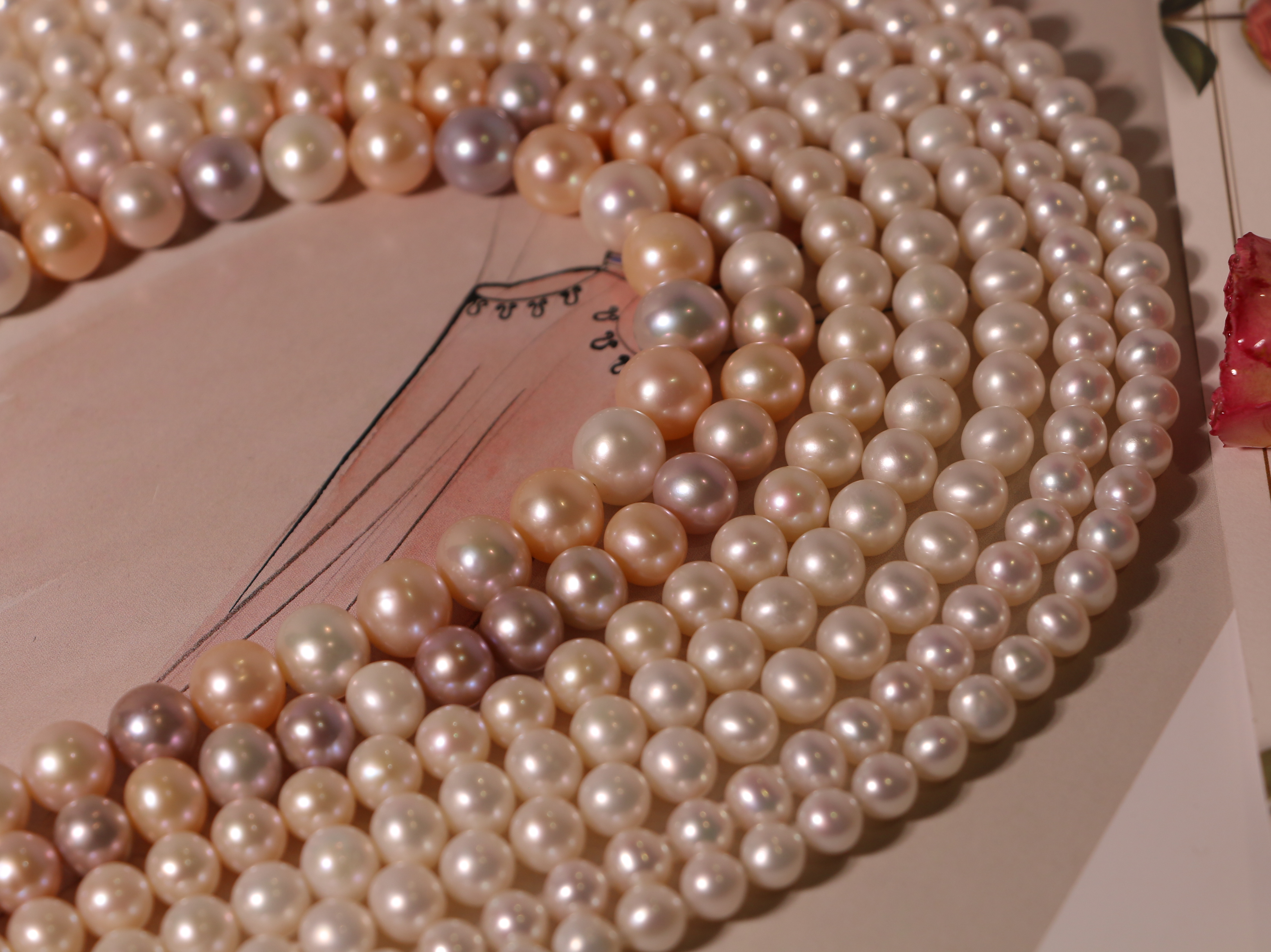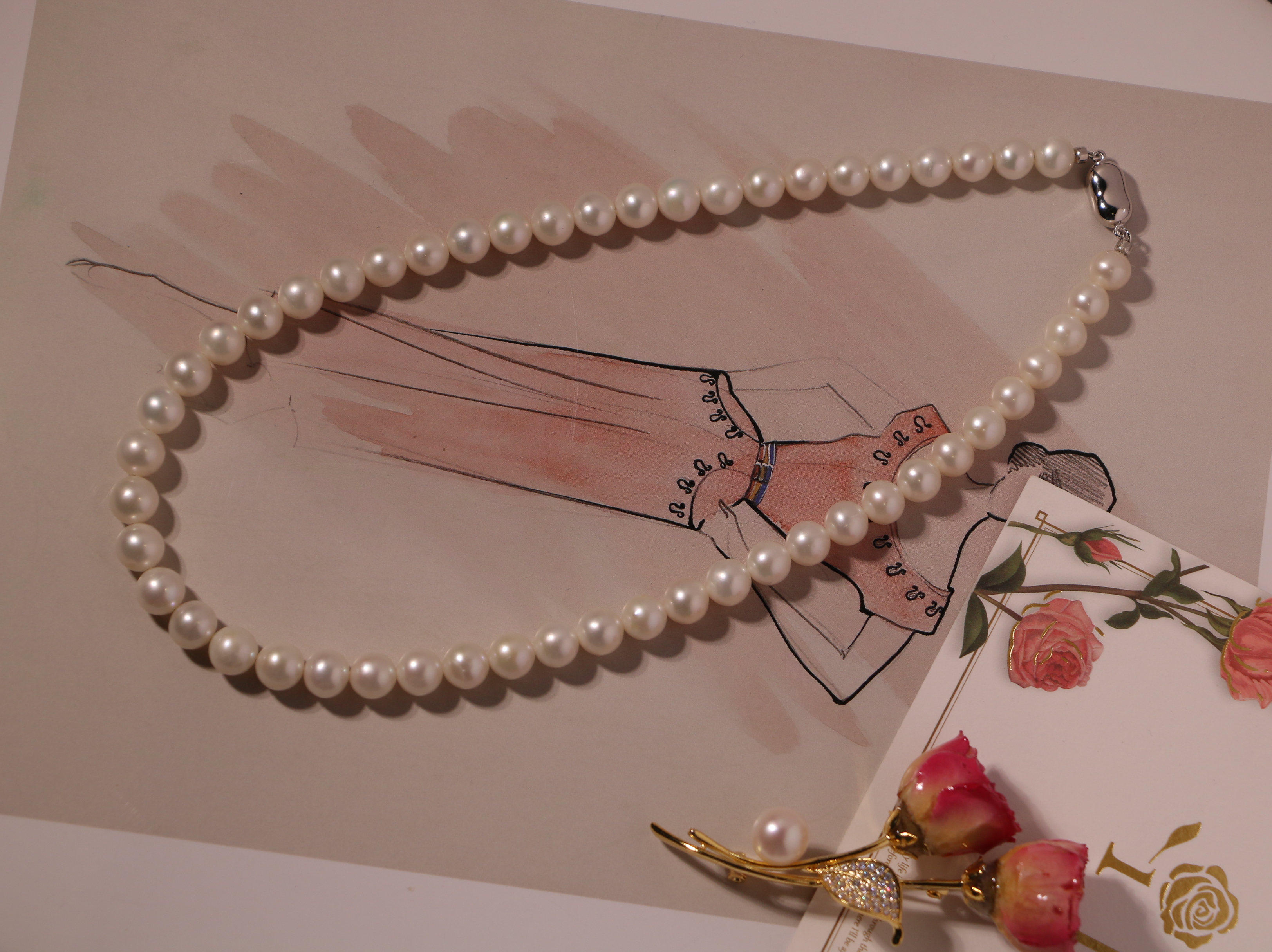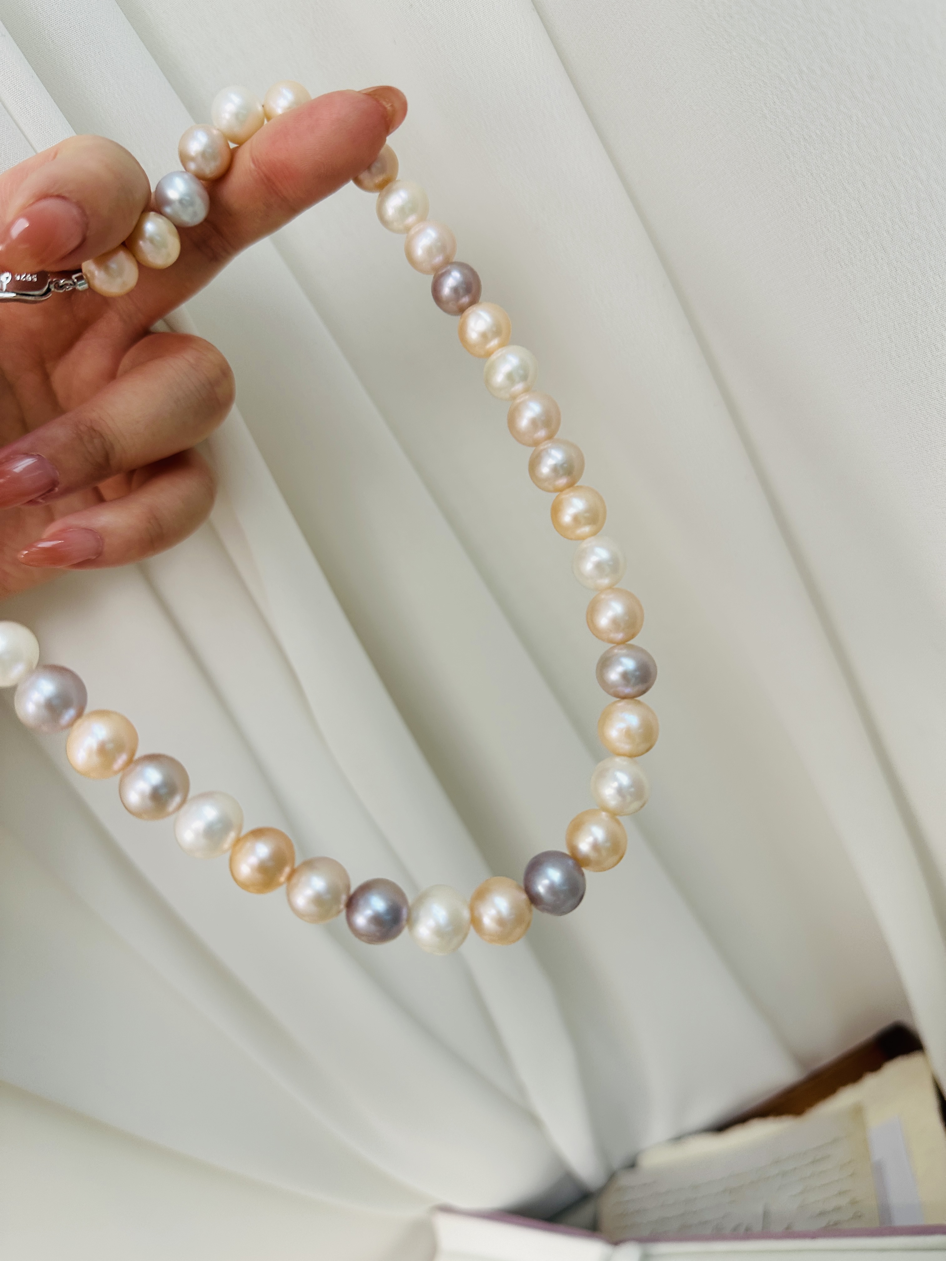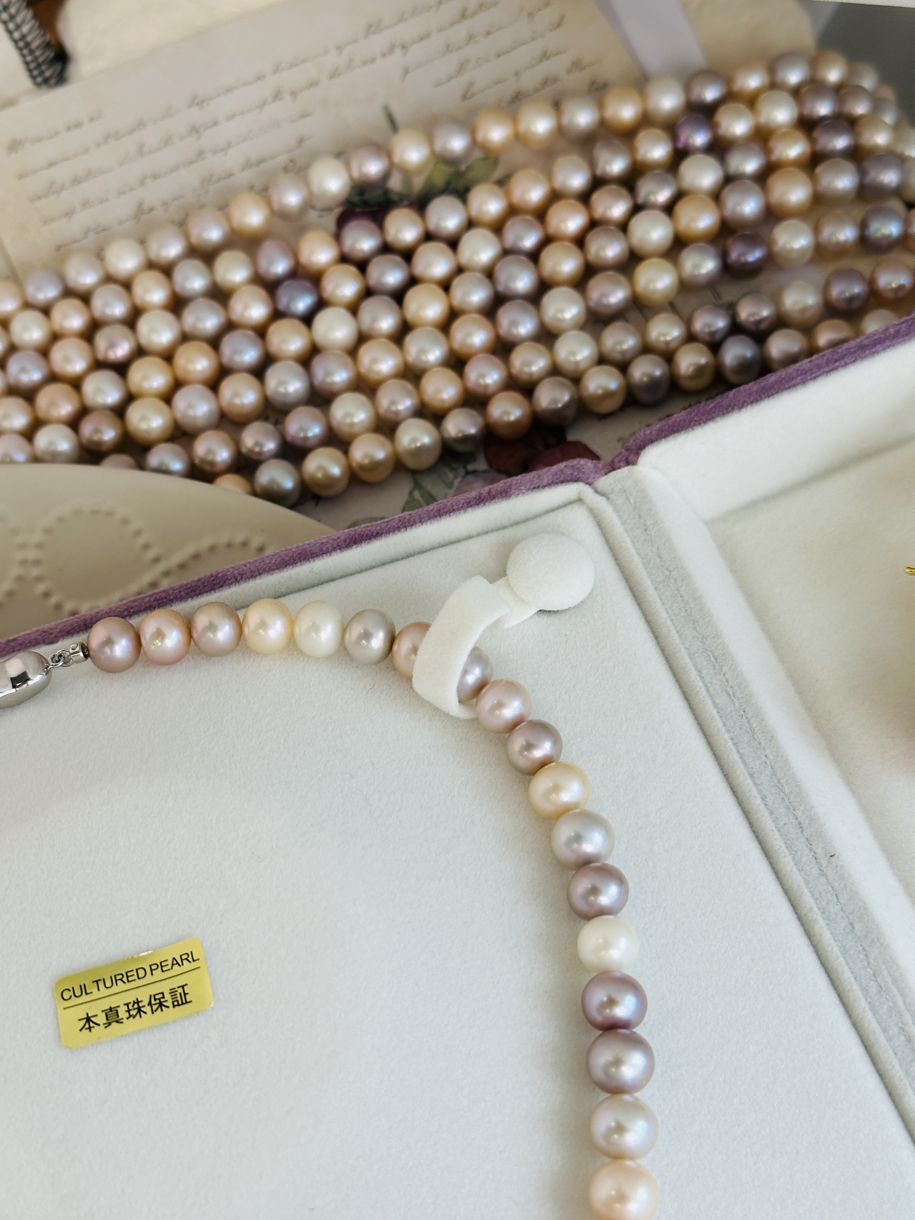 第四组:8.5-9.5mm,温柔的糖果色。考虑到有些妈妈们已经有经典的白珠了,想要转换一下心情。这个糖果色是不错的选择。近圆,微瑕级别,不挑人的。售价980一串