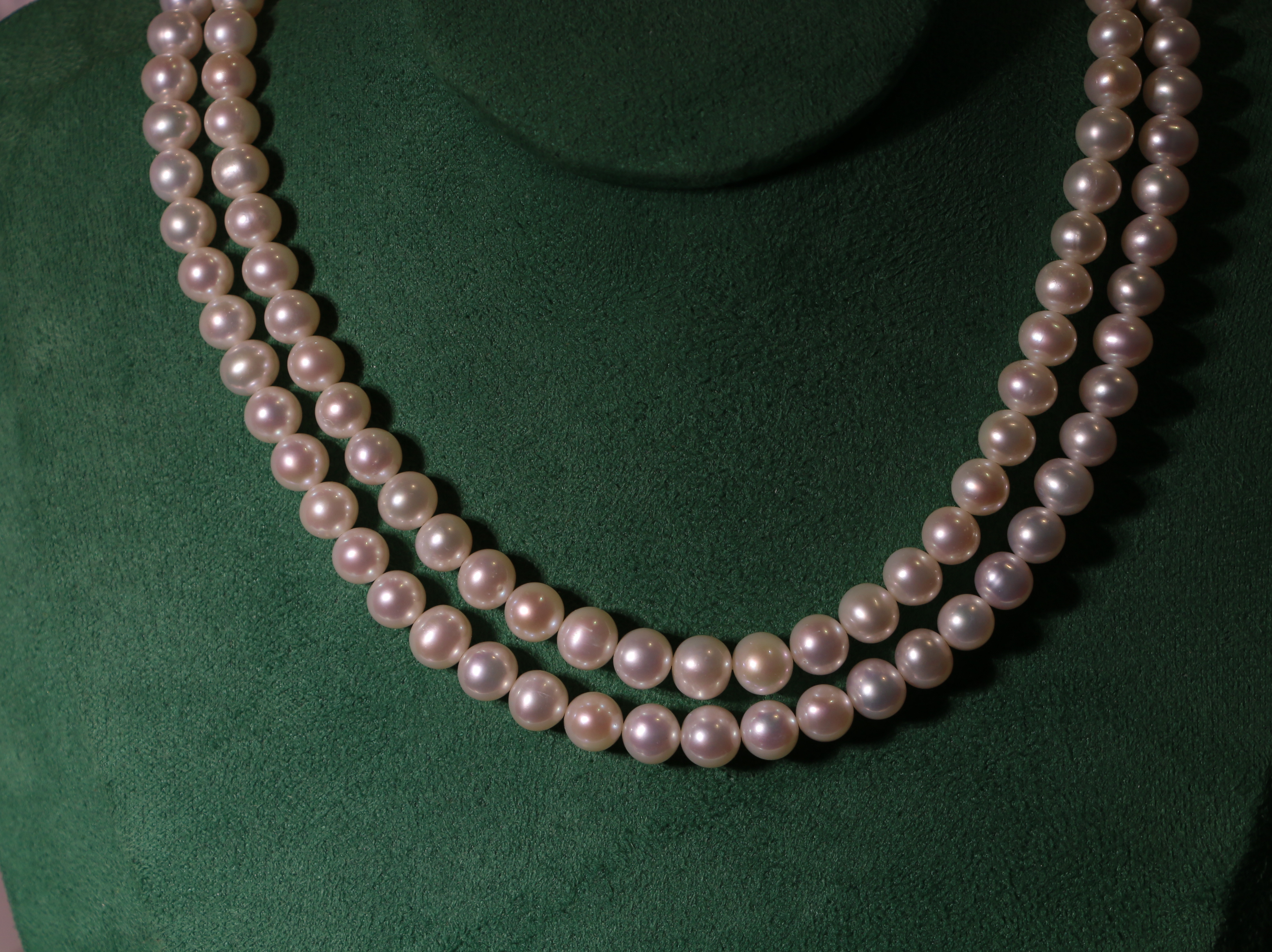 第二组:7.5-8.5mm,正圆,微瑕。这是妈妈链最经典的尺寸,整体长度42.5cm。售价880一串。