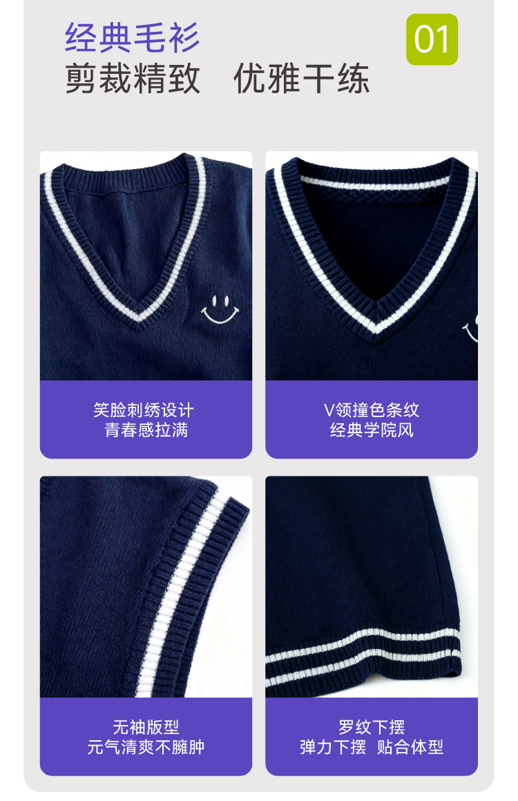 学院风毛衫V领针织马甲(春秋款)