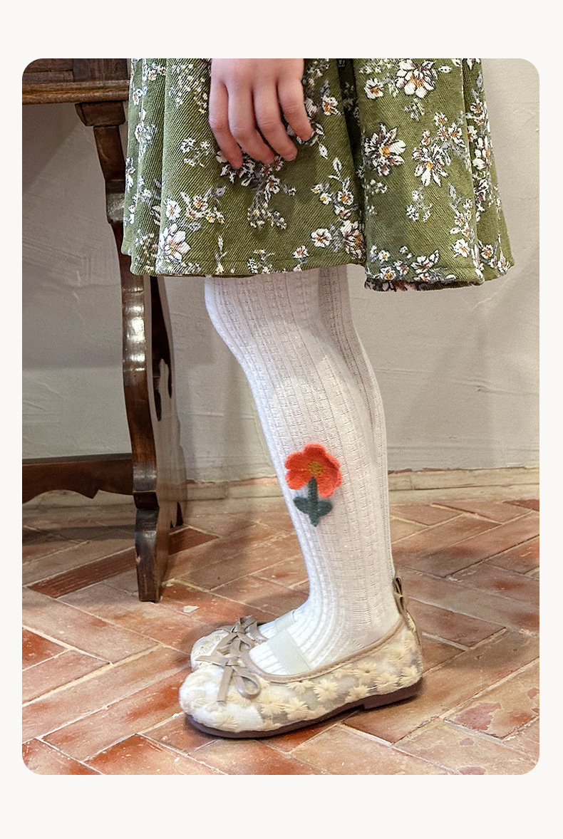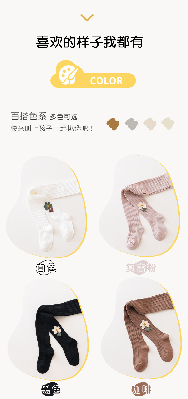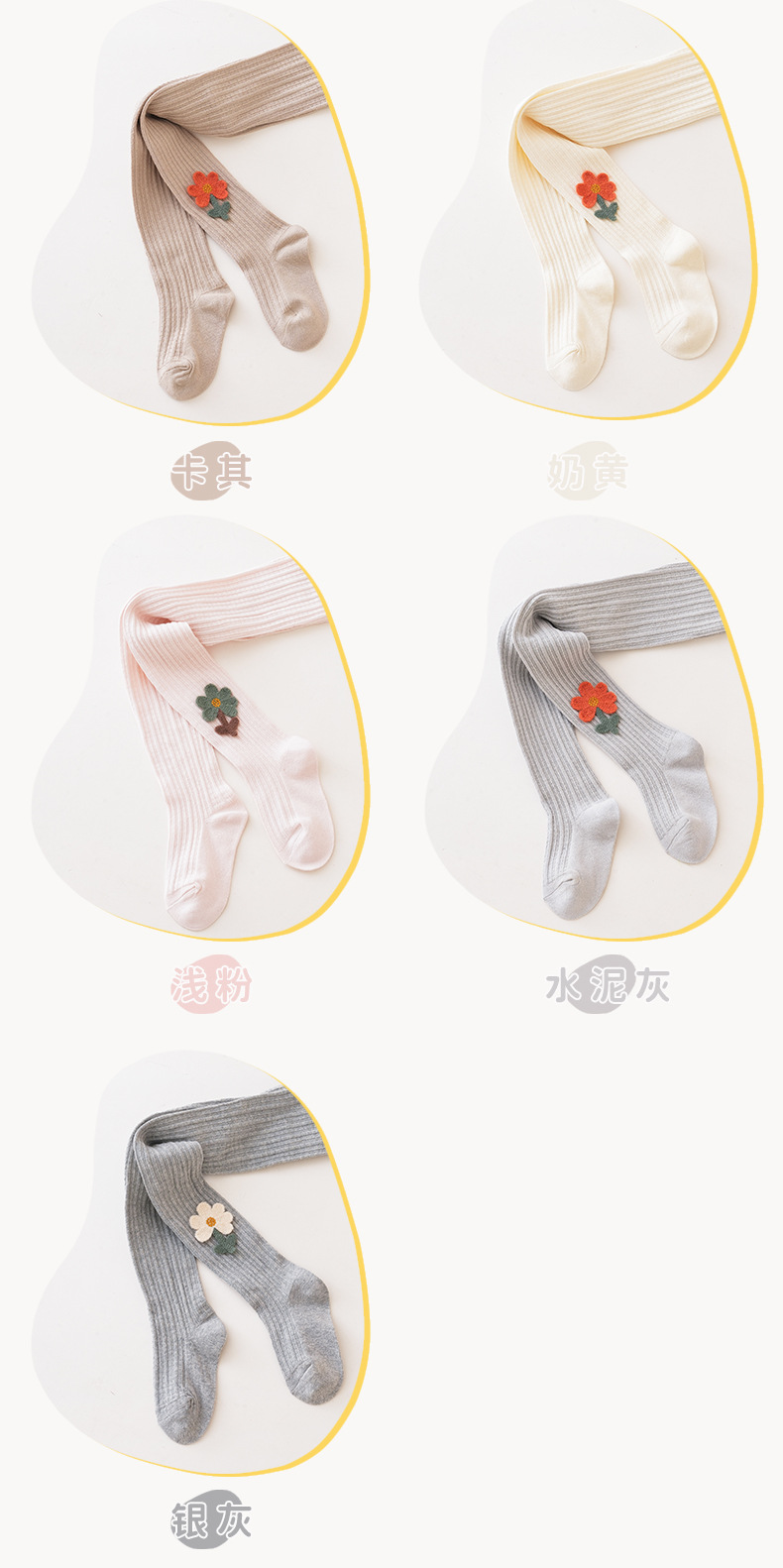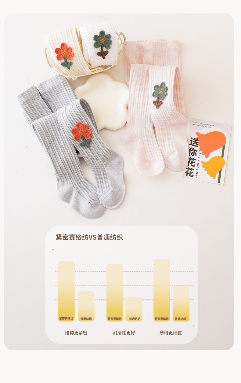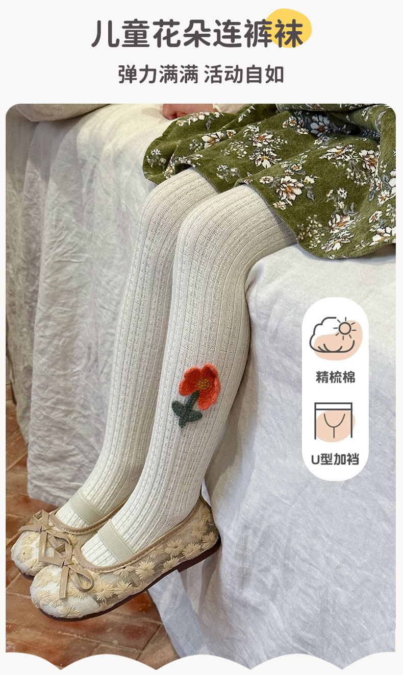 【儿童花朵连裤袜,弹力满满,活动自如】裤袜女童打底裤春秋款 儿童裤袜a类 纯色田园花朵 大弹力宝宝连裤袜-QQ