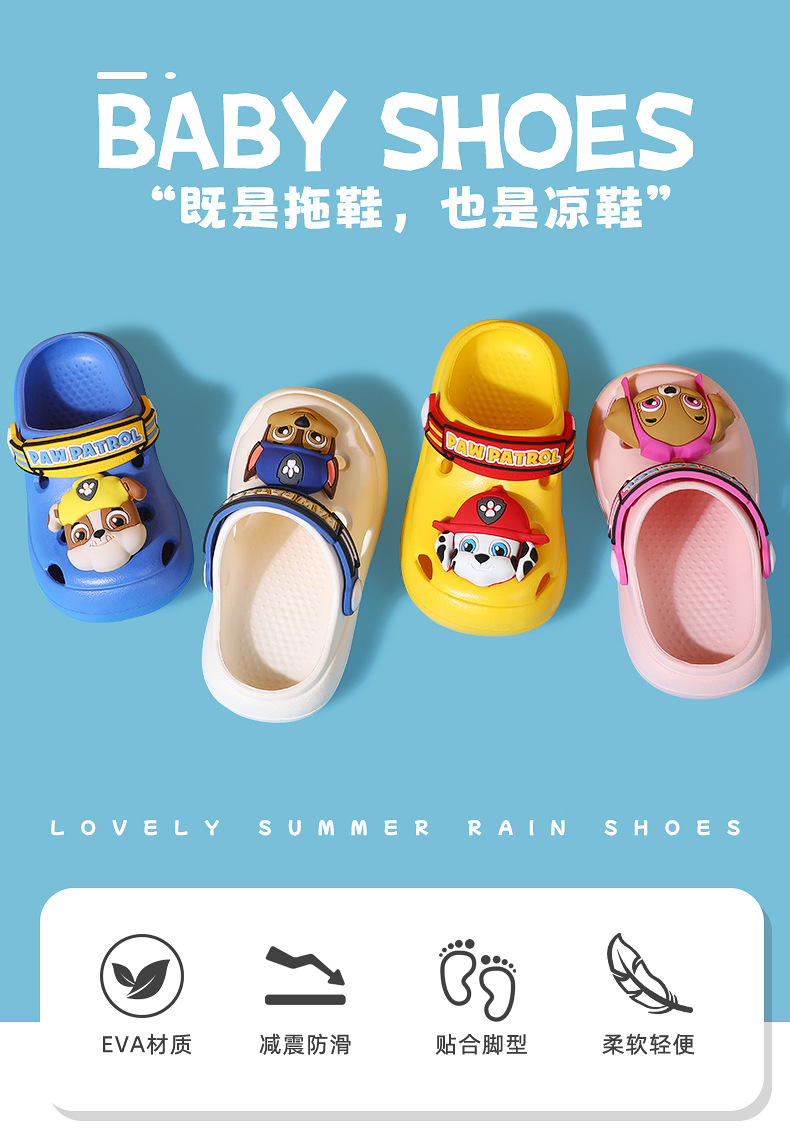 【BABY SHOES 既是拖鞋 也是凉鞋】汪汪队儿童凉拖鞋 男童夏季洞洞鞋 宝宝小童凉鞋 室内防滑沙滩拖鞋女孩-QQ