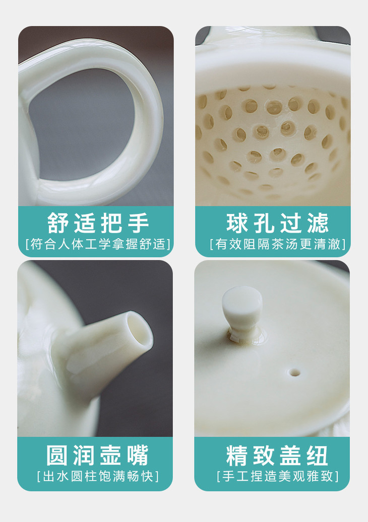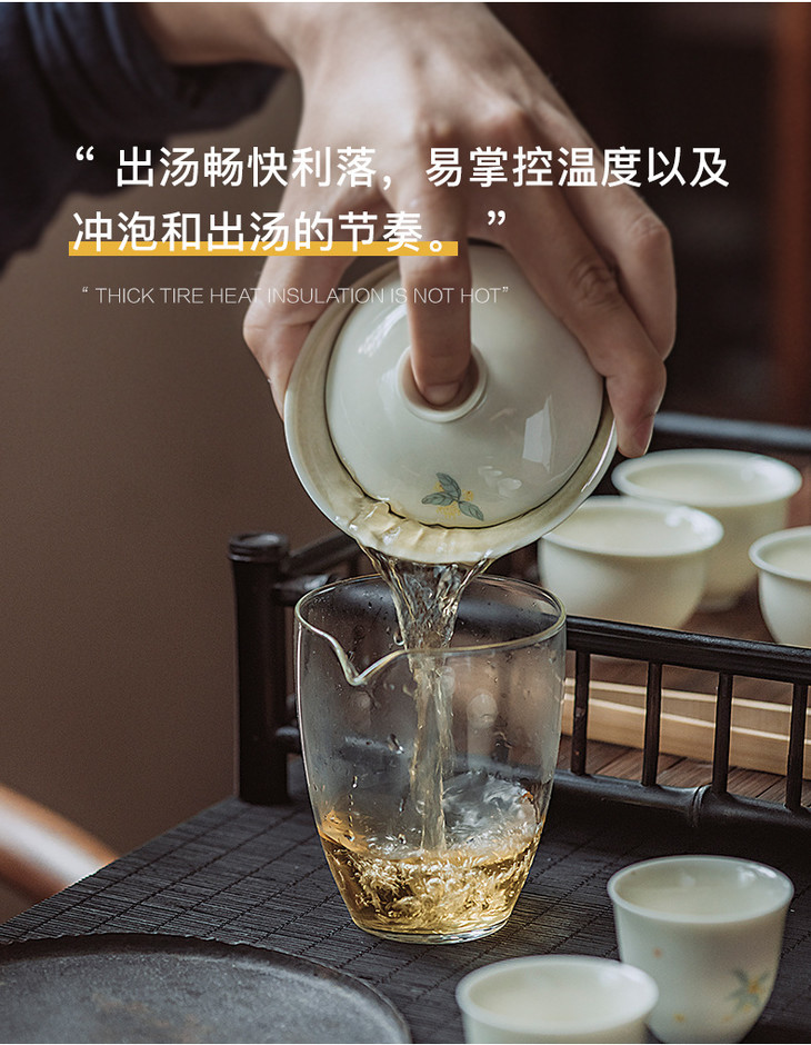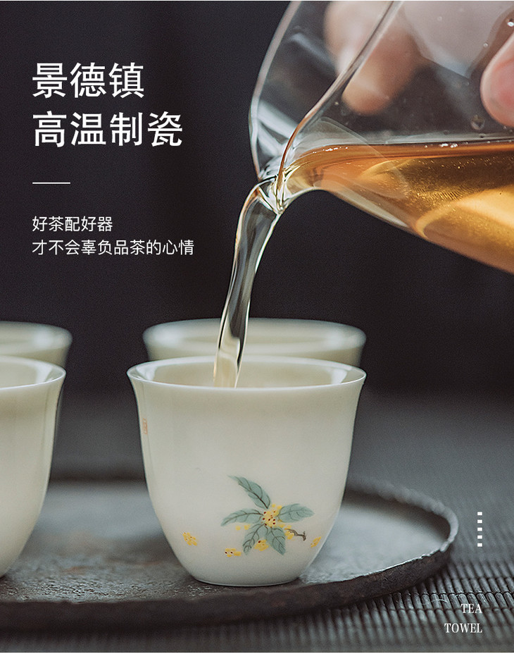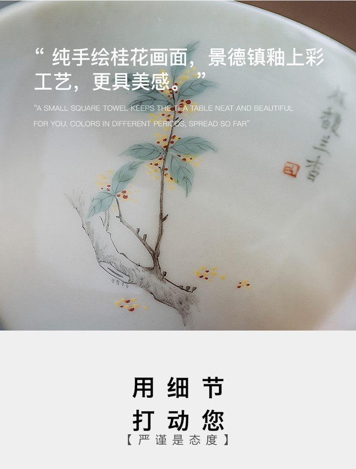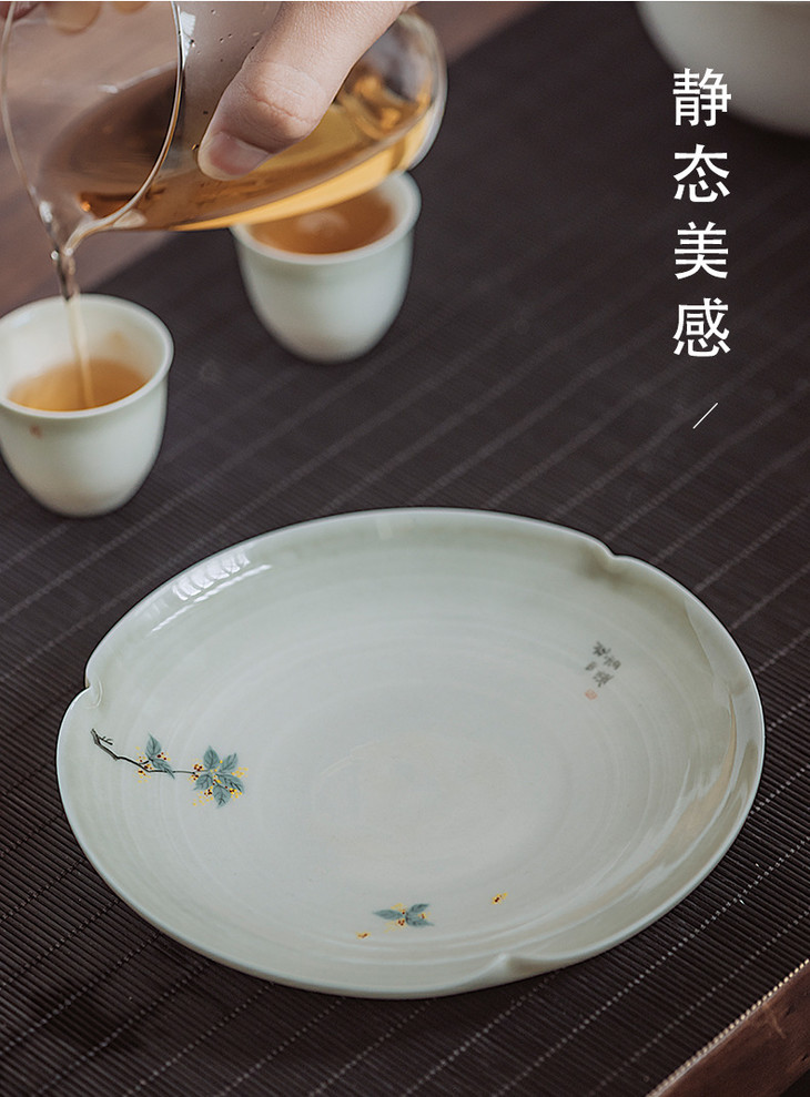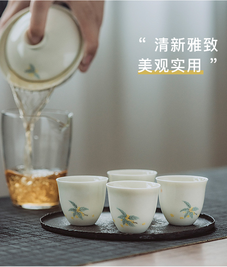 「景德镇手工手绘桂花茶壶茶具」青灰釉宋代美学球孔小茶壶 品茗杯 复古干泡盘 三才盖碗 家用陶瓷茶具