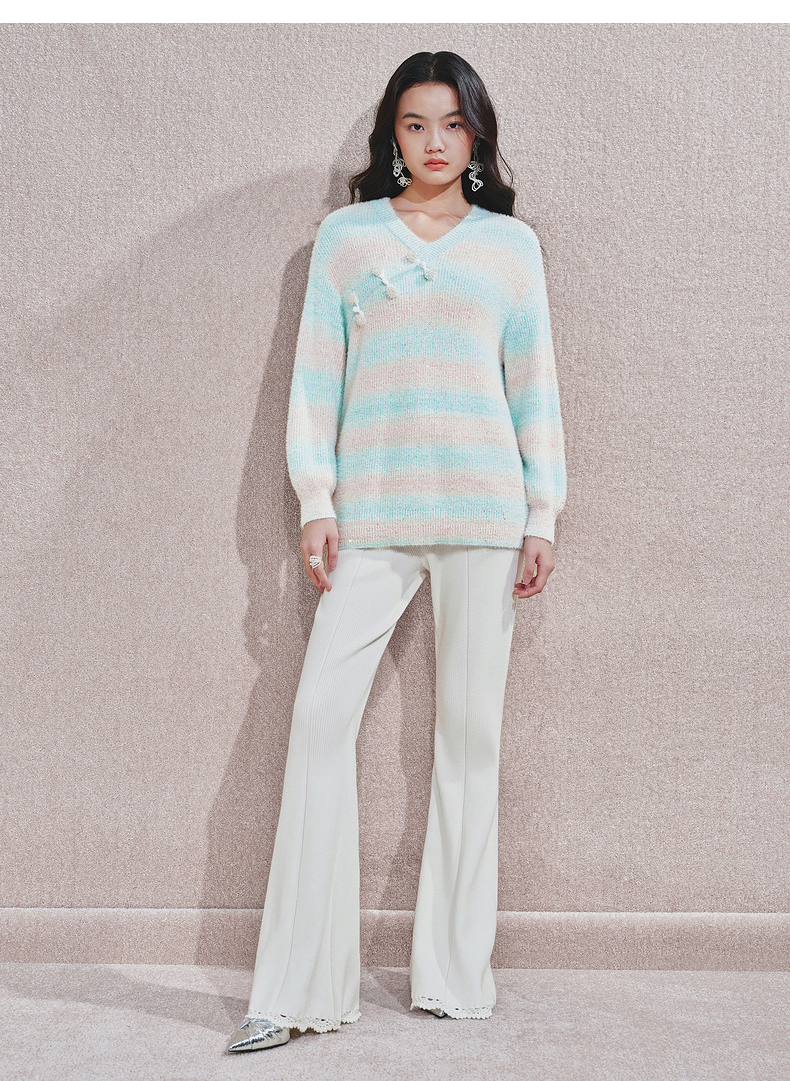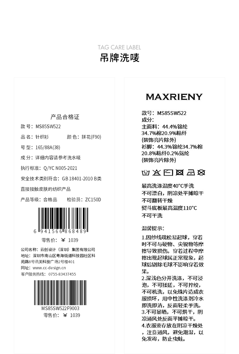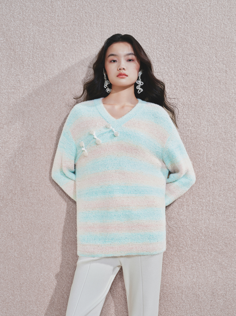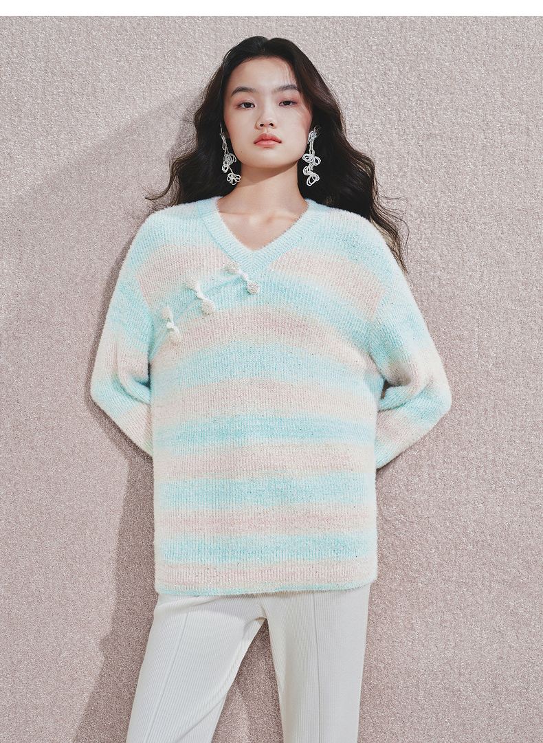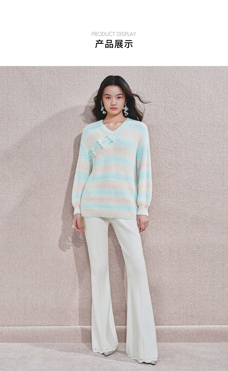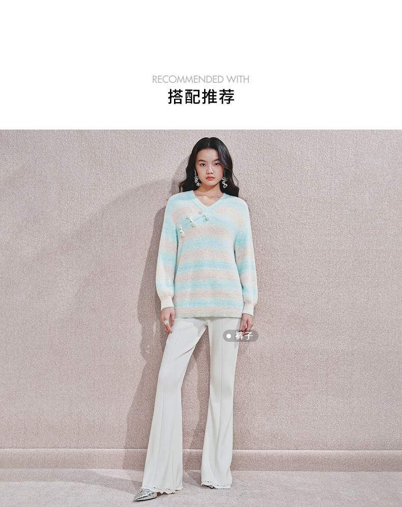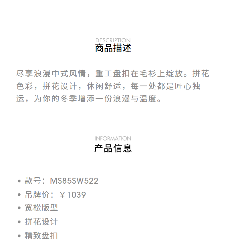 玛克门店发货:MAXRIENY浪漫中式套头针织毛衫秋冬慵懒宽松上衣女(货号:MS85SW522)