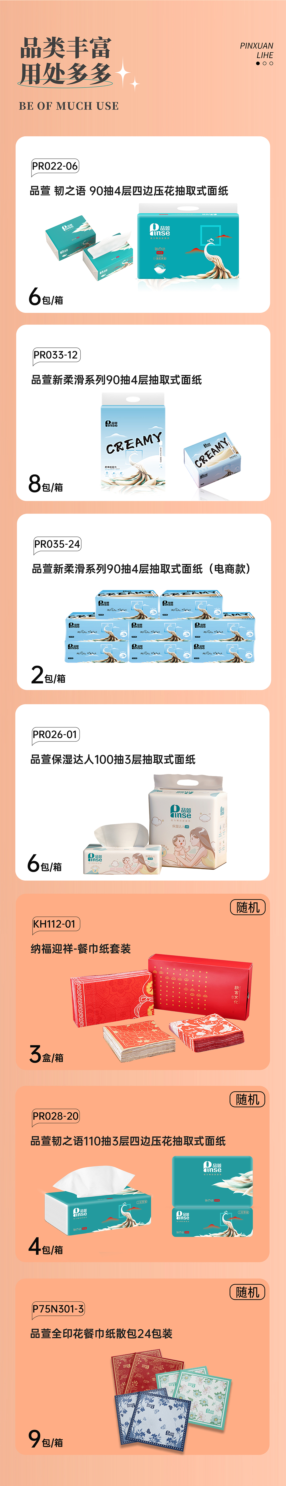 品萱 柔滑系列130抽塑包抽纸 8包*6提 整箱装