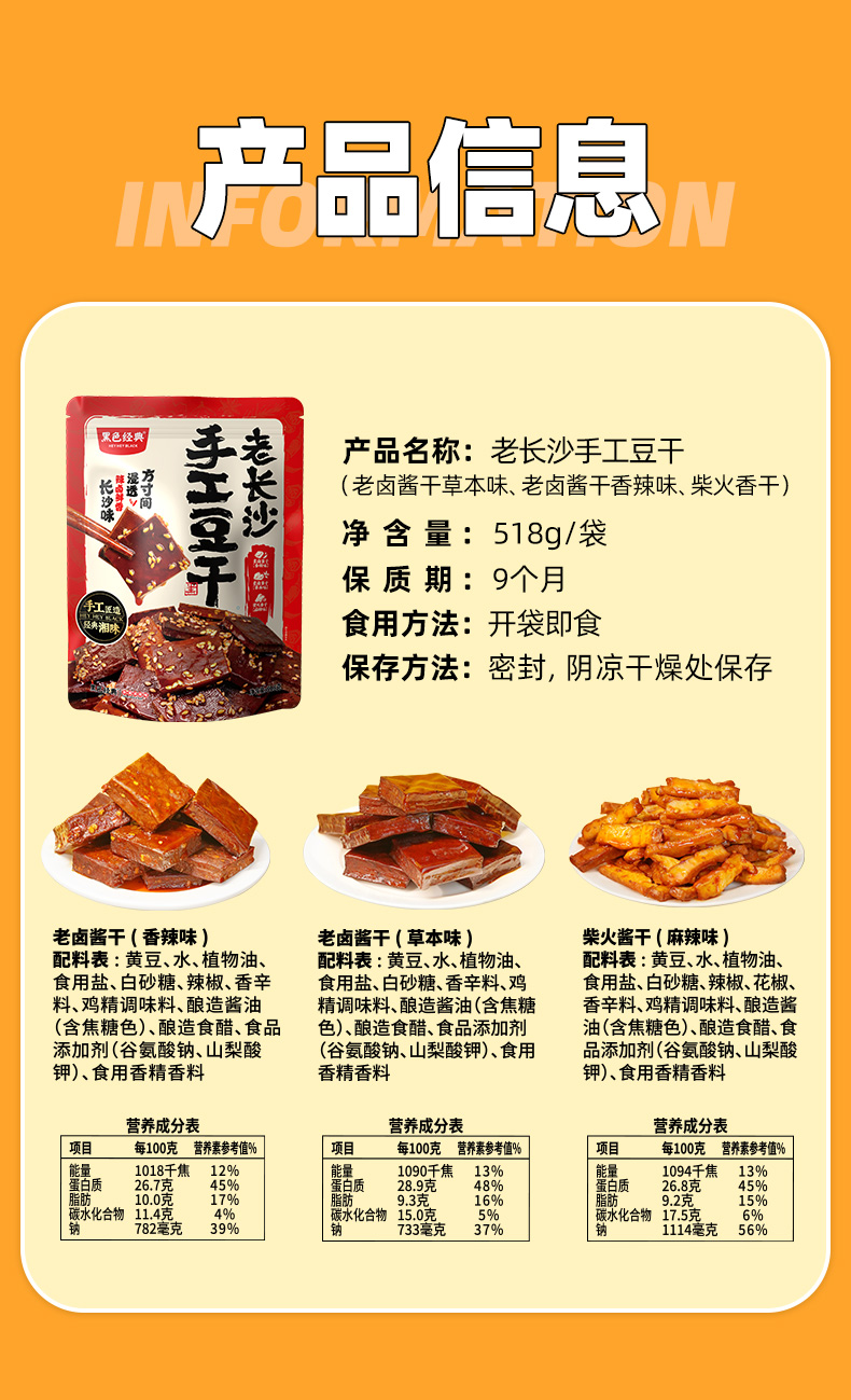 黑色经典老长沙手工豆干大礼包518g/包 香辣老卤多款口味