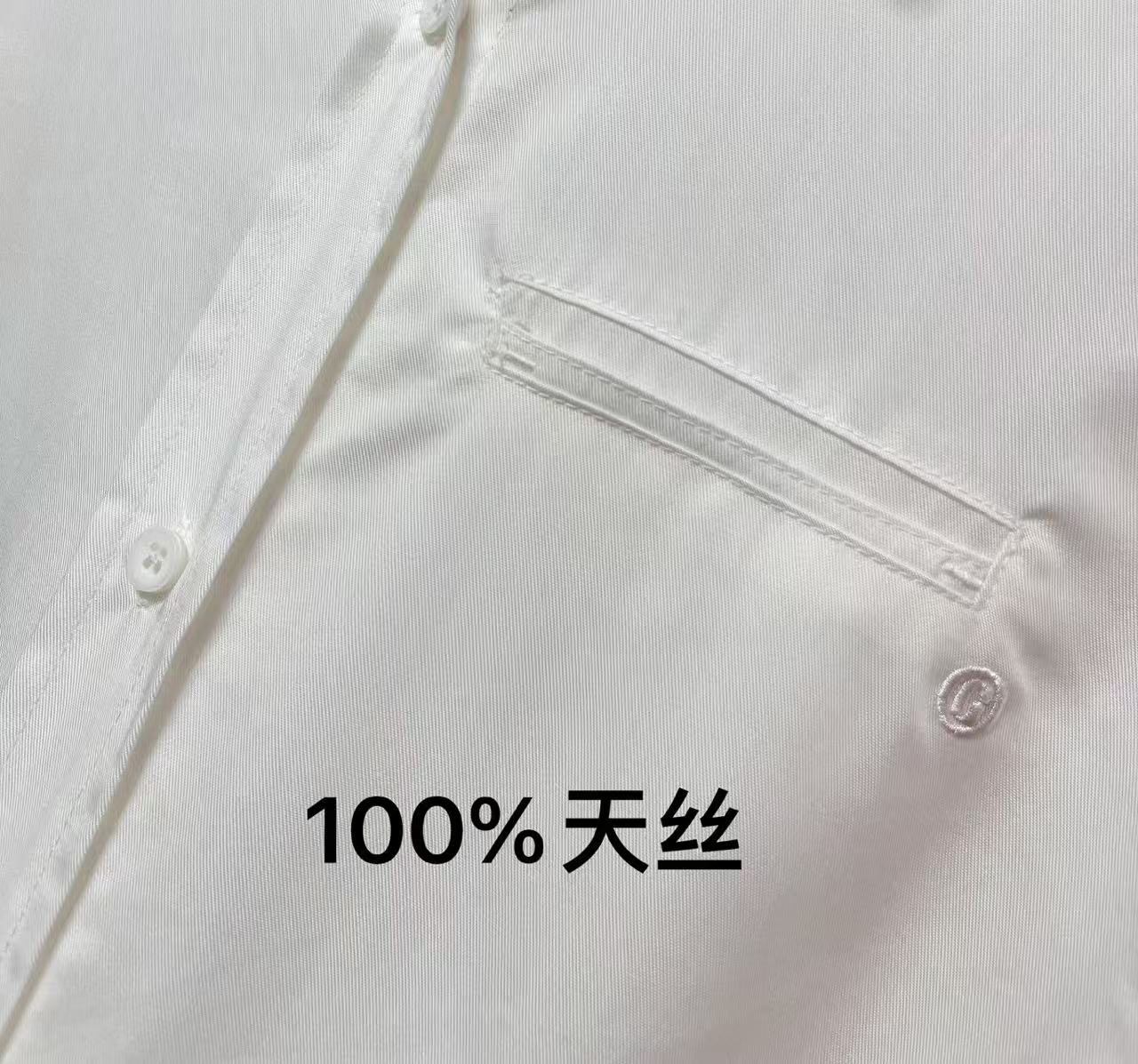 【秋新品】古泥7700 100%天丝刺绣标简约白色衬衫-喜出
