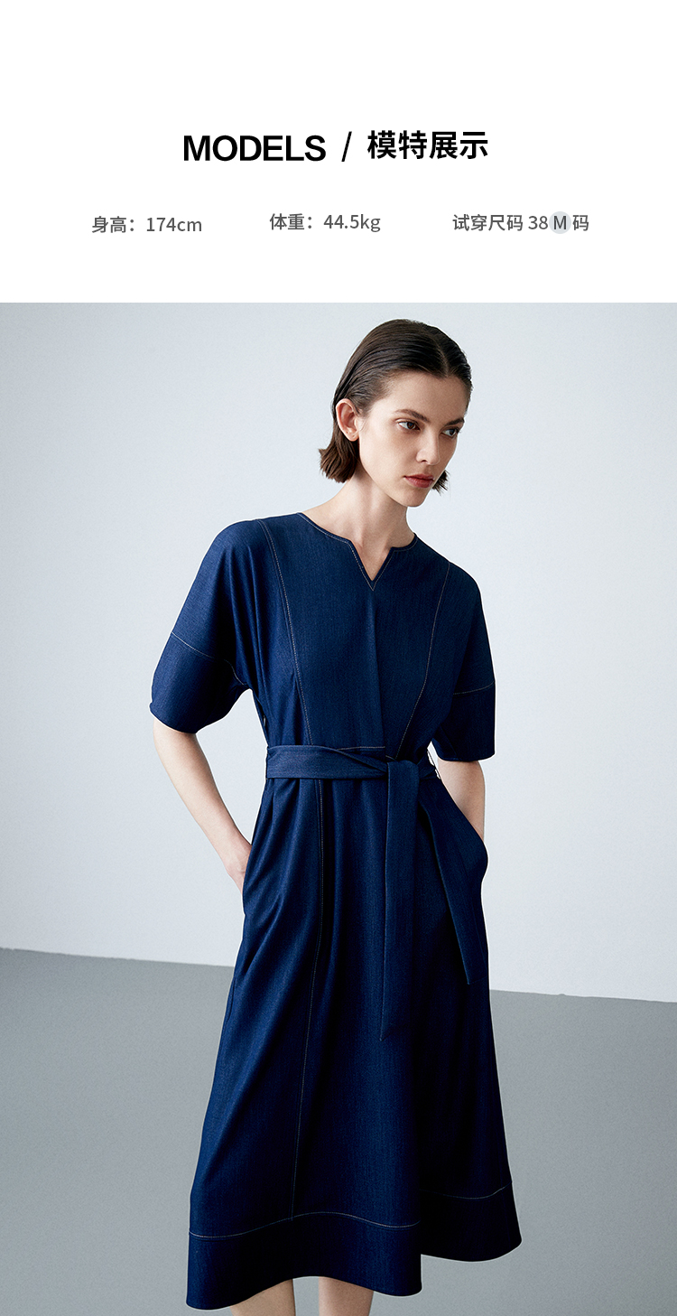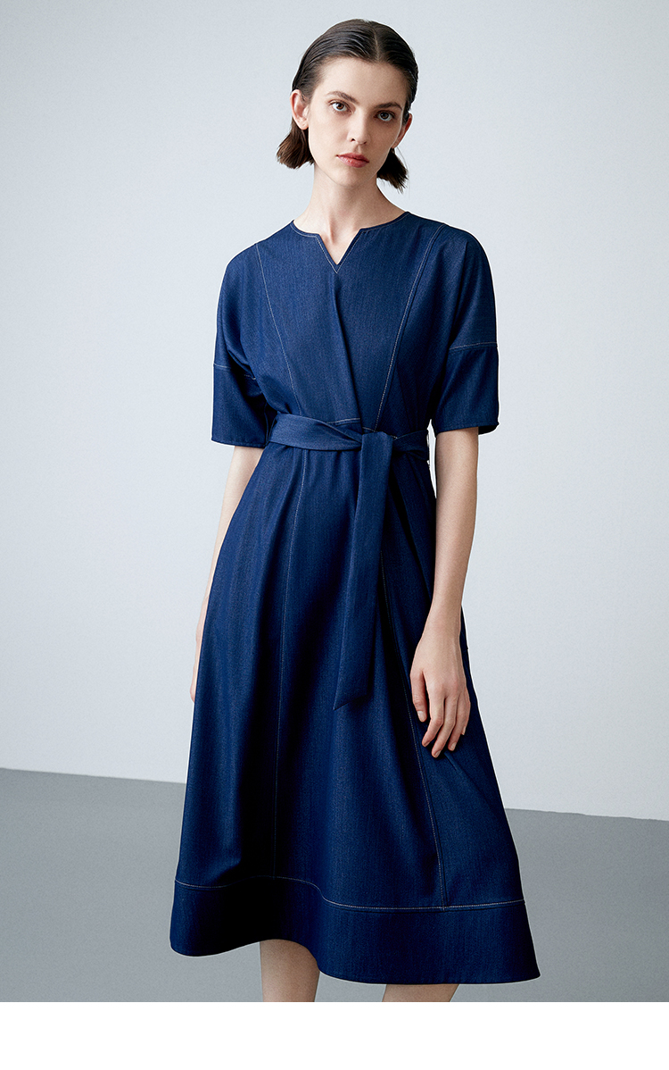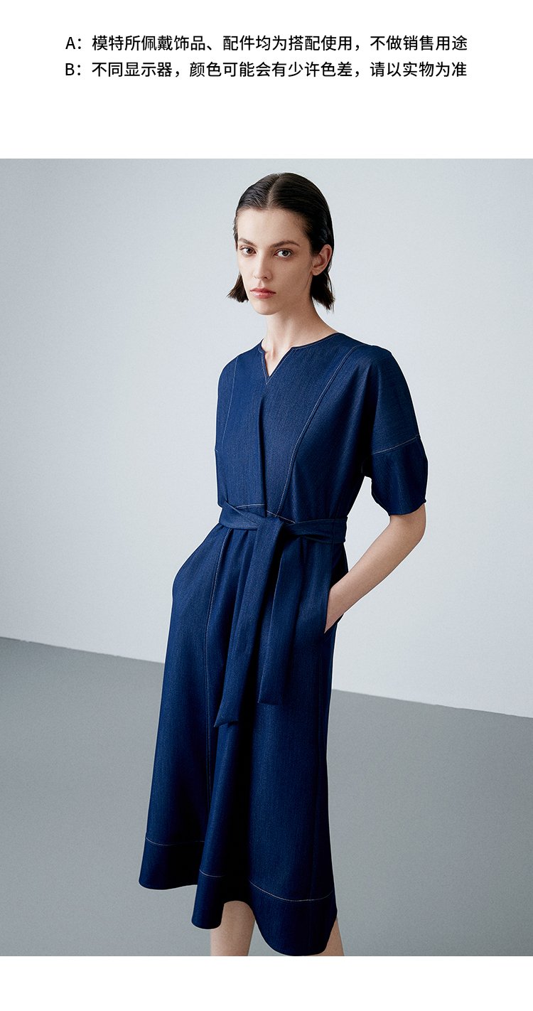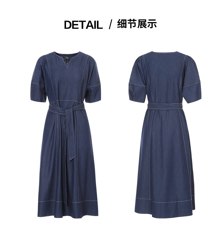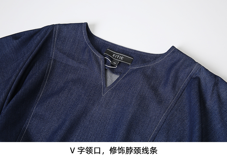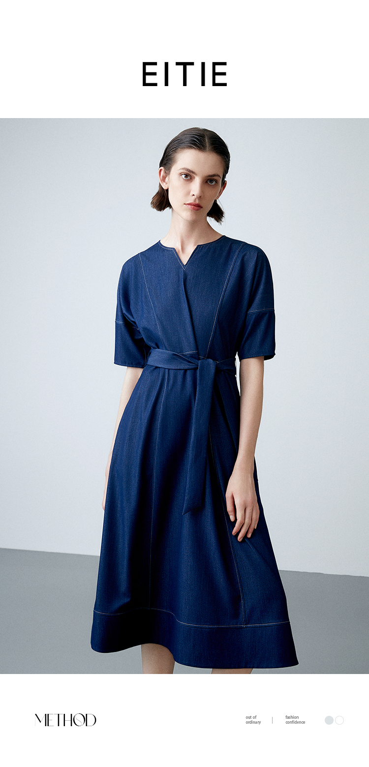 EITIE爱特爱夏季新款复古牛仔V领收腰显瘦通勤连衣裙7807510