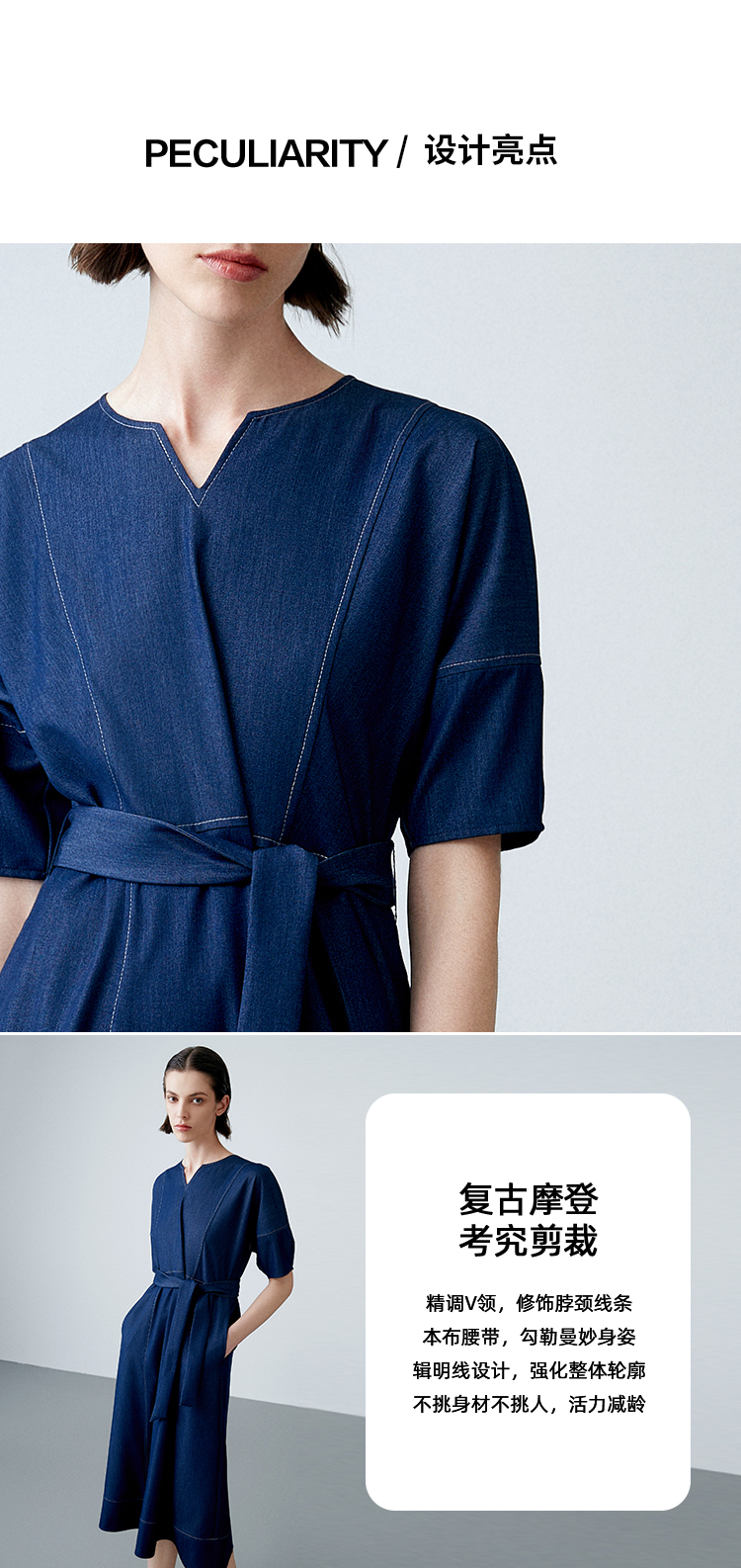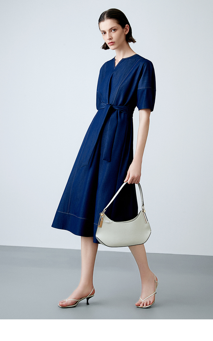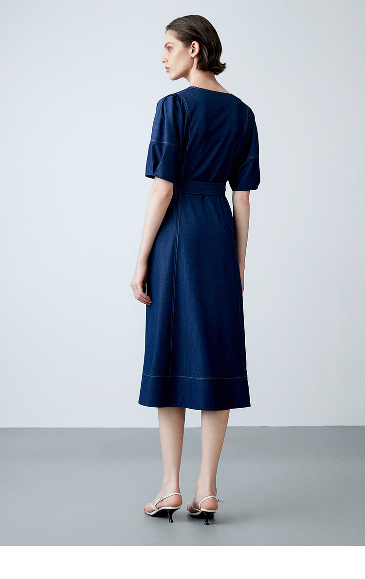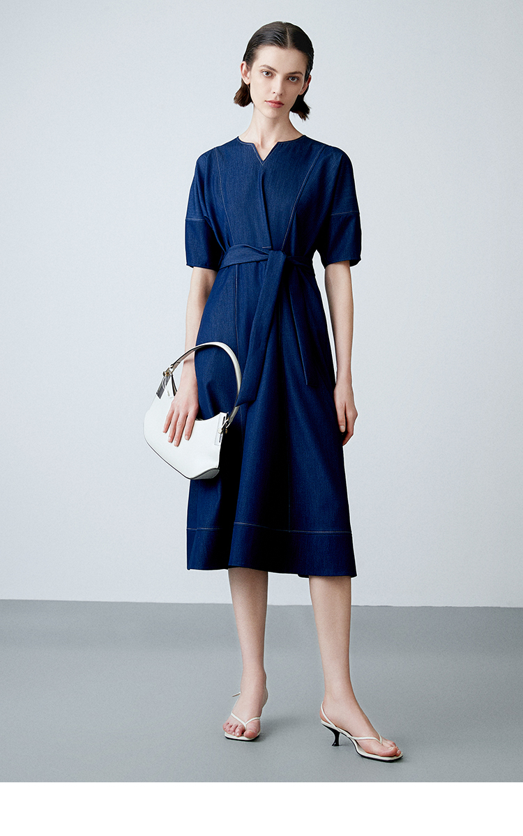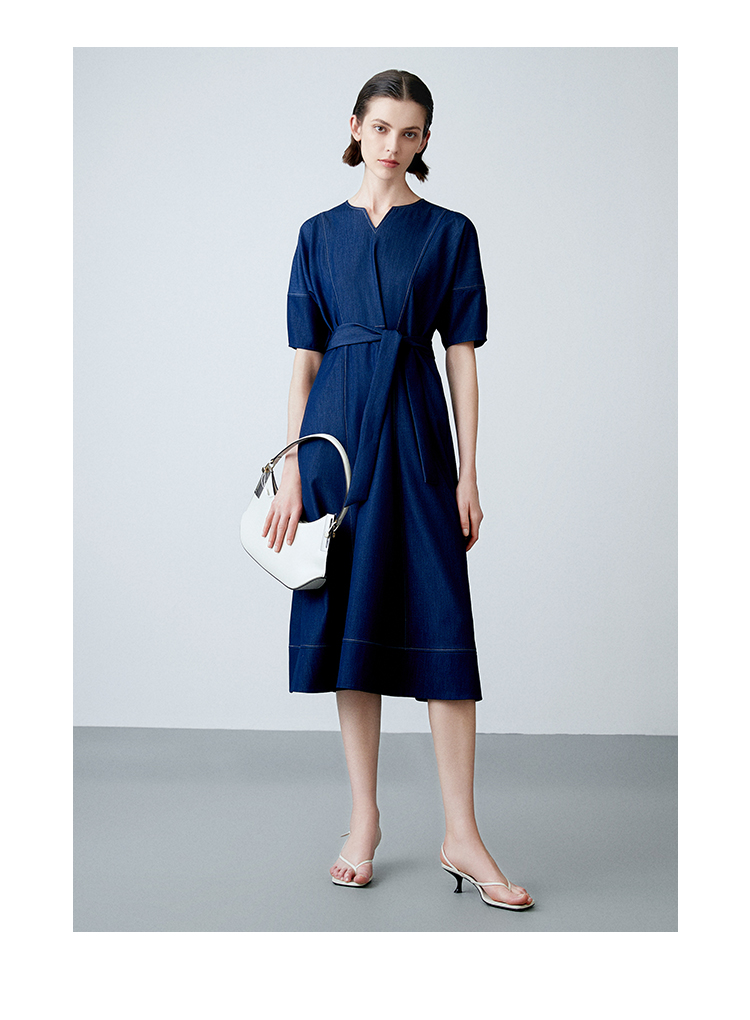 EITIE爱特爱夏季新款复古牛仔V领收腰显瘦通勤连衣裙7807510