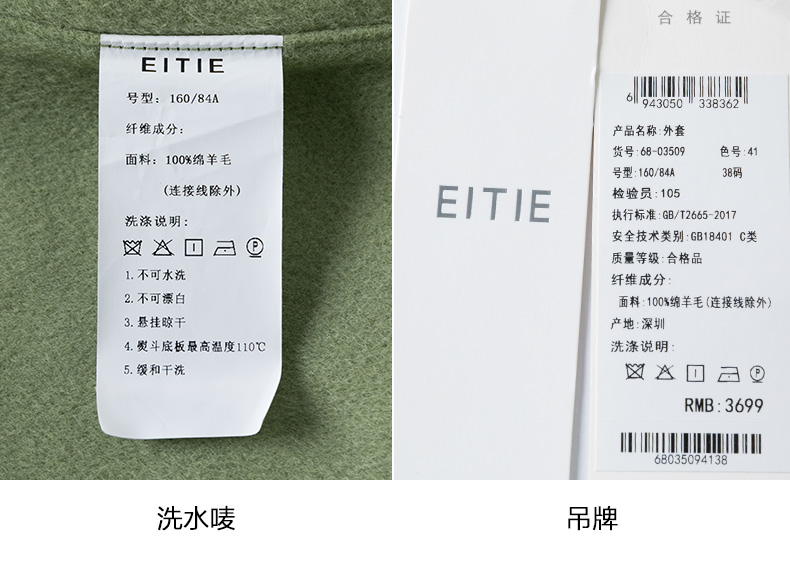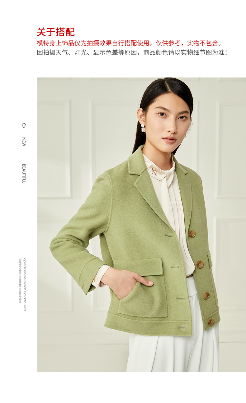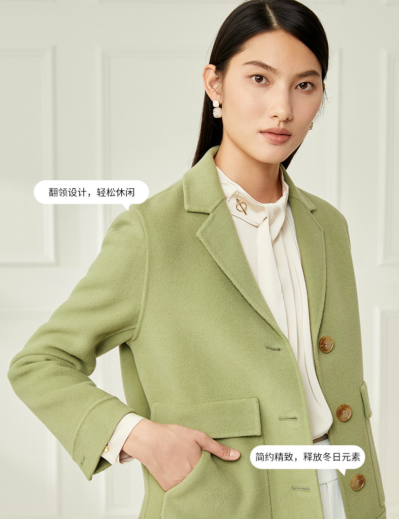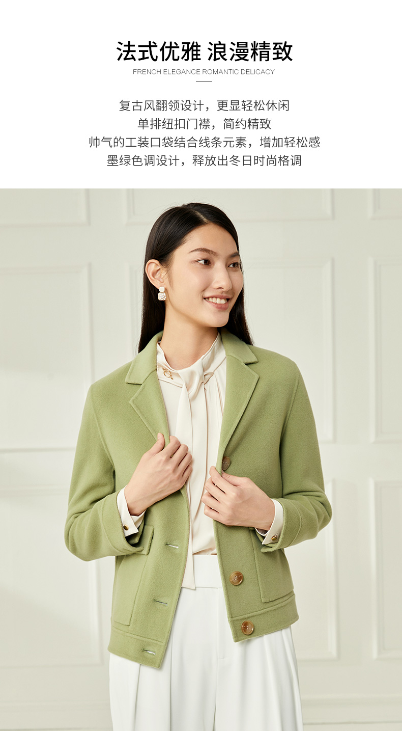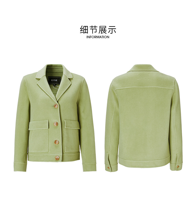 EITIE爱特爱新款翻领纯色羊毛短外套6803509