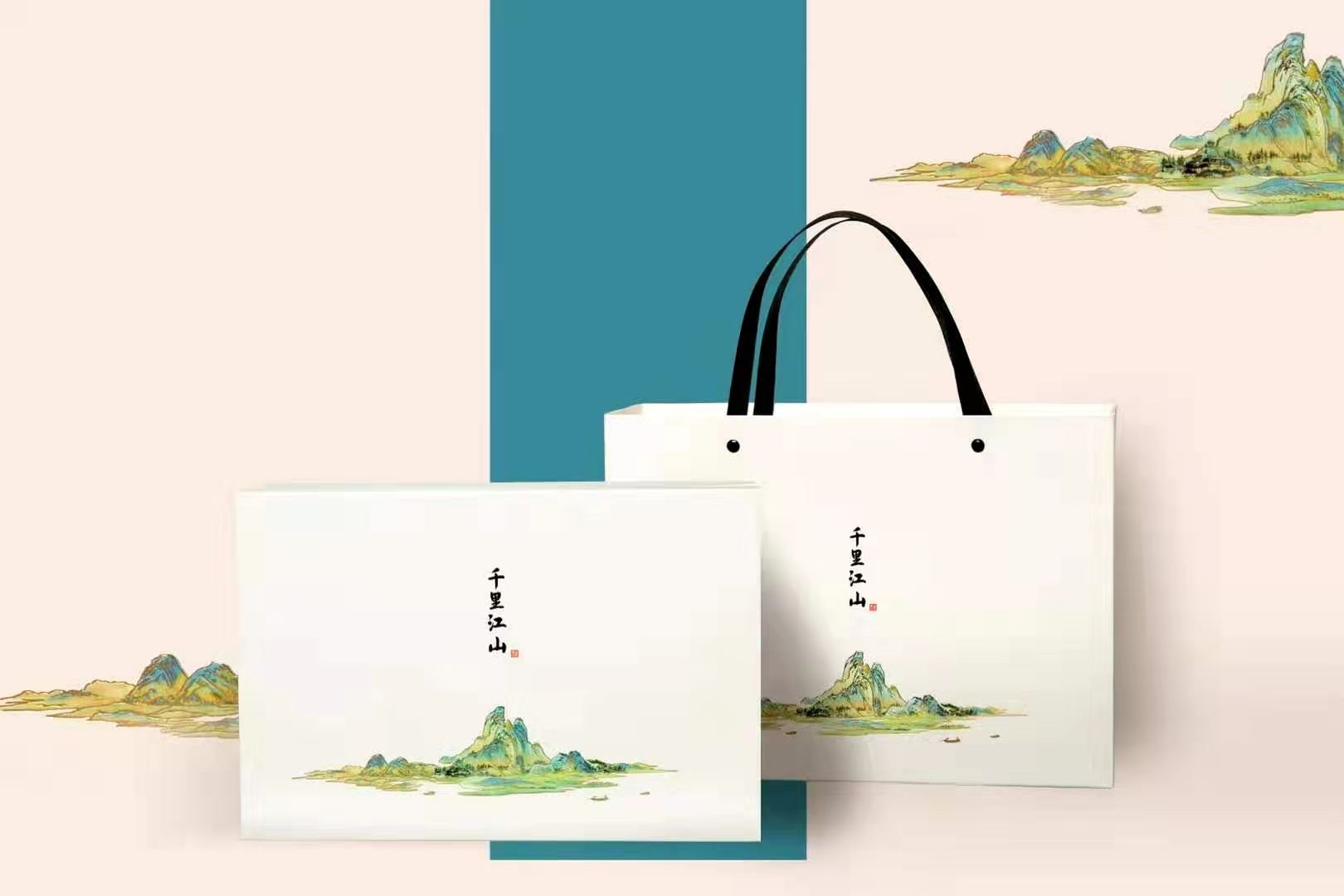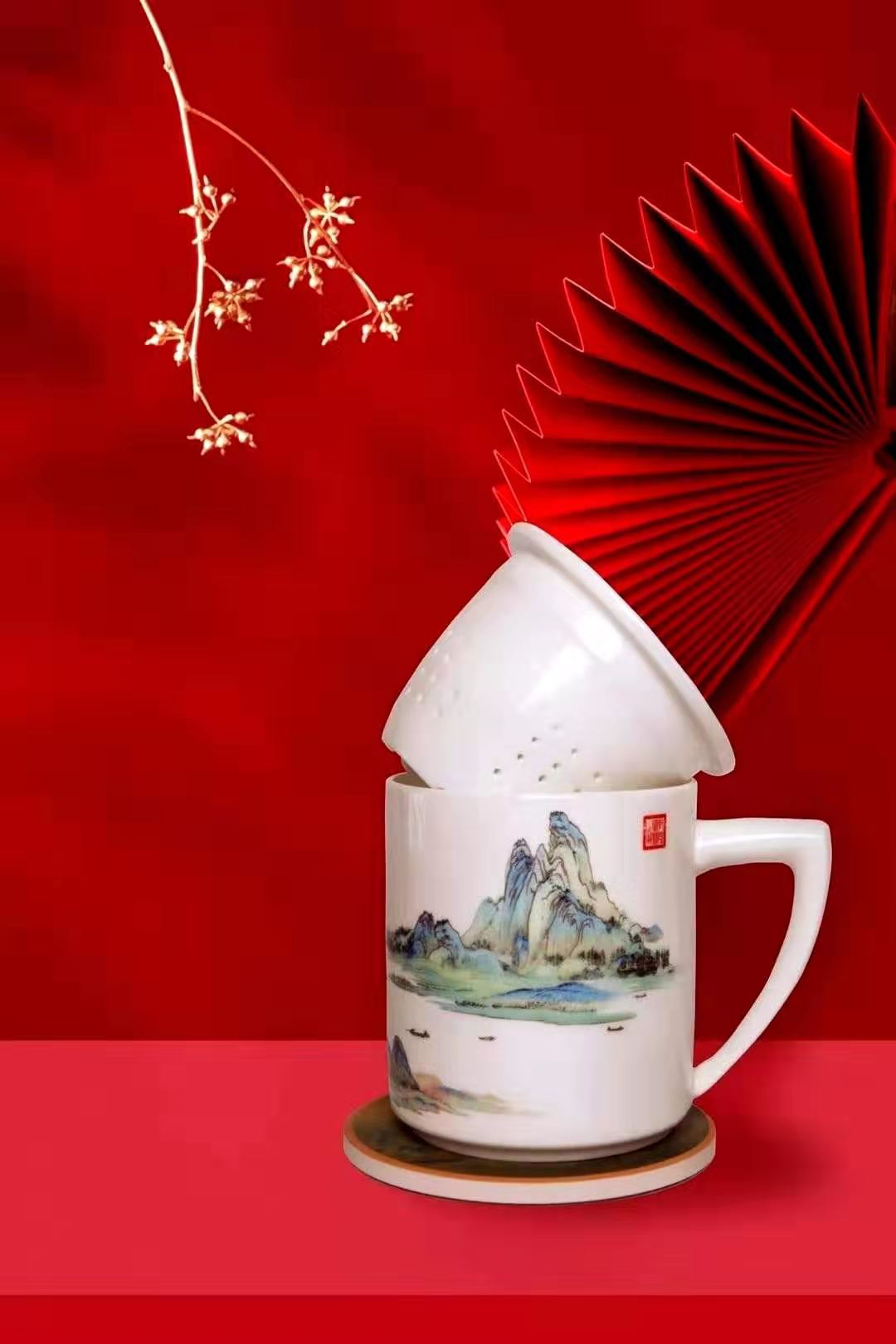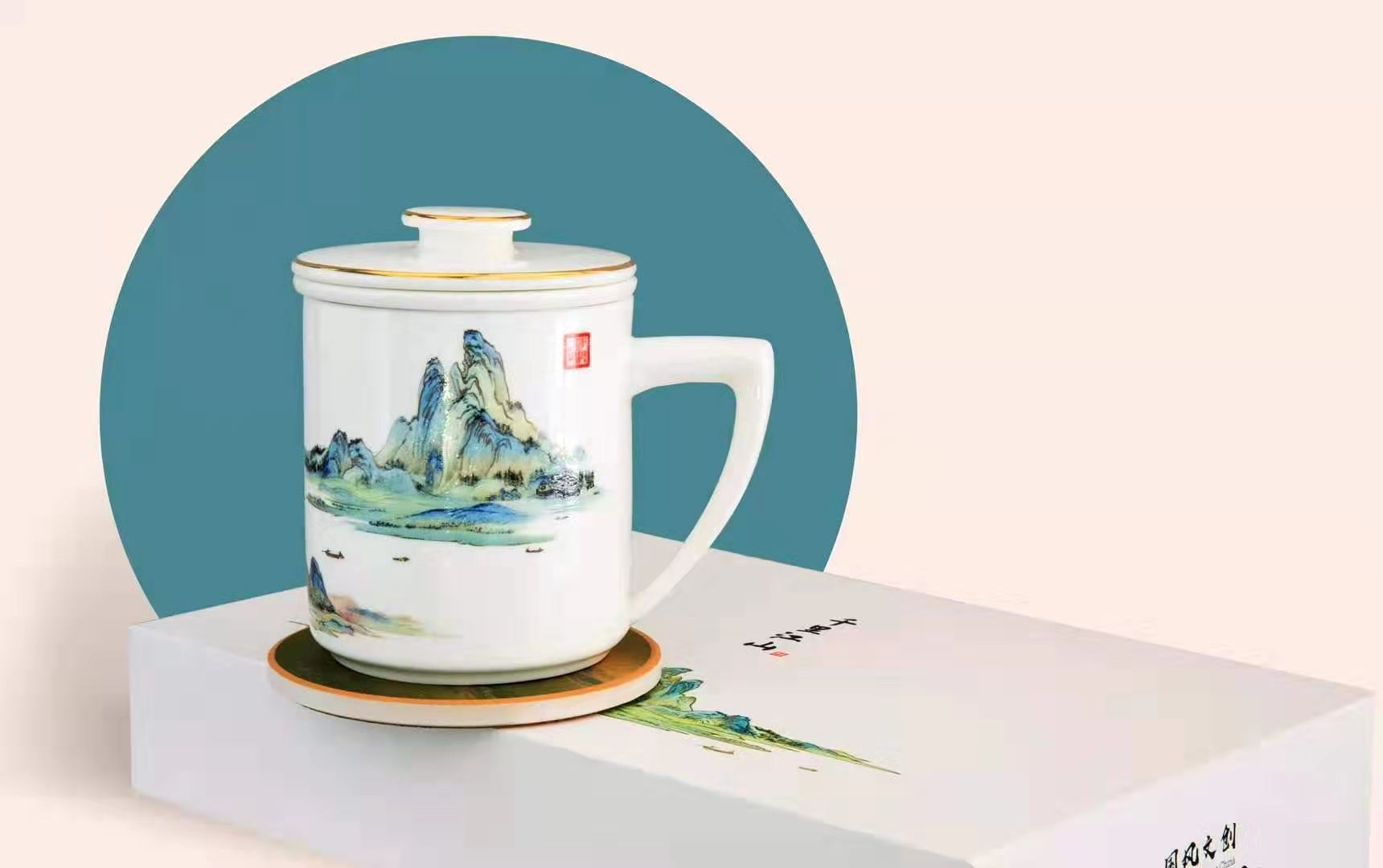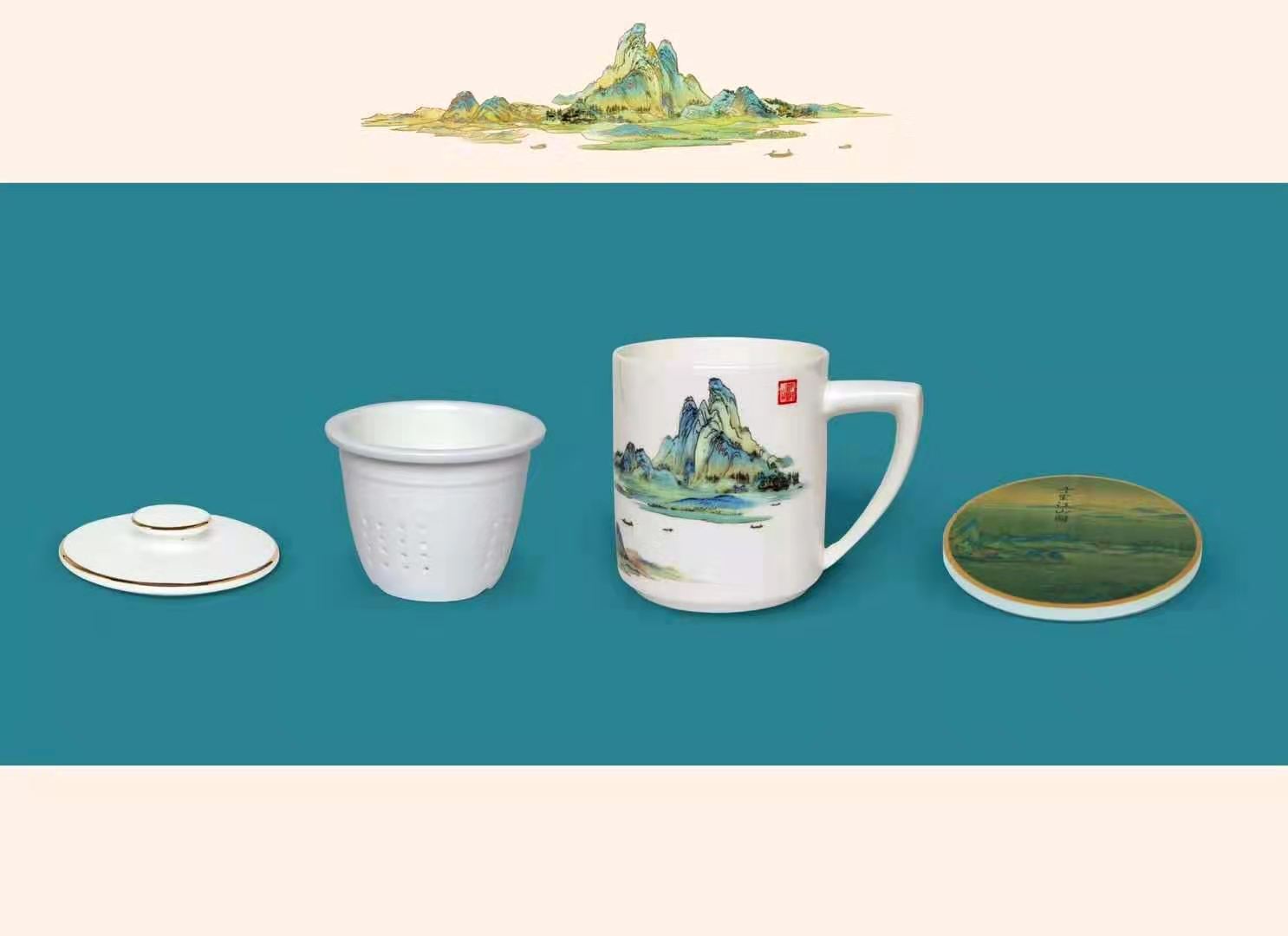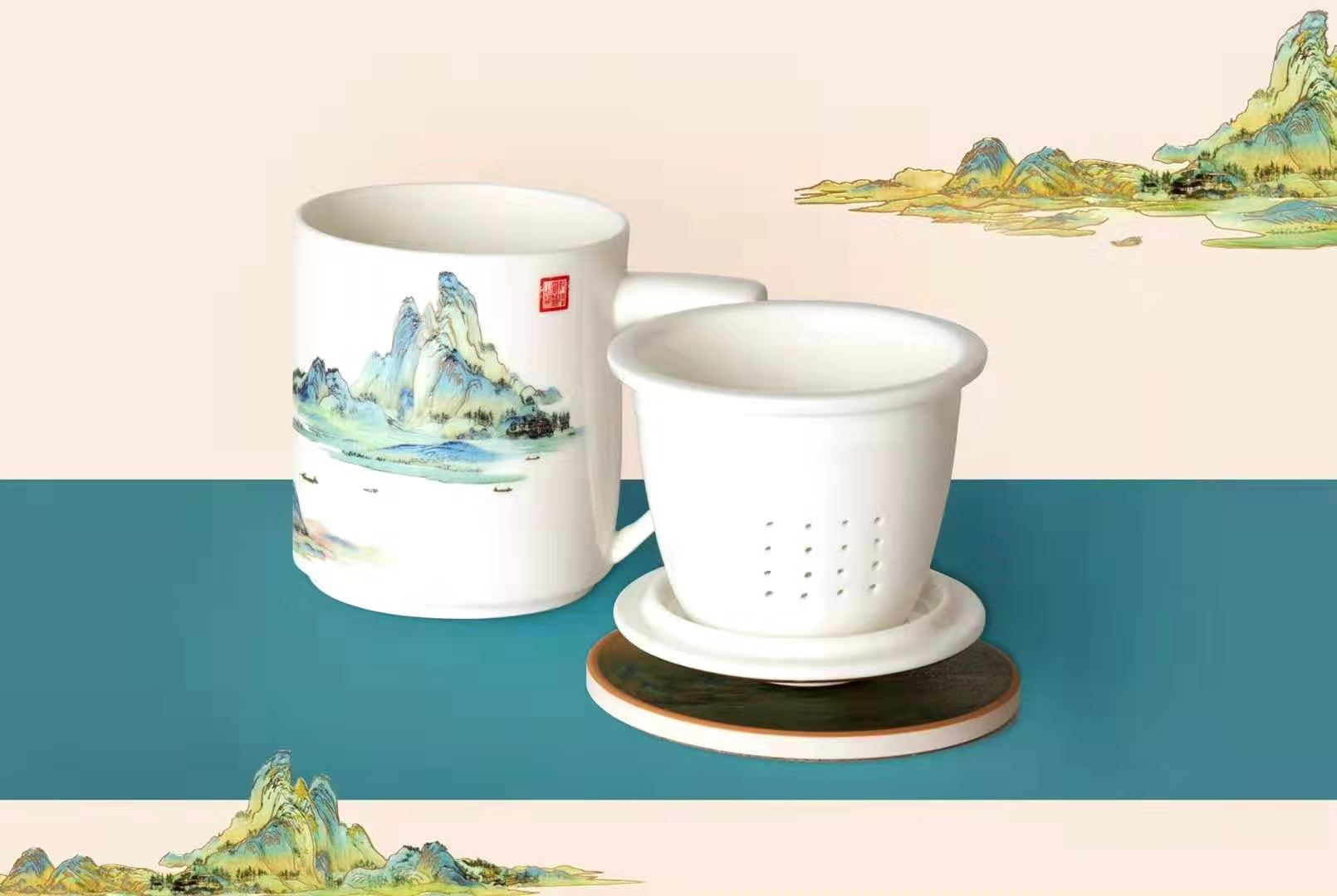 千里江山骨瓷茶杯套装