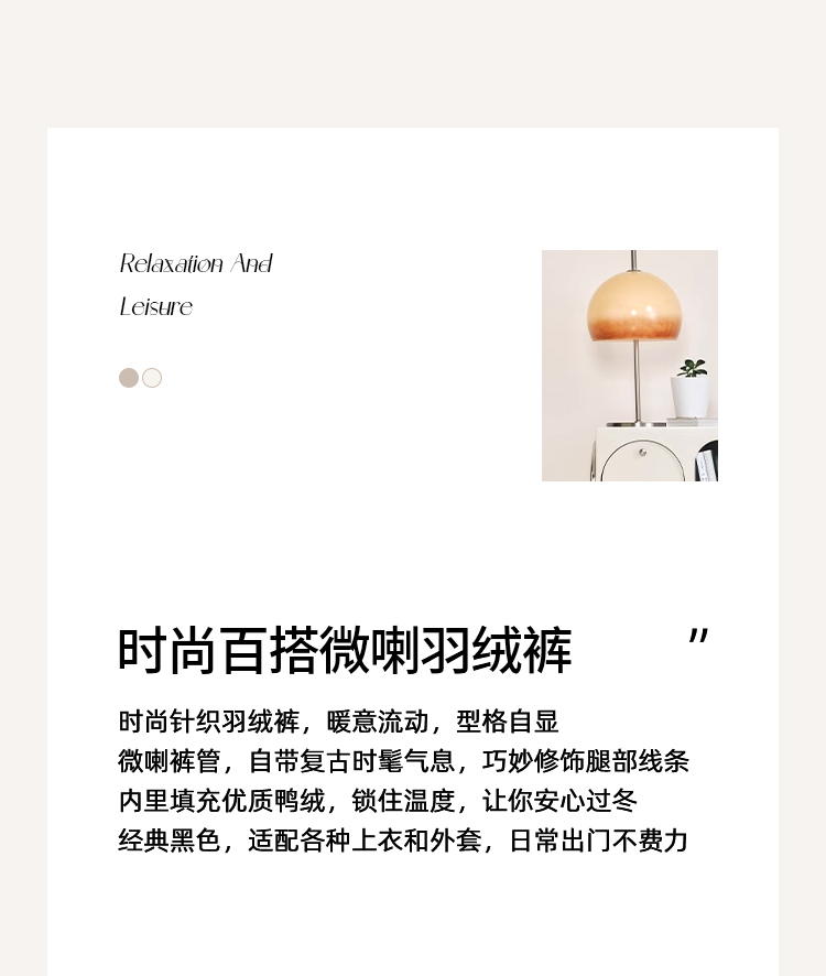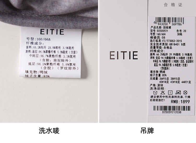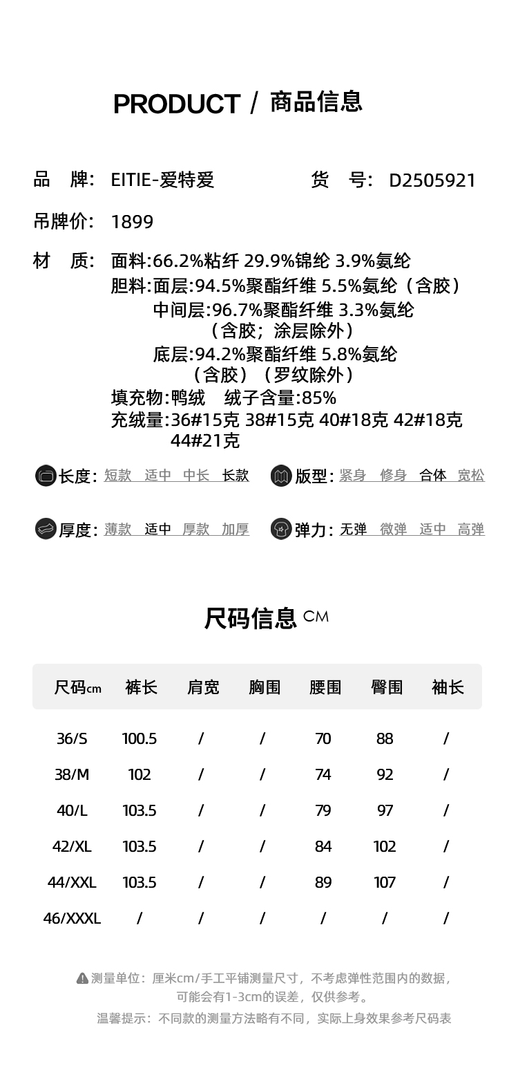 EITIE爱特爱时尚微喇显瘦修身中腰御寒保暖羽绒裤D2505921