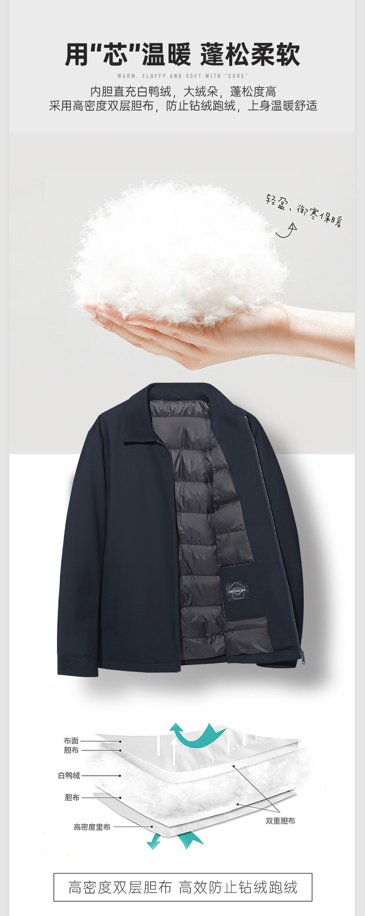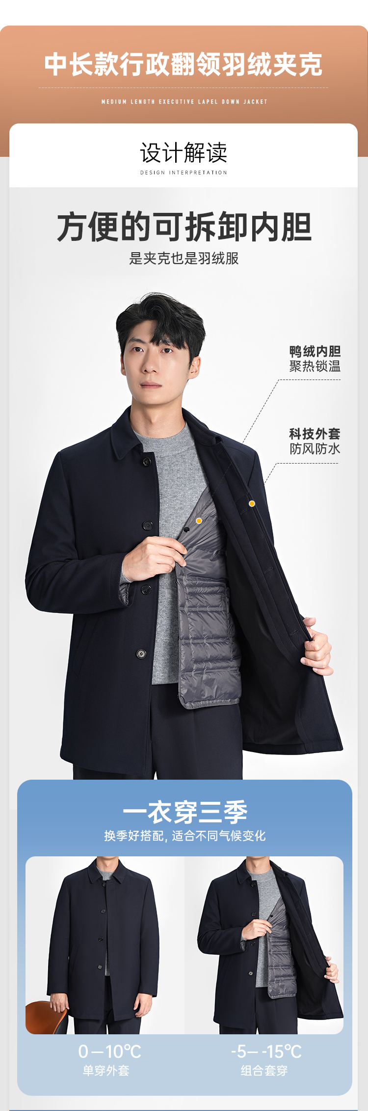 蜀黍家三防翻领夹克通勤中长款羽绒夹克外套