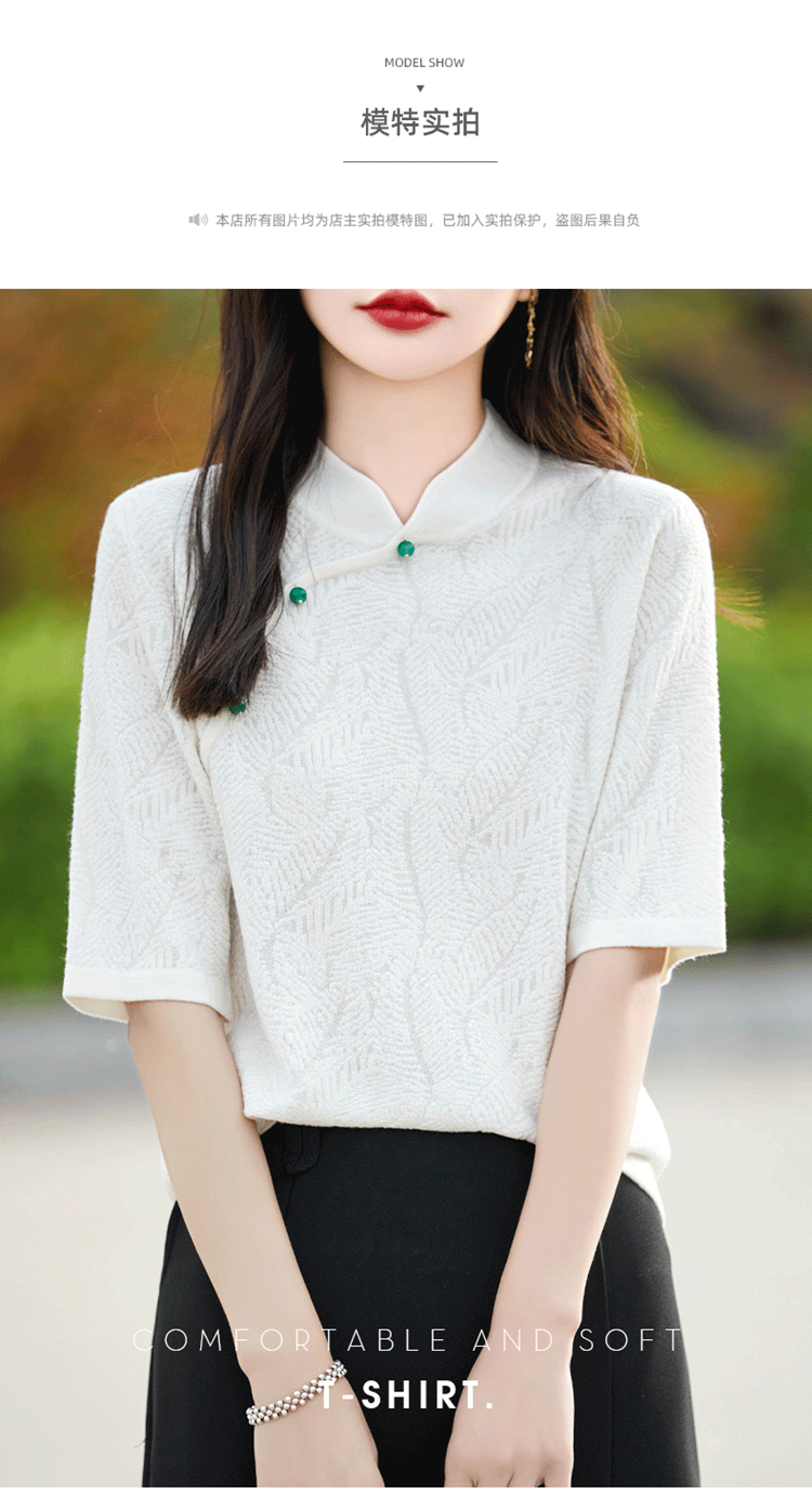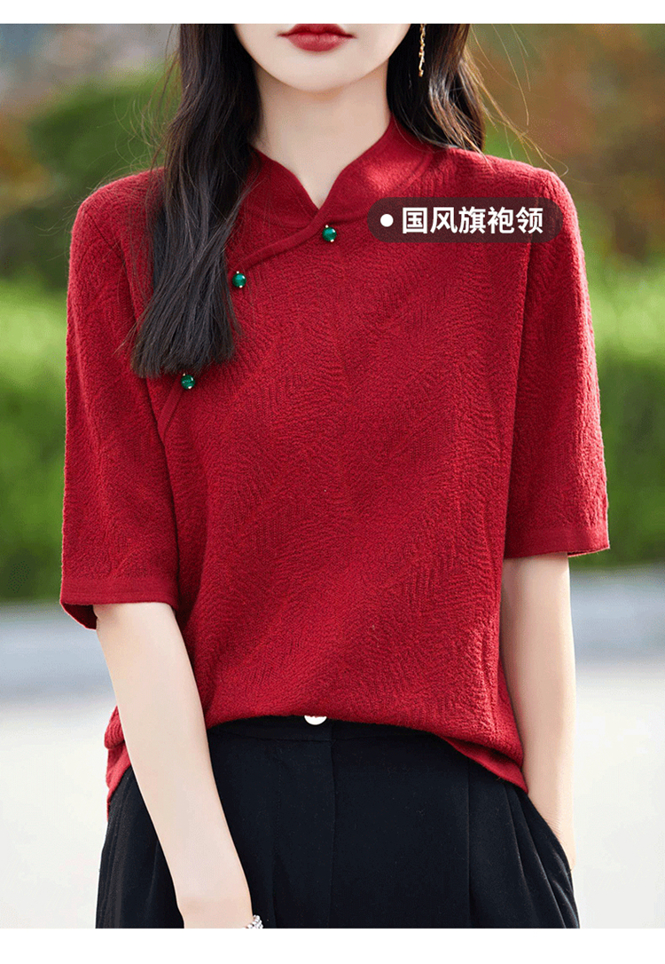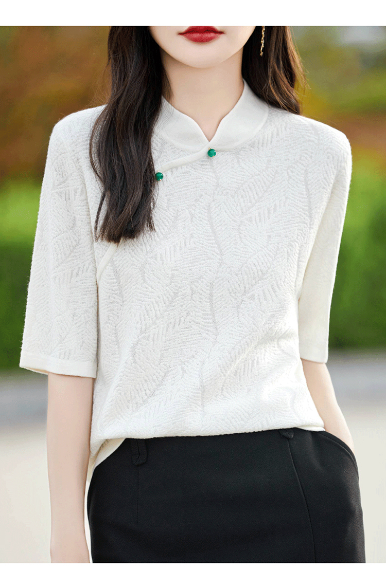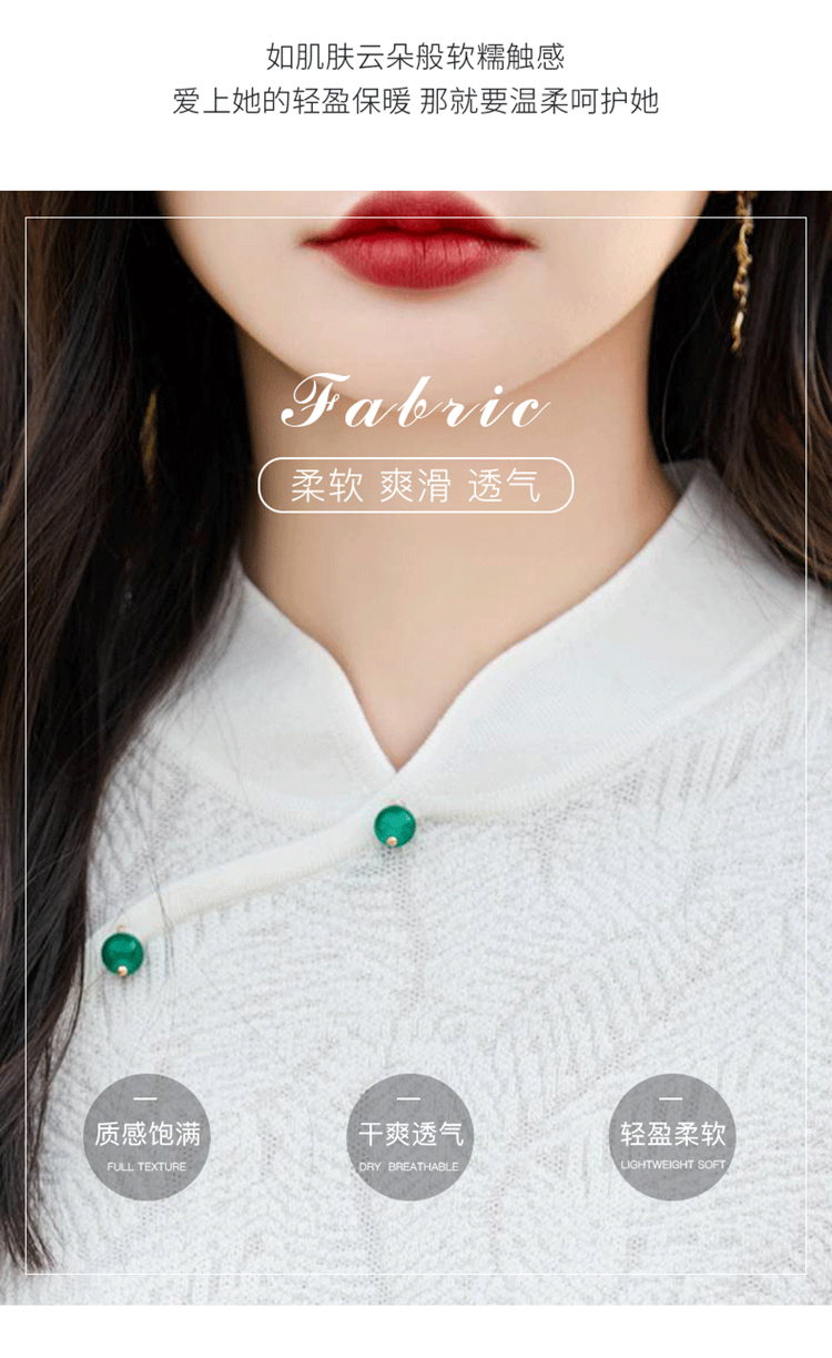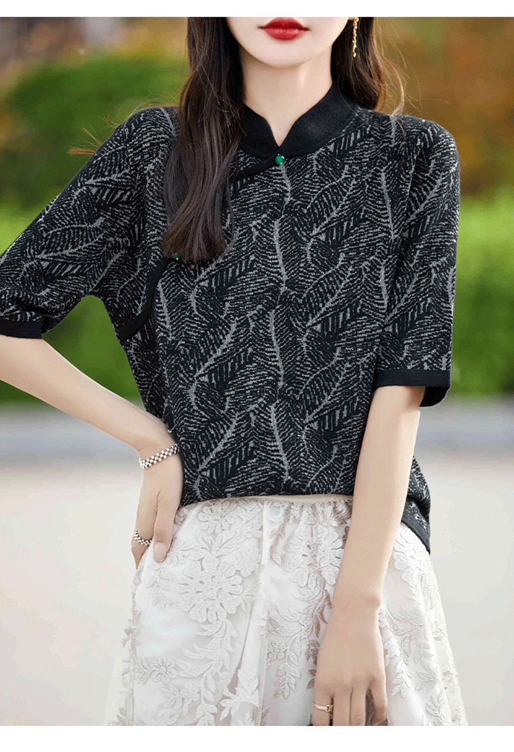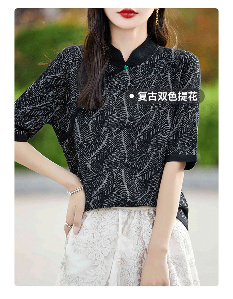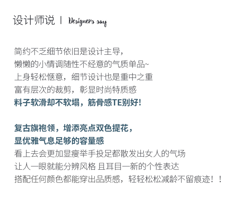 纤束马提花复古旗袍领五分袖 NS-910