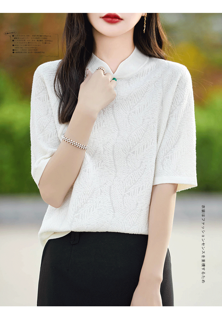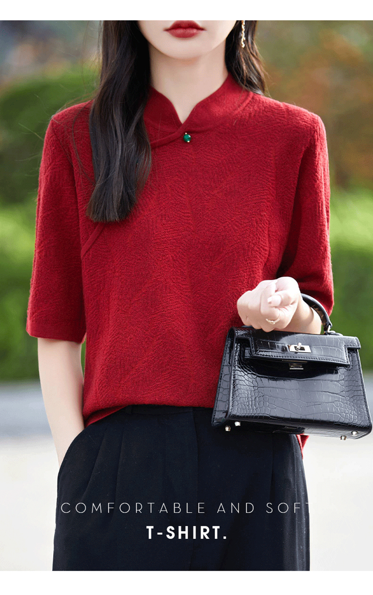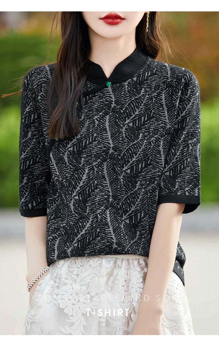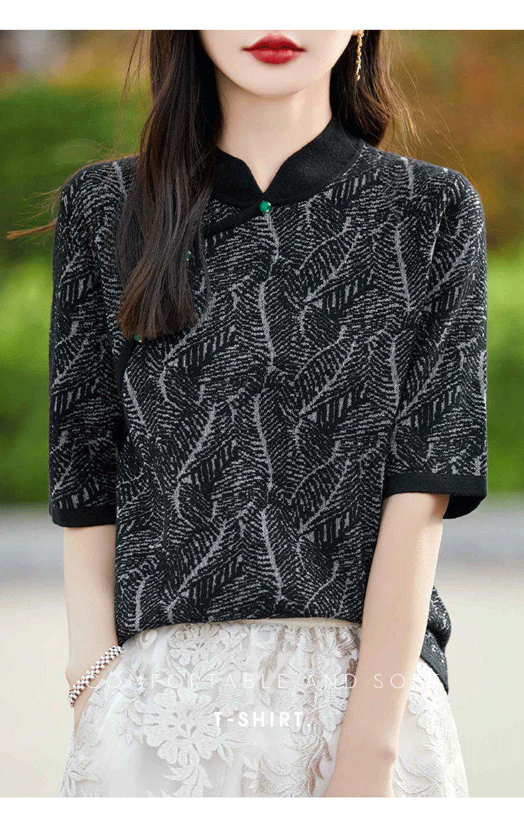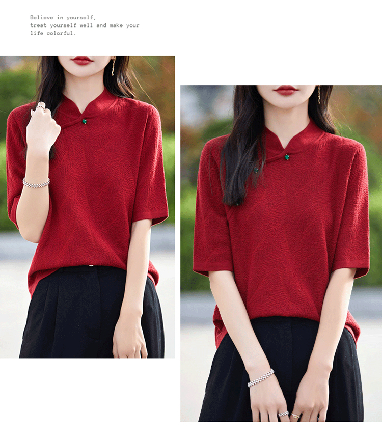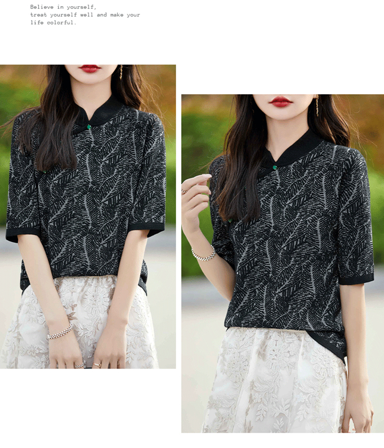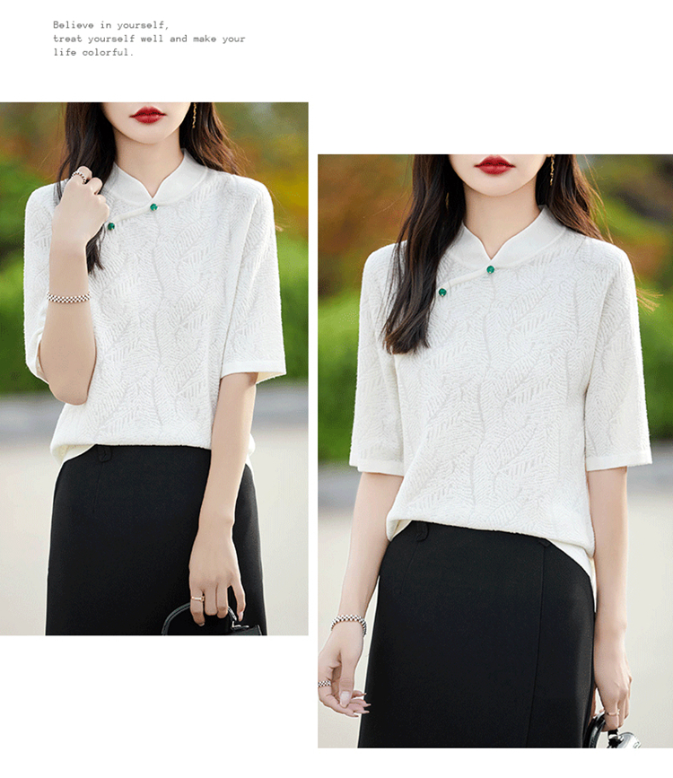 纤束马提花复古旗袍领五分袖 NS-910