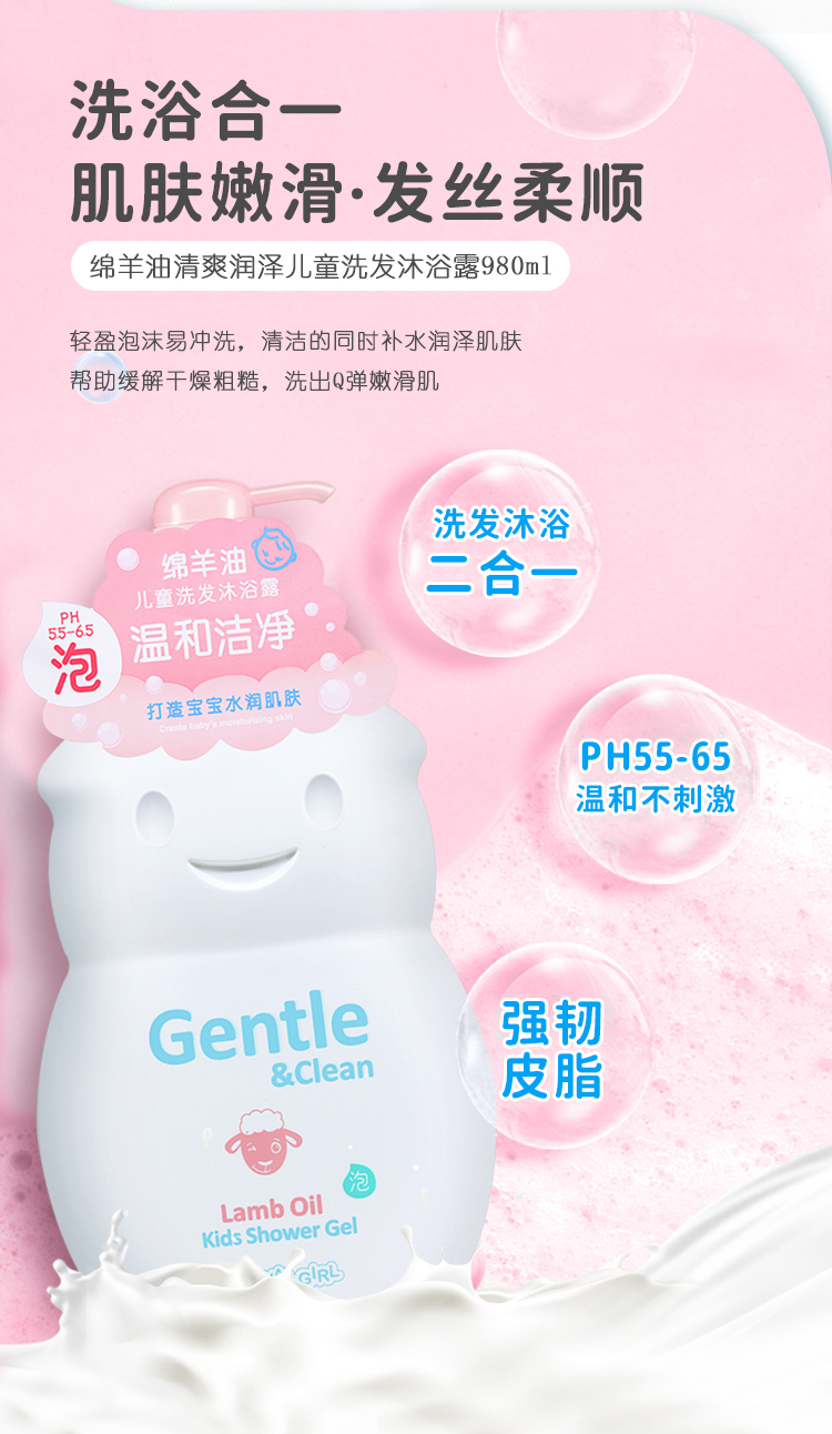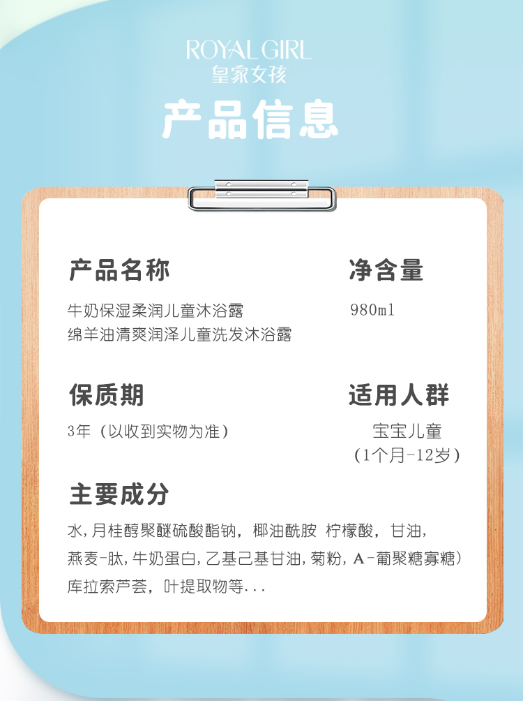 【门店直发 支持同城配送】皇家女孩儿童洗发/沐浴露980g/瓶