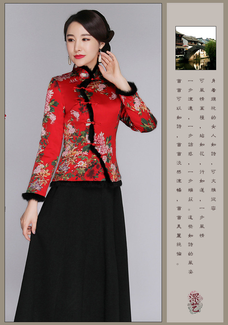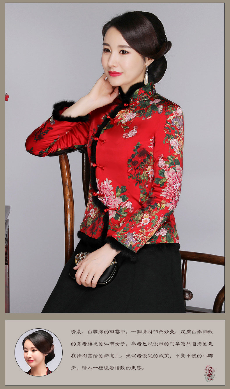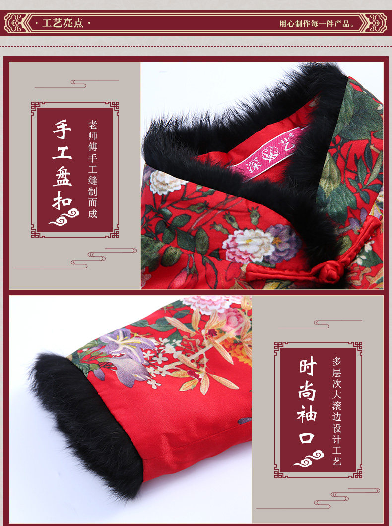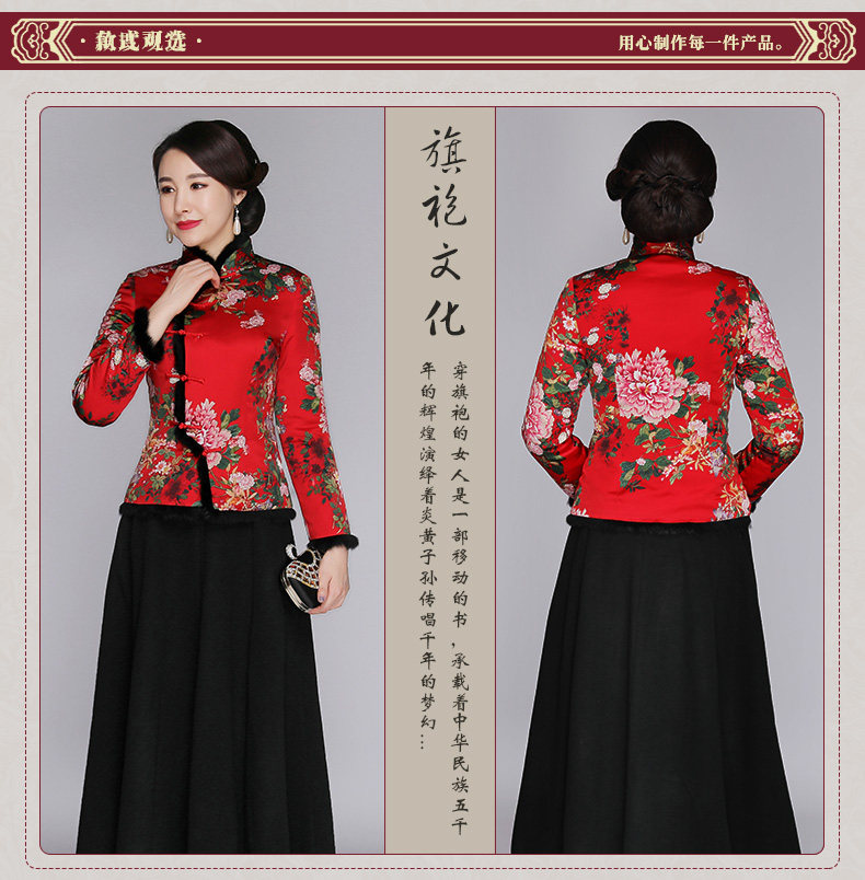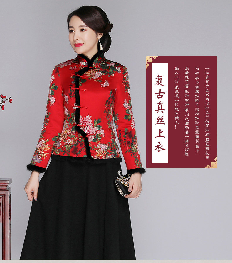 上海旗袍厂SY-18319M中式复古改良真丝唐装女上衣秋冬加厚夹棉桑蚕丝旗袍上衣妈妈