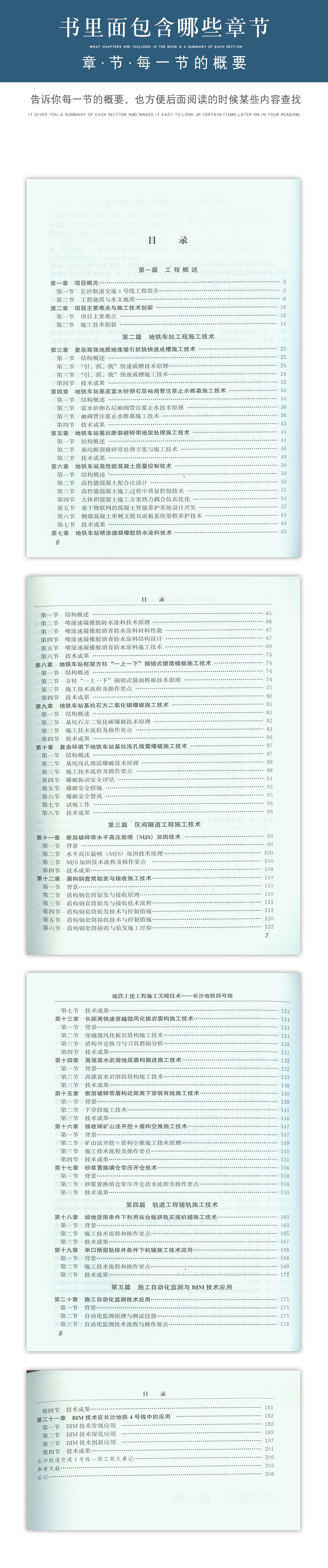 2014 年 12 月~2019 年 5 月,中国建筑股份有限公司承担完成了长沙地铁 4 号线一标工程的建设任务。期间,承担单位联合多家科研院所,针对该标段施工 过程中遇到的重难点问题开展了针对性的科学研究与实践创新, 形成了系列创新 性成果。本书即是在上述研究与实践的基础上,遴选出若干典型城市轨道交通施 工技术总结汇编而成。全书共分五篇,依次介绍了长沙地铁 4 号线的建设概况, 地铁车站、区间、轨道工程典型施工技术,以及城市轨道交通工程施工自动化监 测与 BIM 技术等先进管控技术的应用等多个方面。系统阐述了相关工艺工法、 方案措施的技术原理、设计思路、工艺流程、控制难点、操作要点以及应用效果。