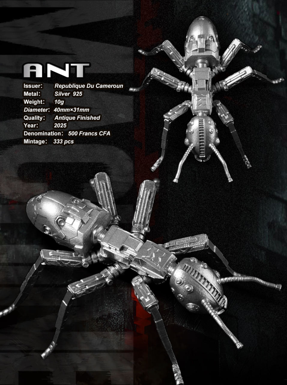 机械蚂蚁立体银币:指尖上的微型世界奇迹- 2025年喀麦隆机械蚂蚁立体银币