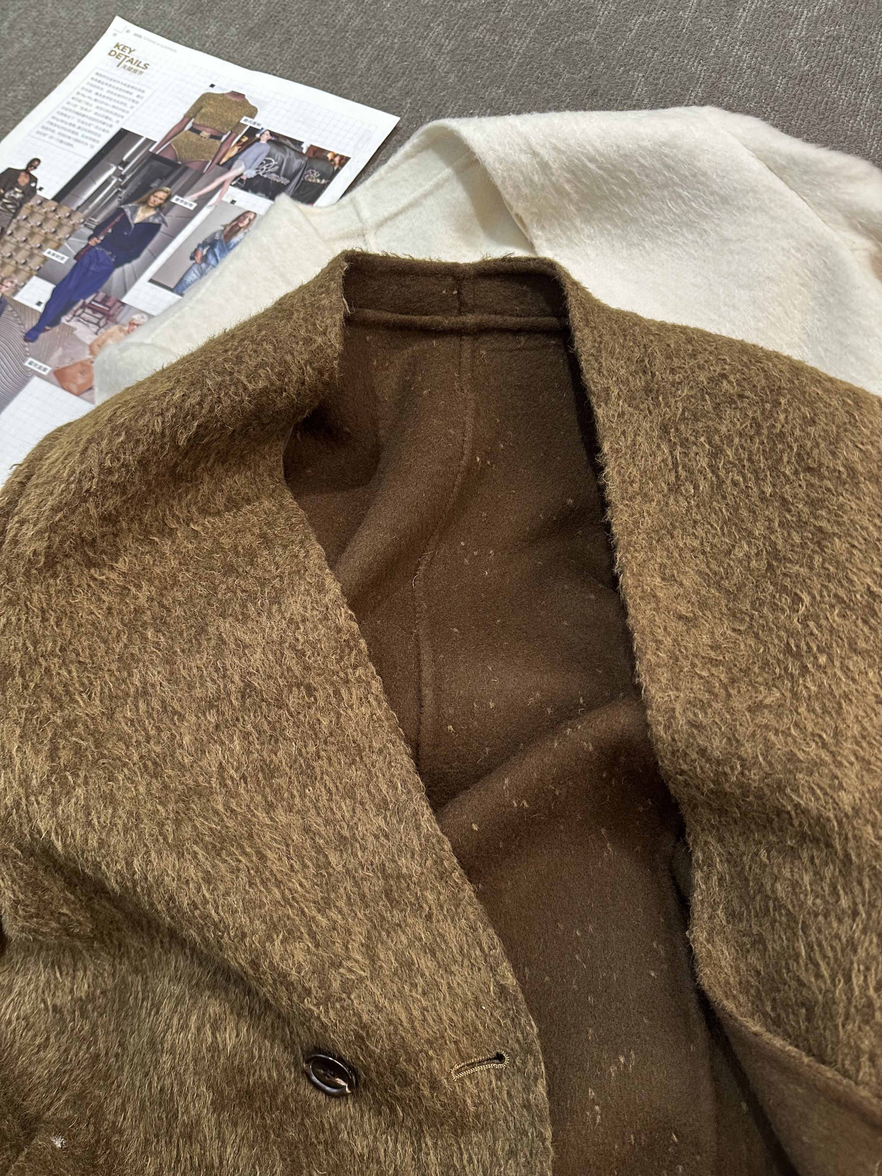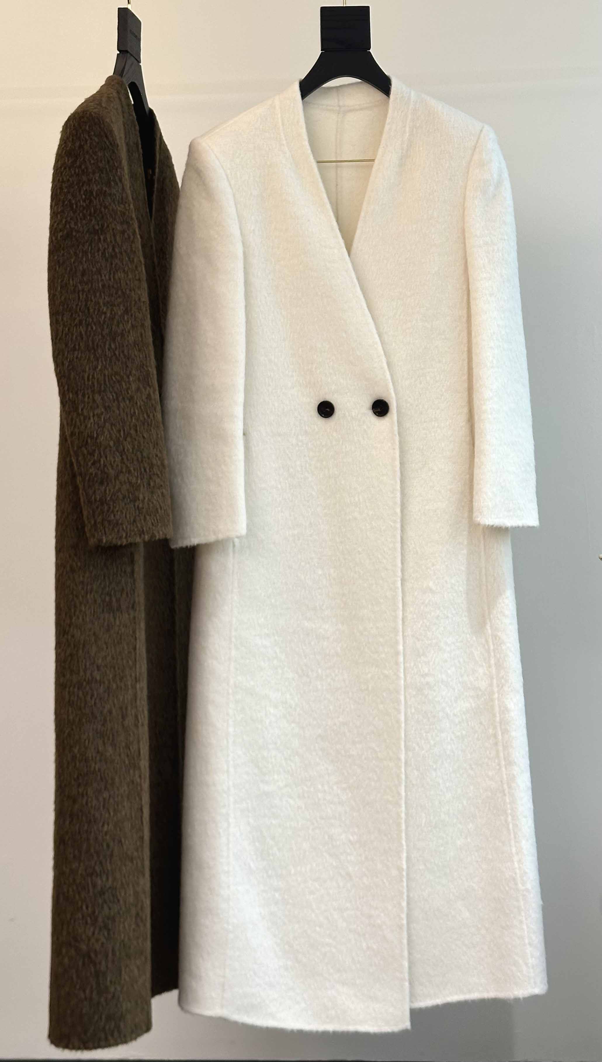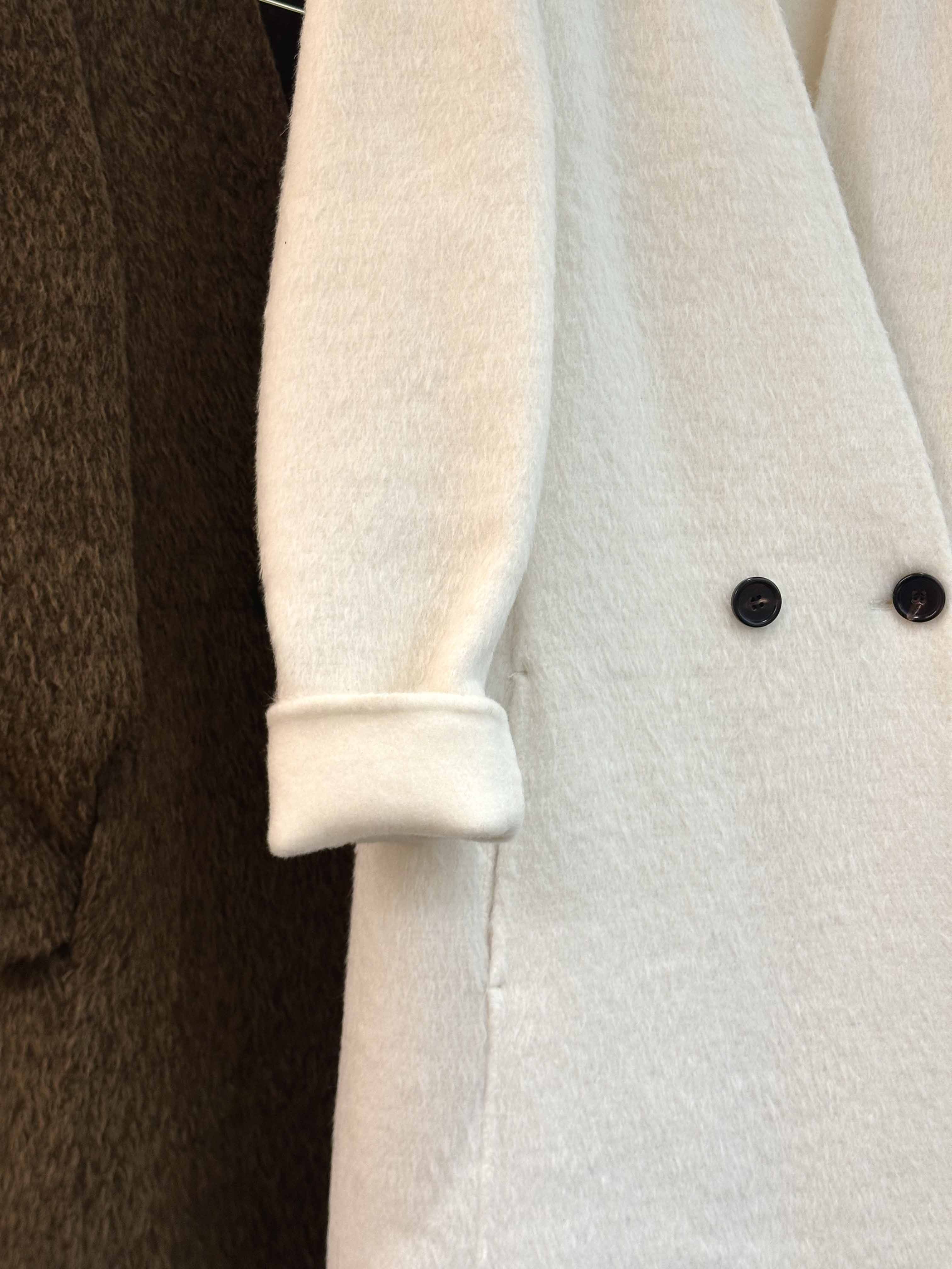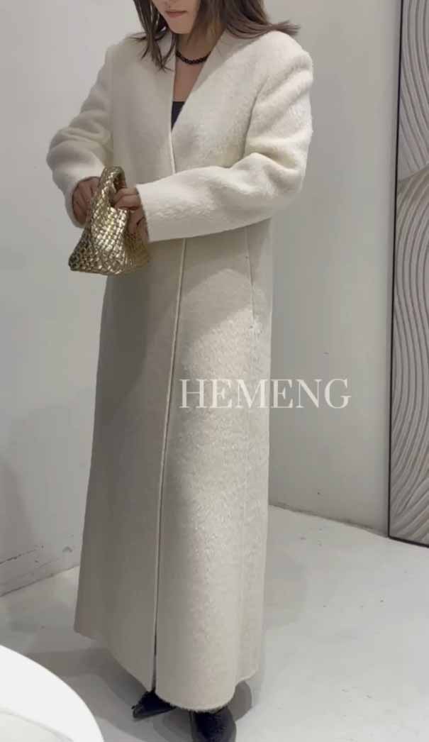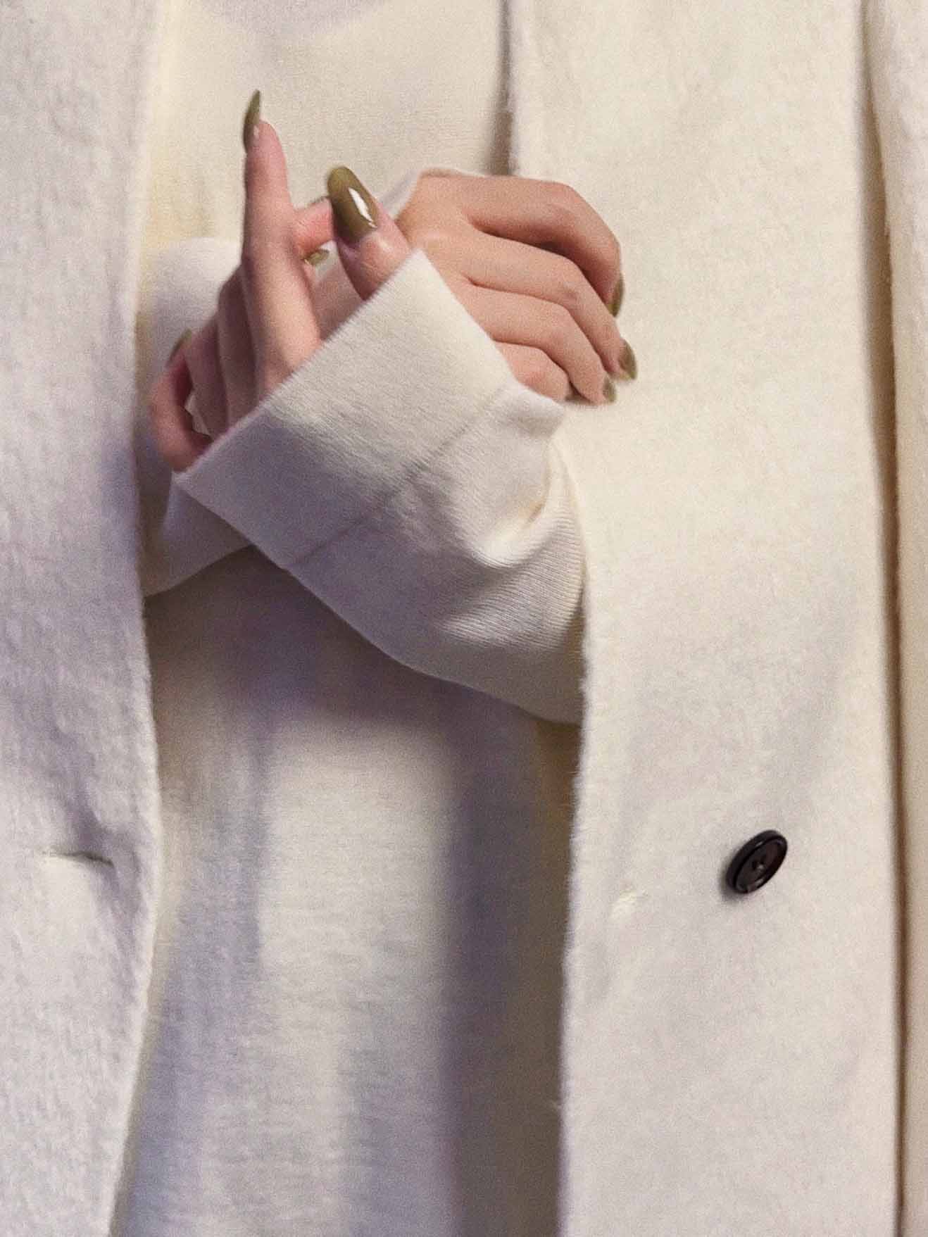 赫本风V领中长款苏丽绒大衣 · 白色/咖啡色