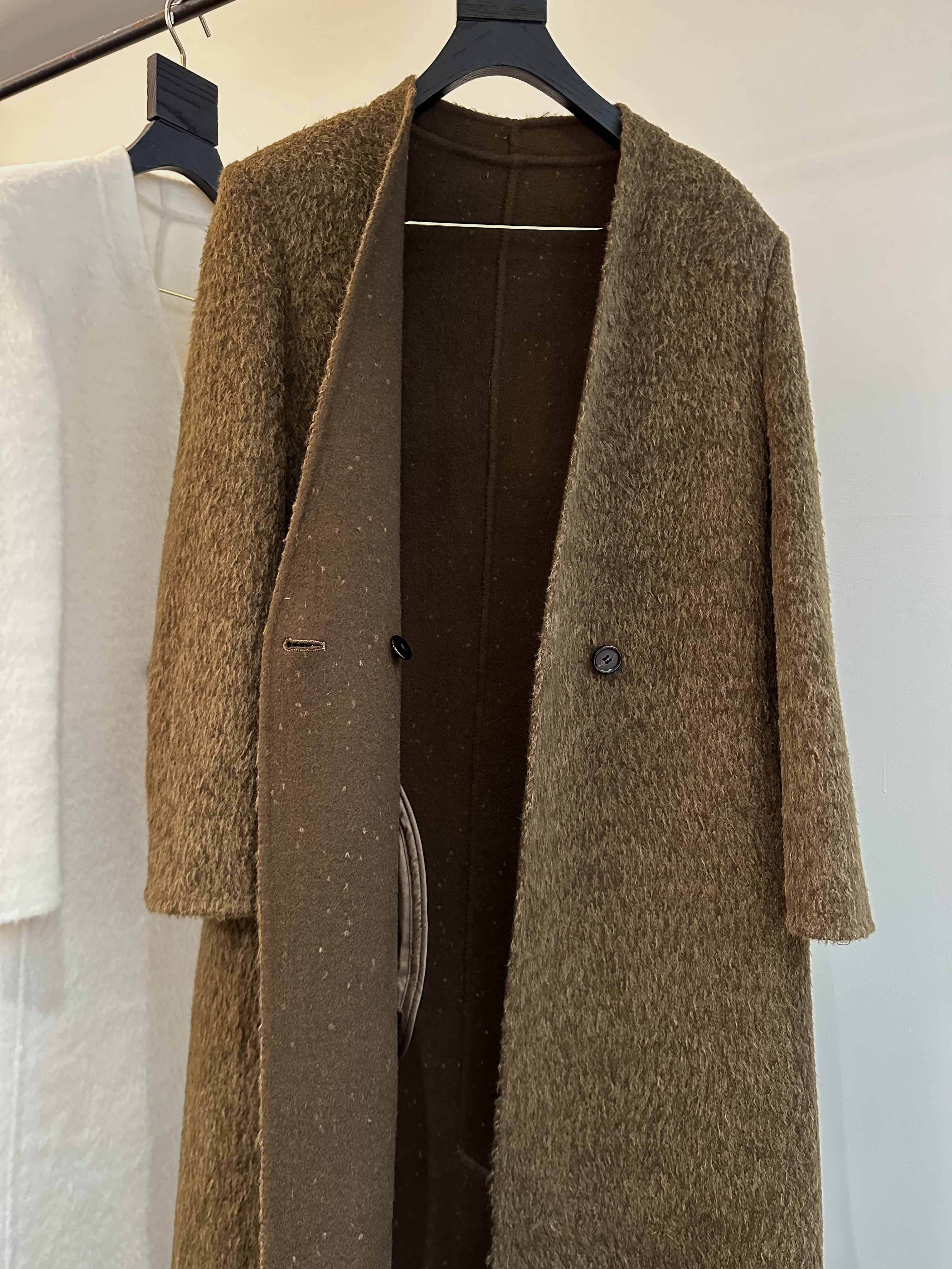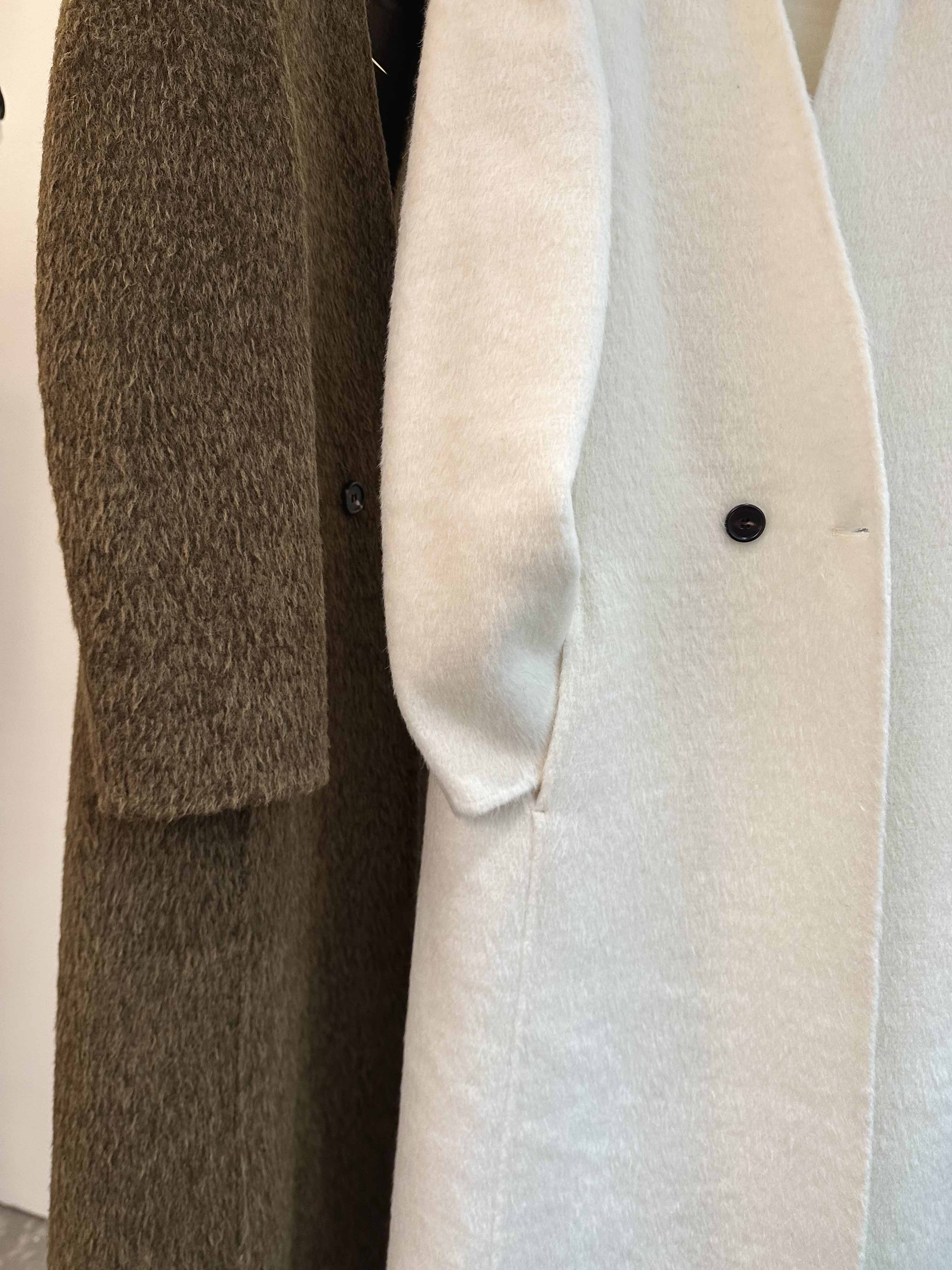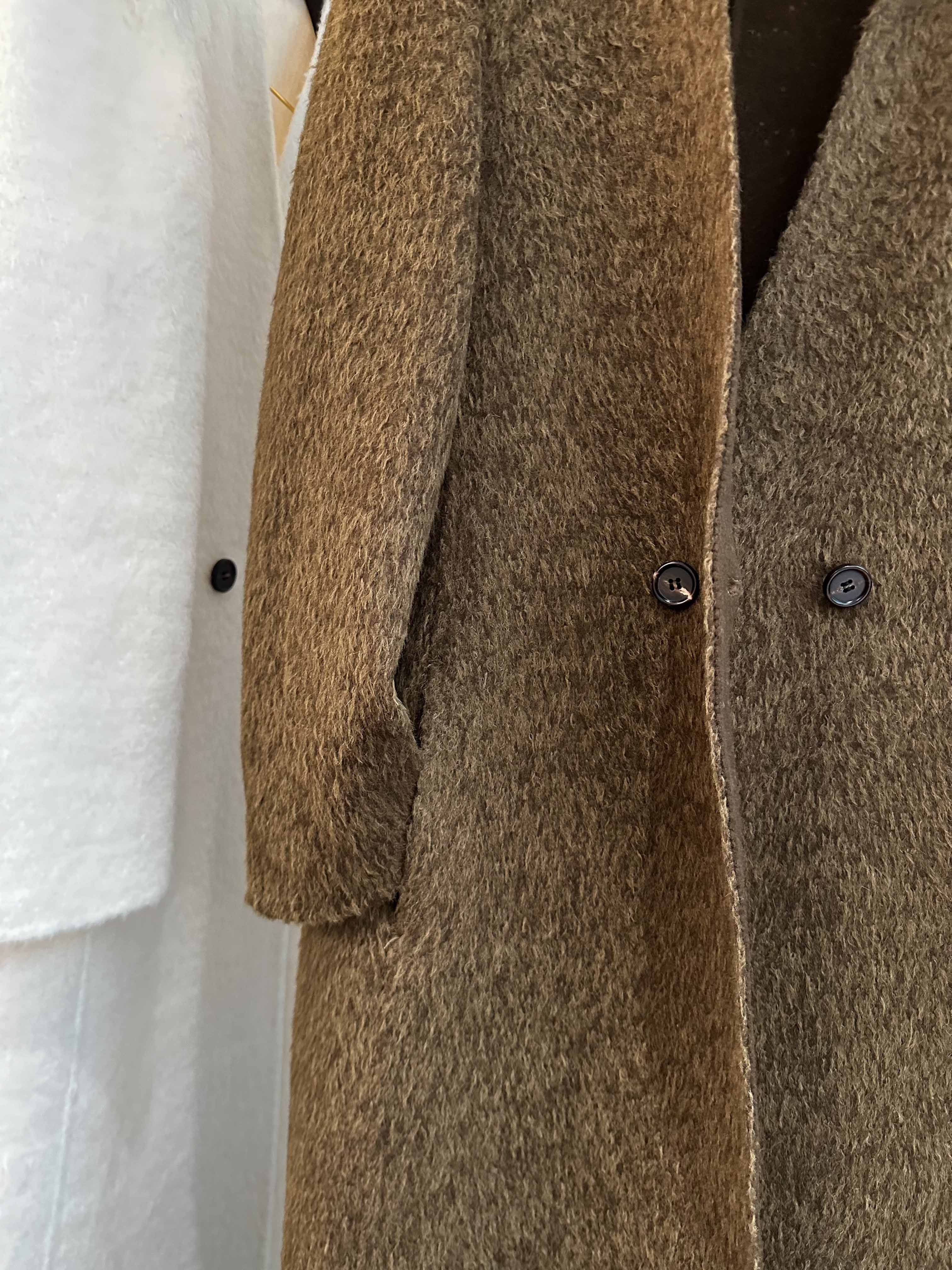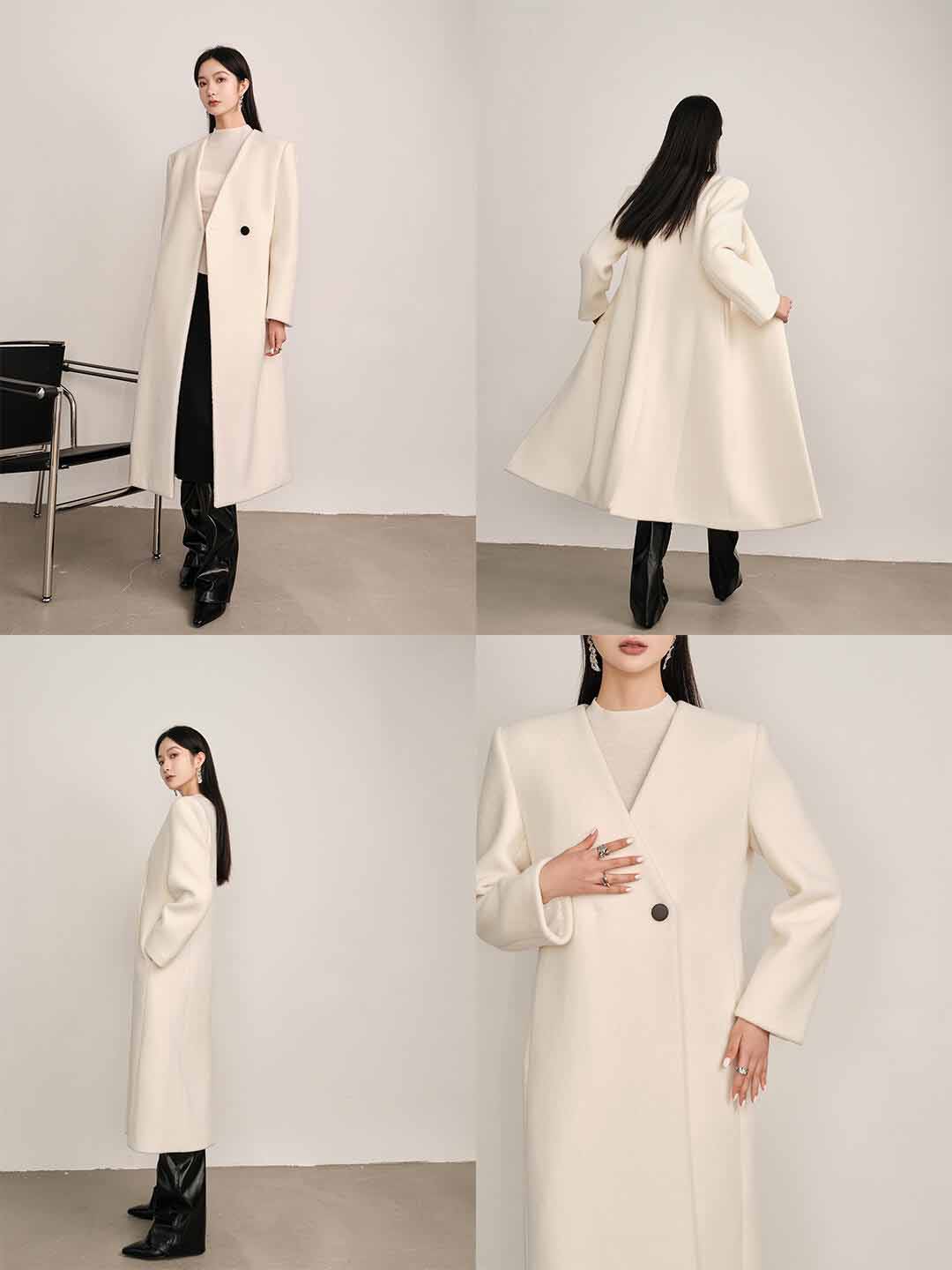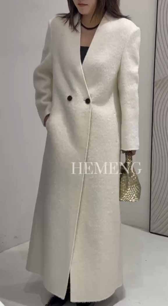 赫本风V领中长款苏丽绒大衣 · 白色/咖啡色