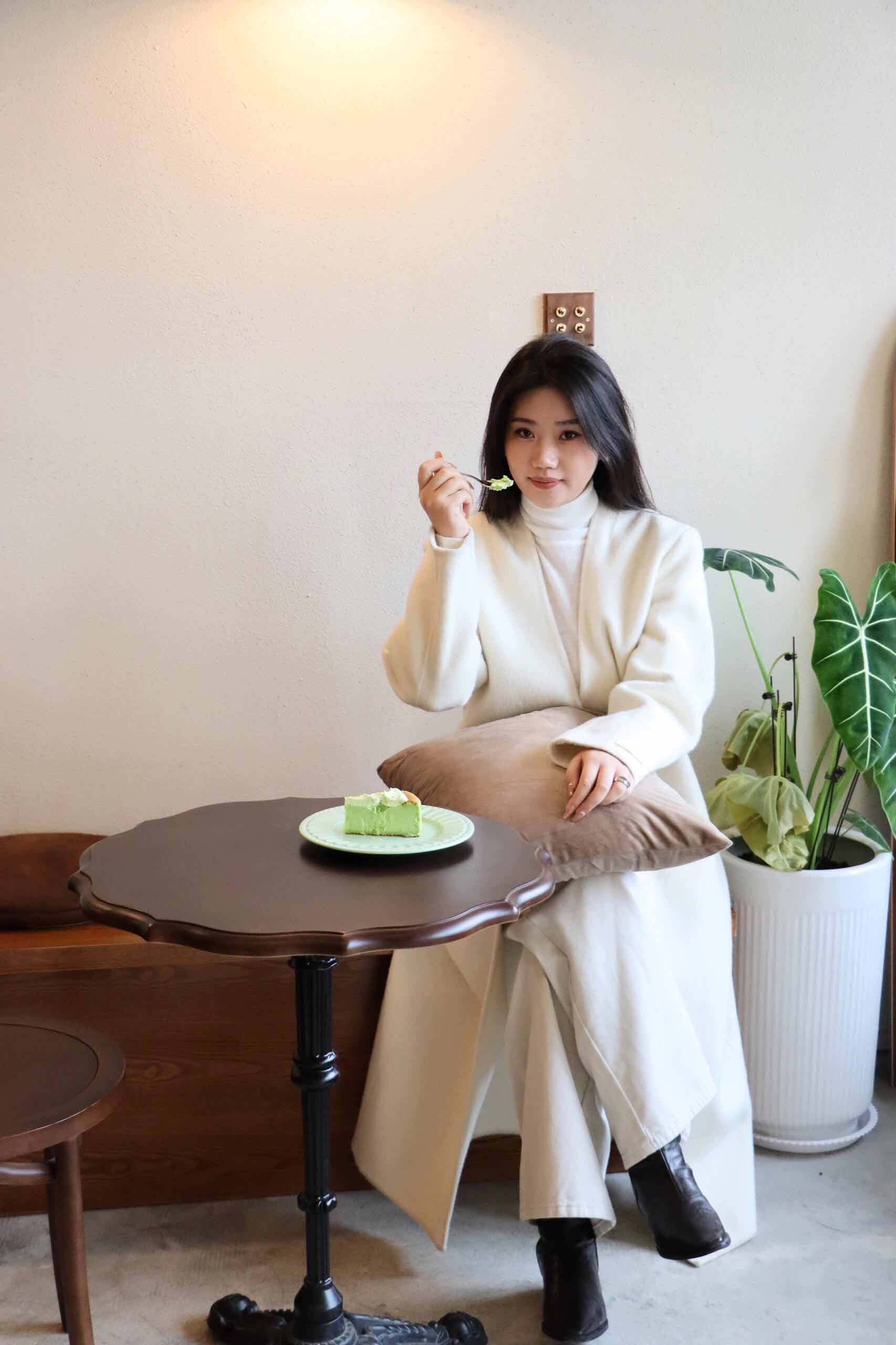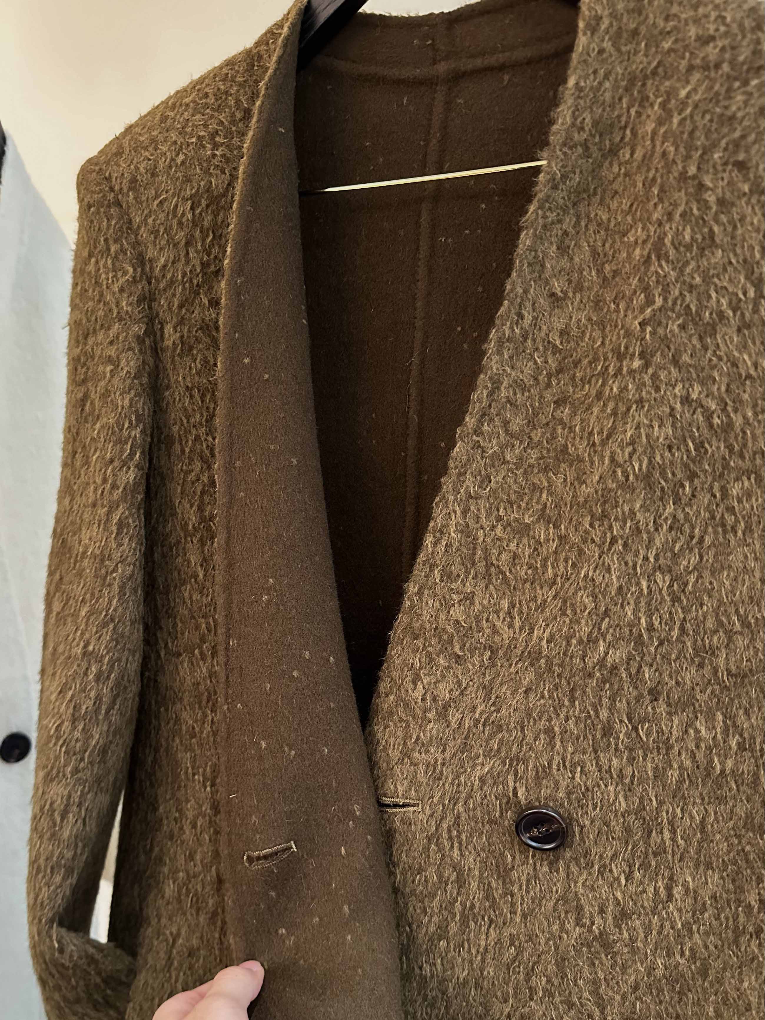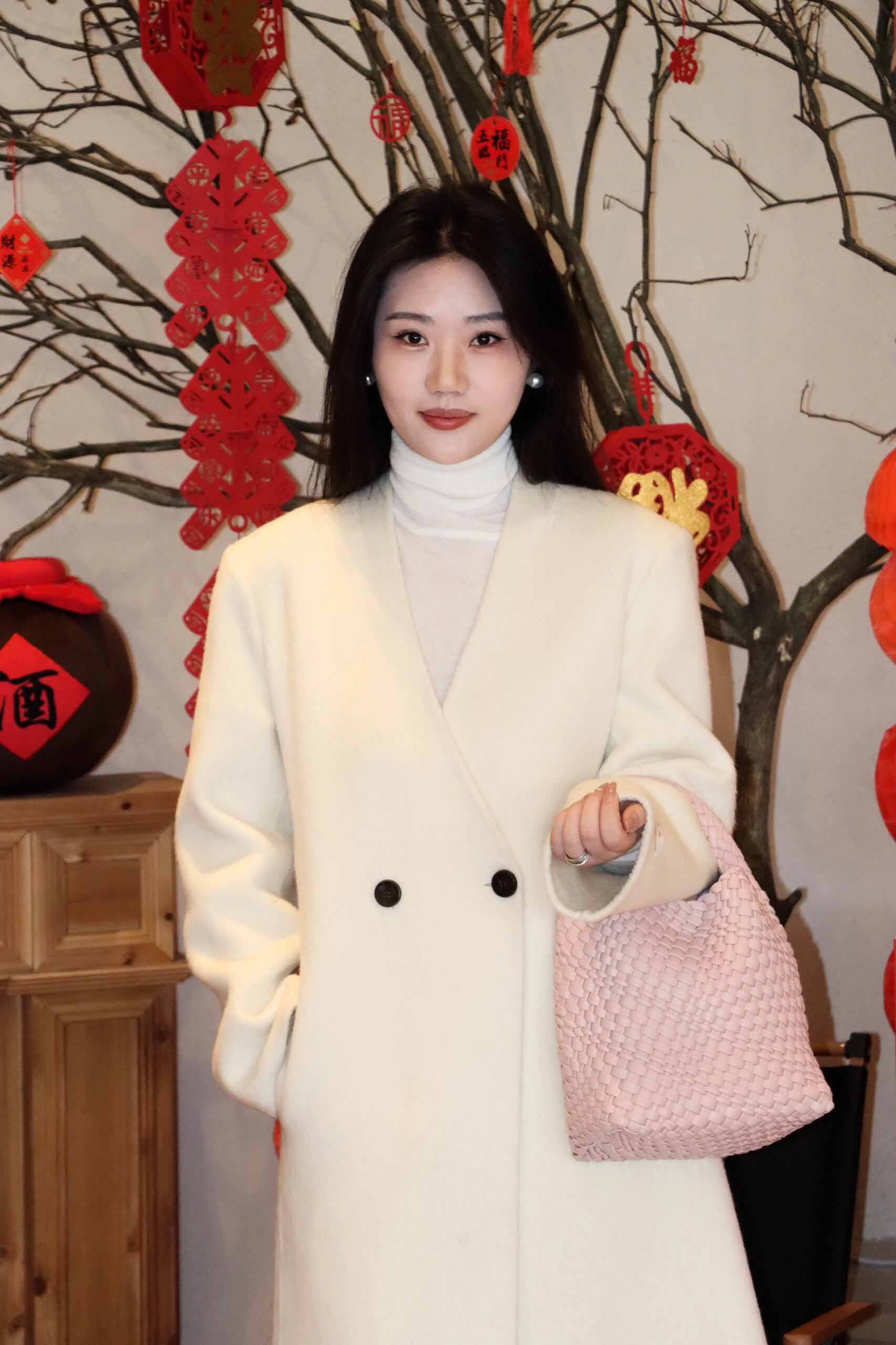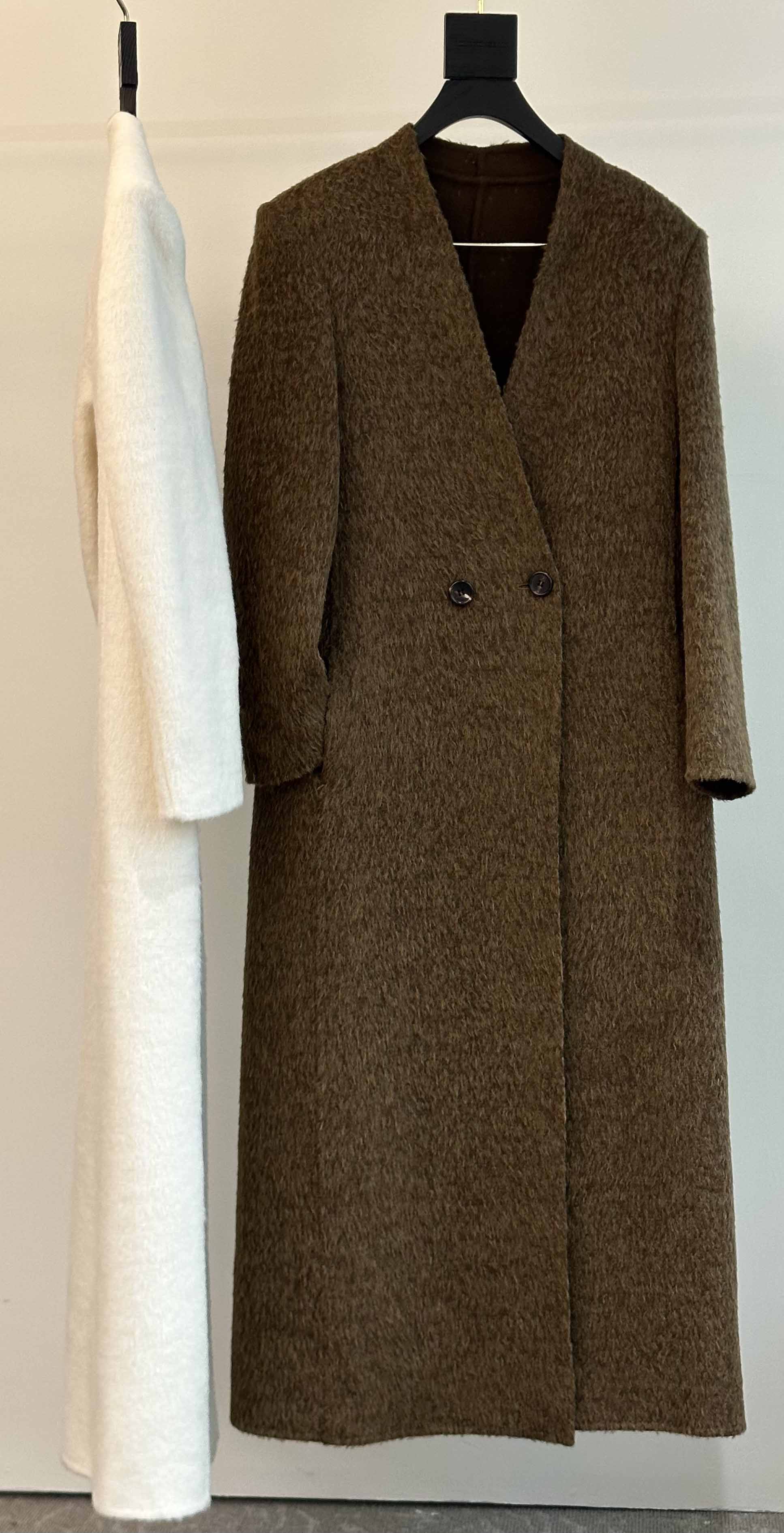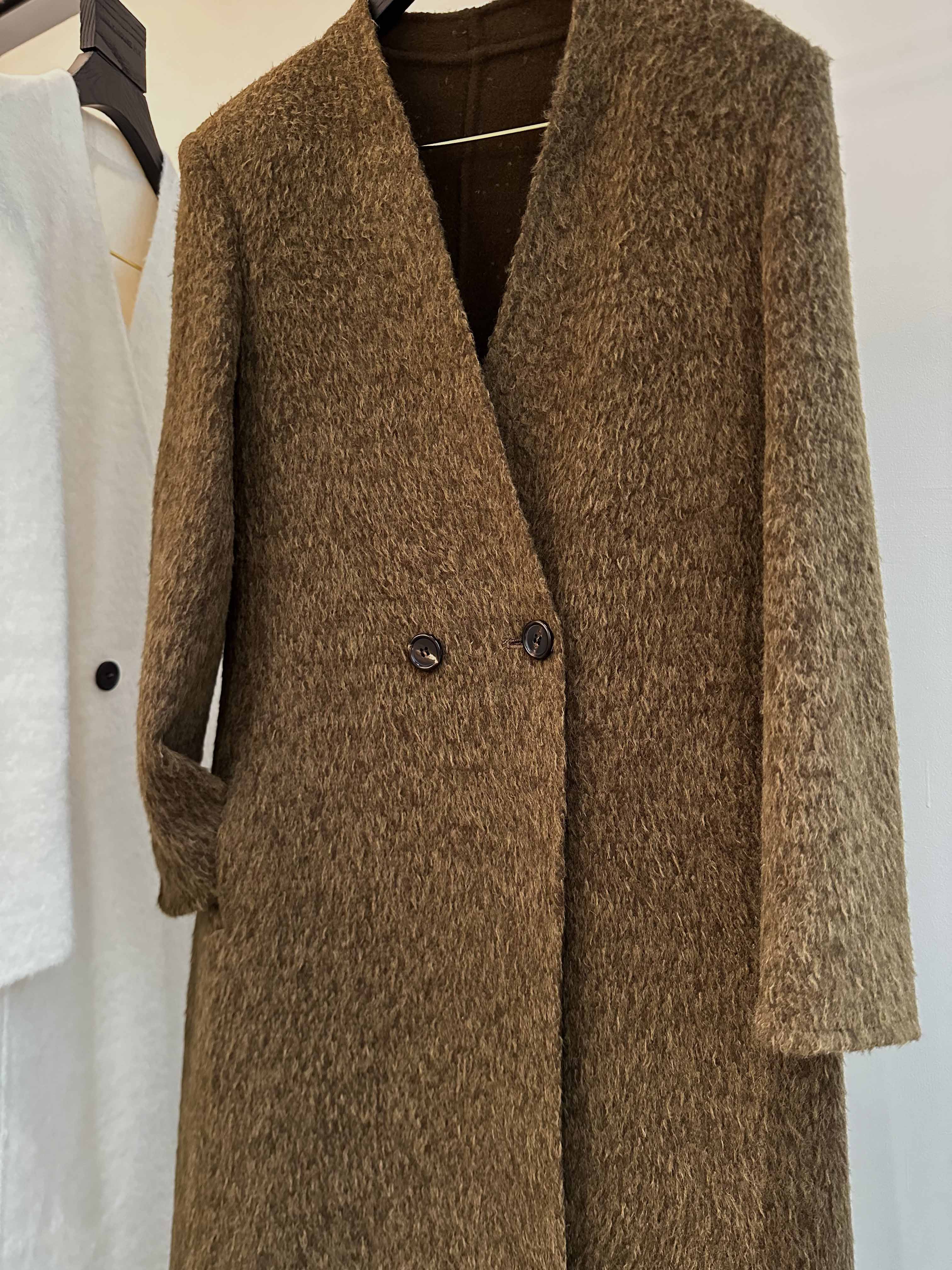 赫本风V领中长款苏丽绒大衣 · 白色/咖啡色