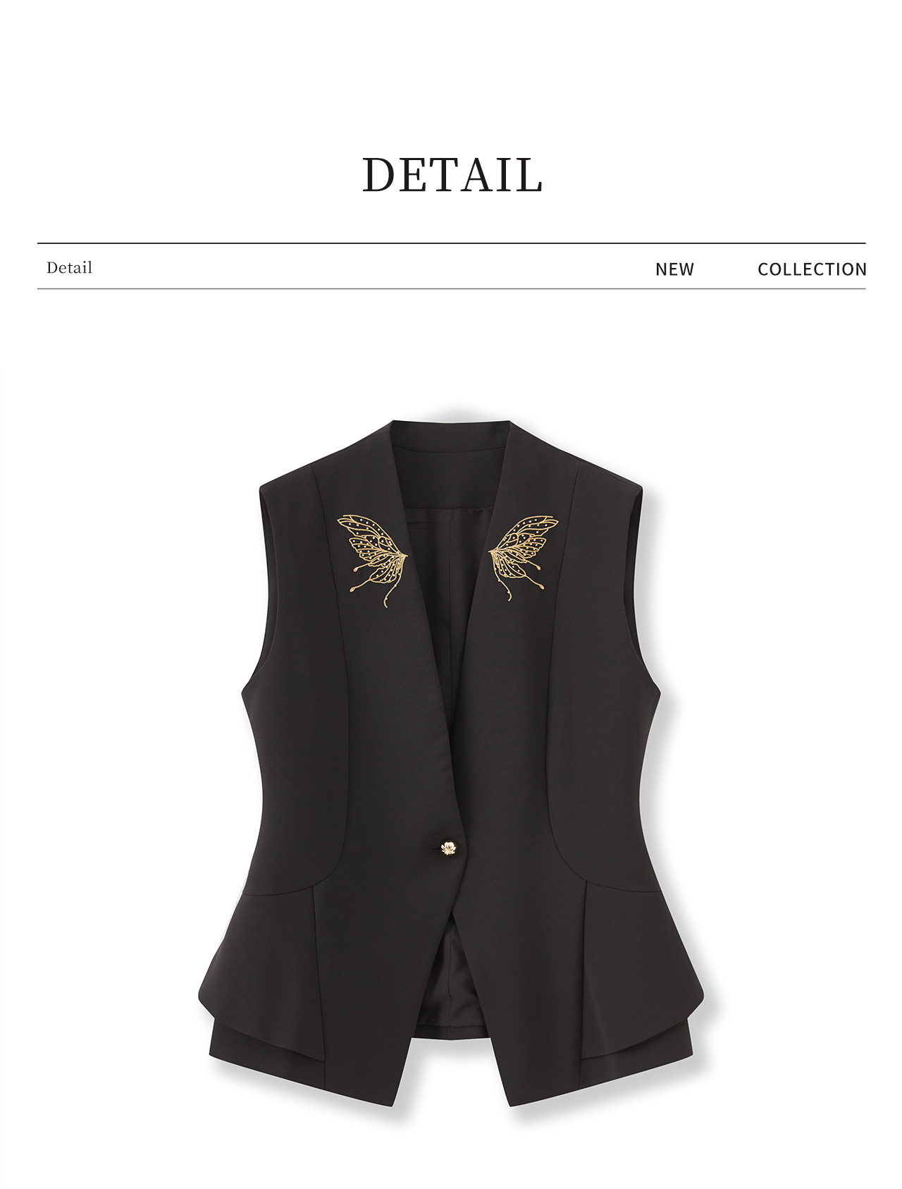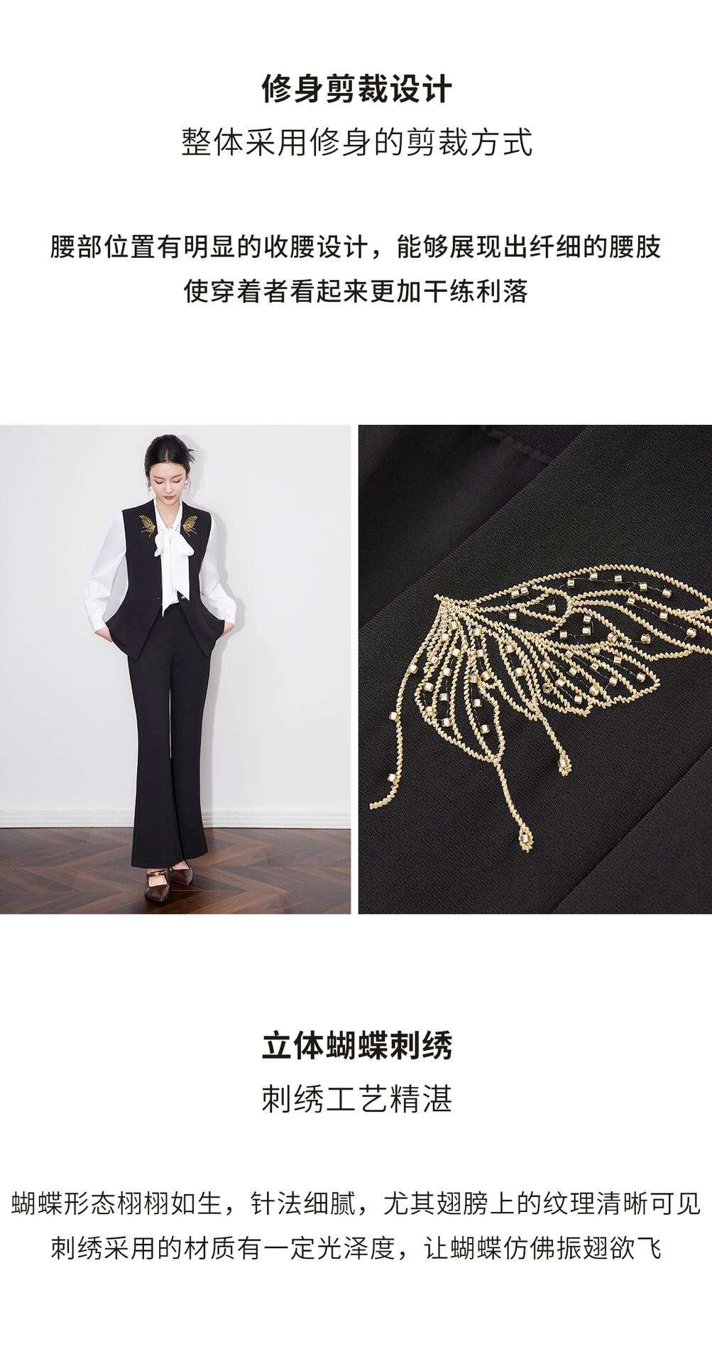 「高货wl」全新升级【铂金会员330/天猫449/差价119】(52953)洛诗琳手工串珠刺绣西装马甲2025秋季掐腰V领通勤无袖外套