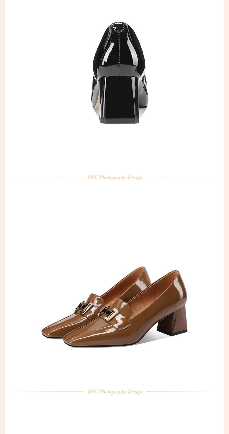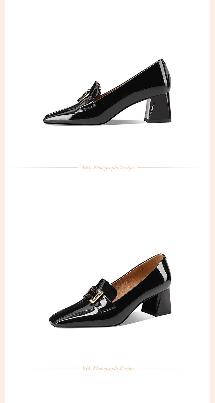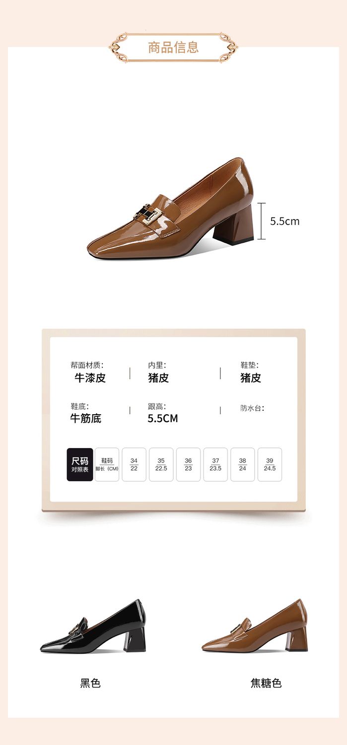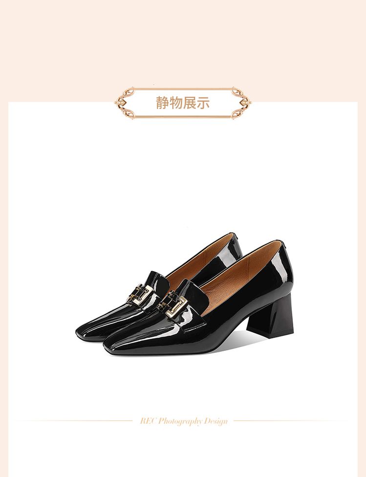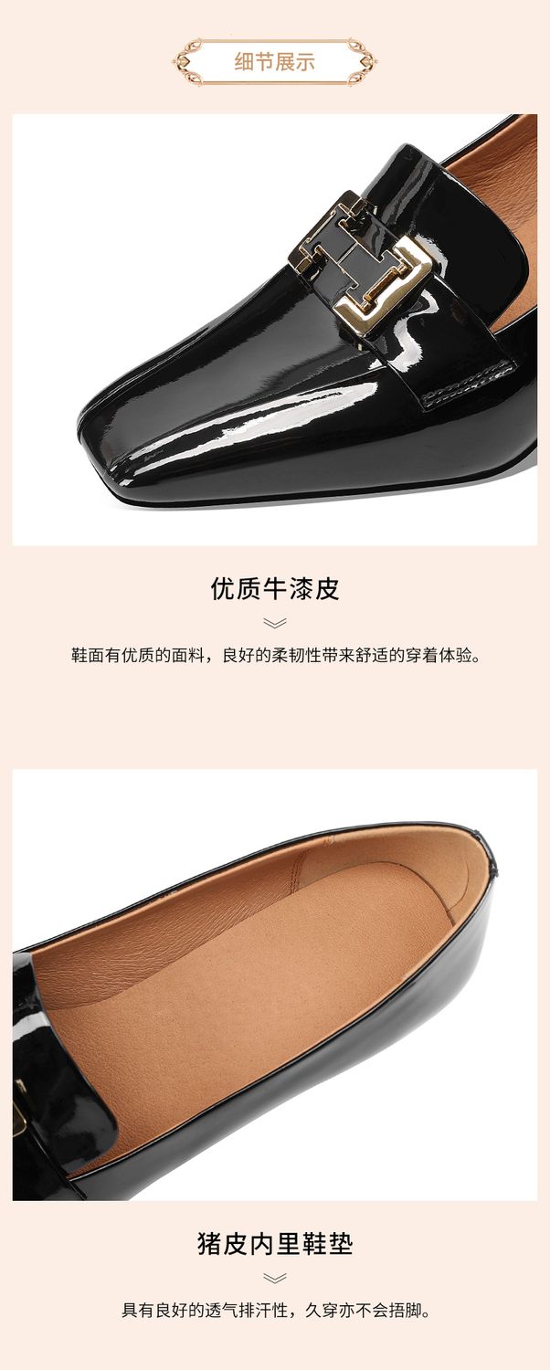 【预售5天】亮漆真皮方头浅口单鞋女春秋季新款舒适中跟粗跟女鞋中口乐福鞋HY&H3588