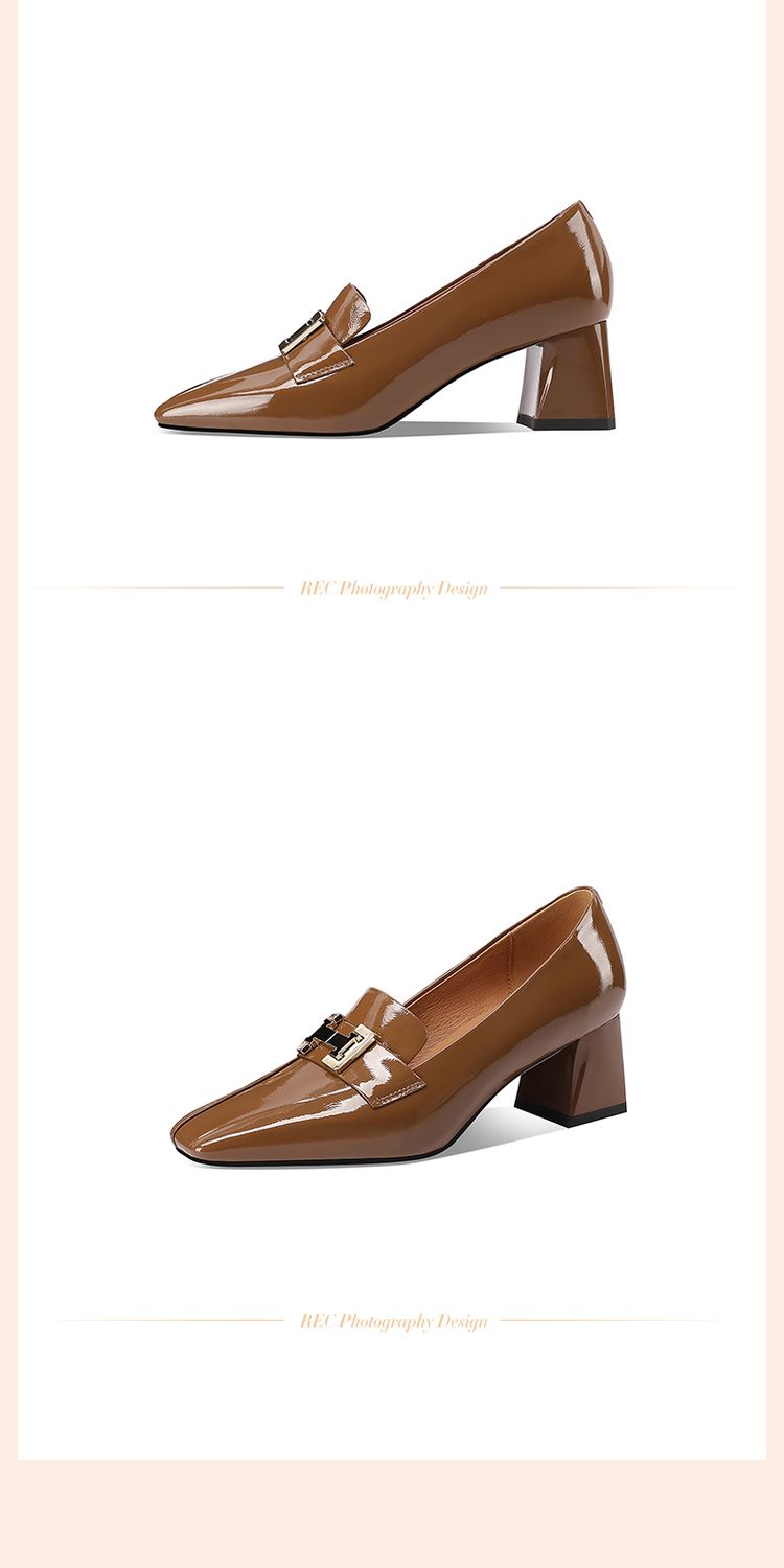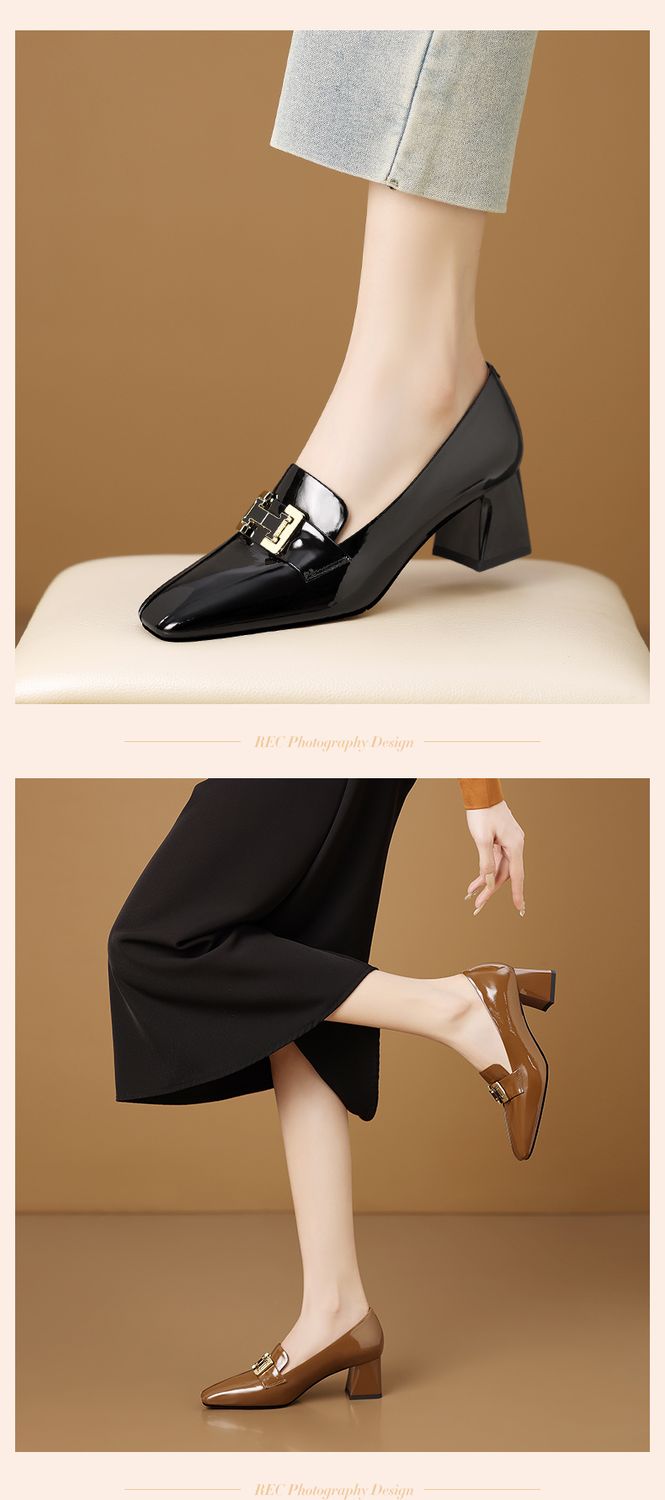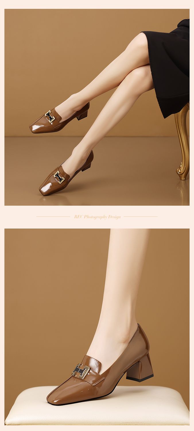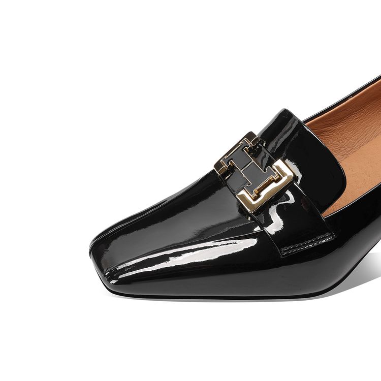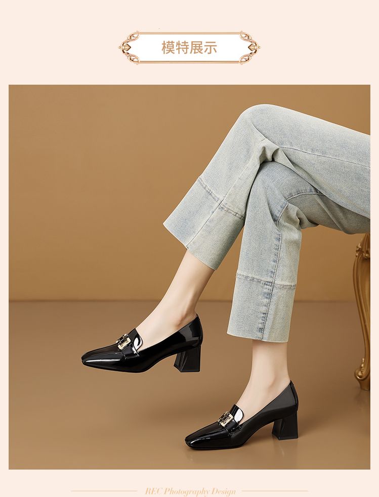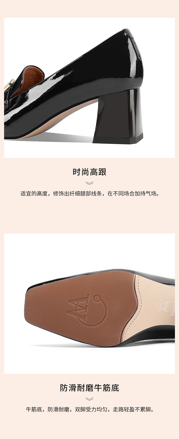 【预售5天】亮漆真皮方头浅口单鞋女春秋季新款舒适中跟粗跟女鞋中口乐福鞋HY&H3588