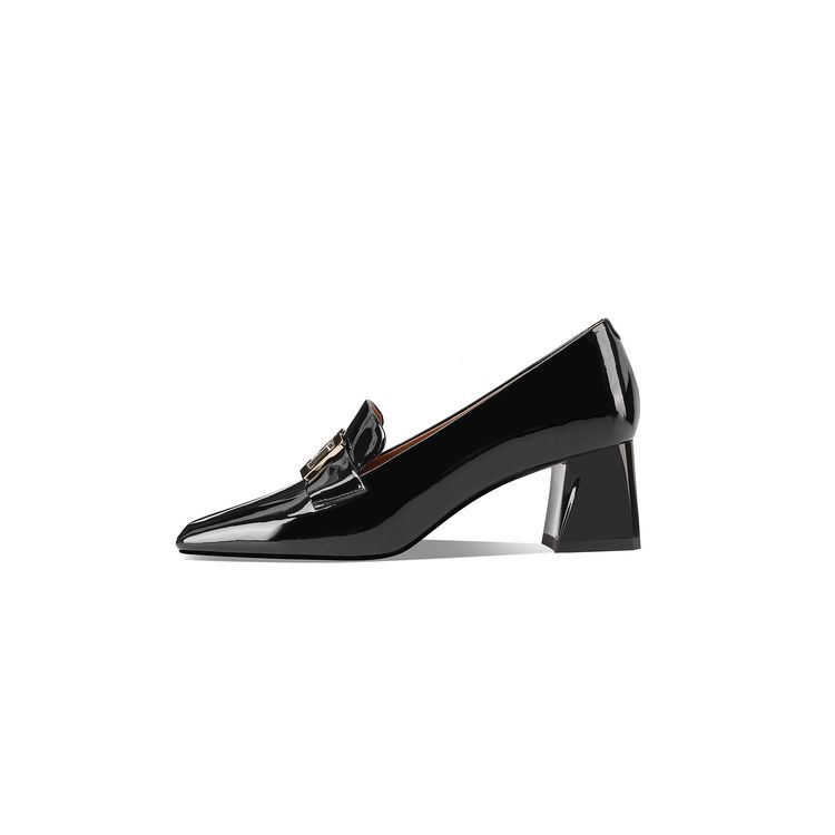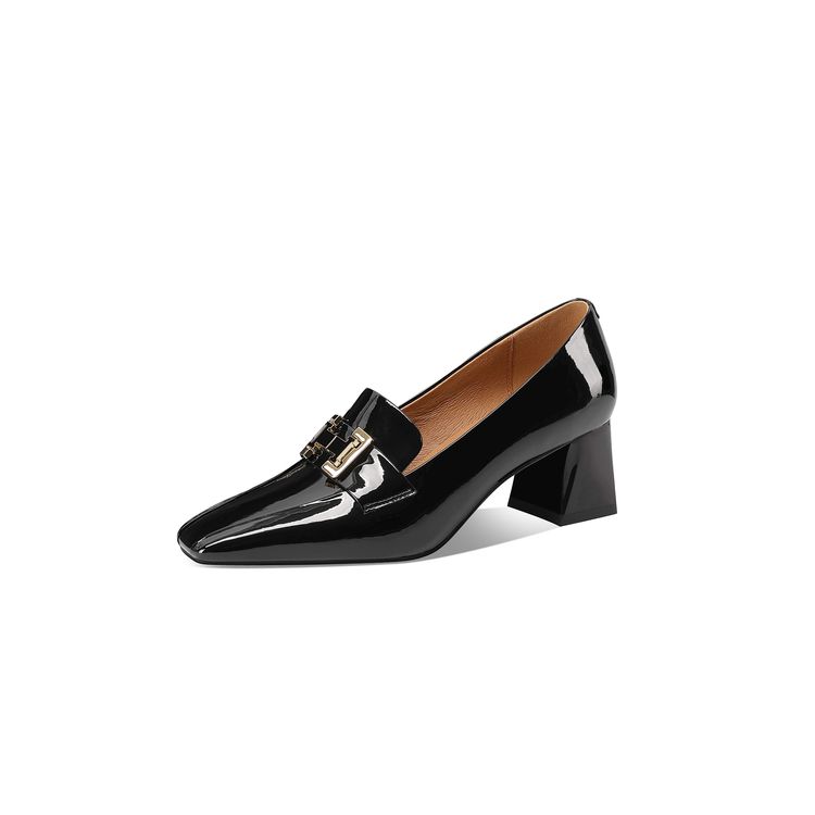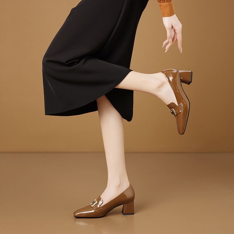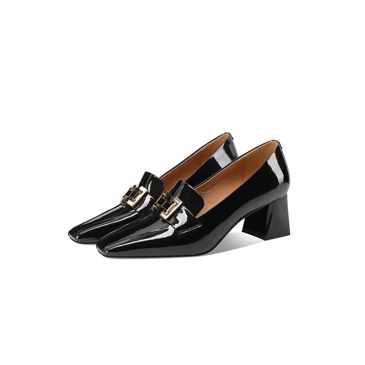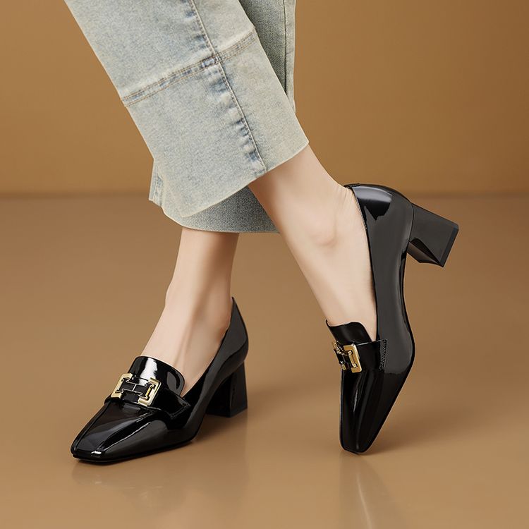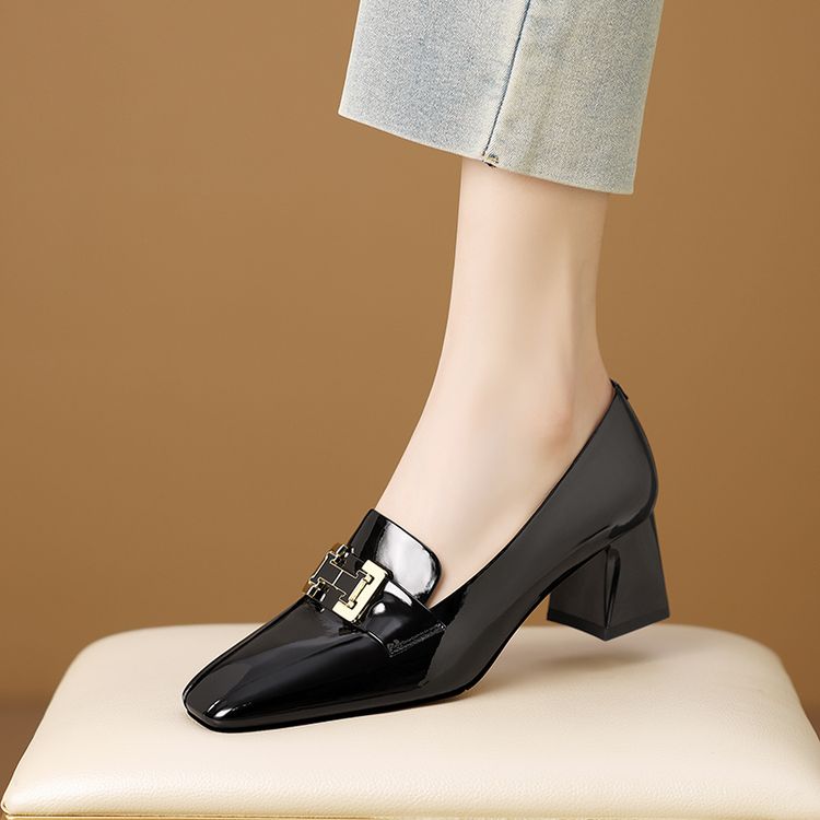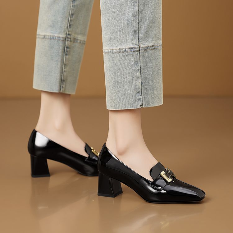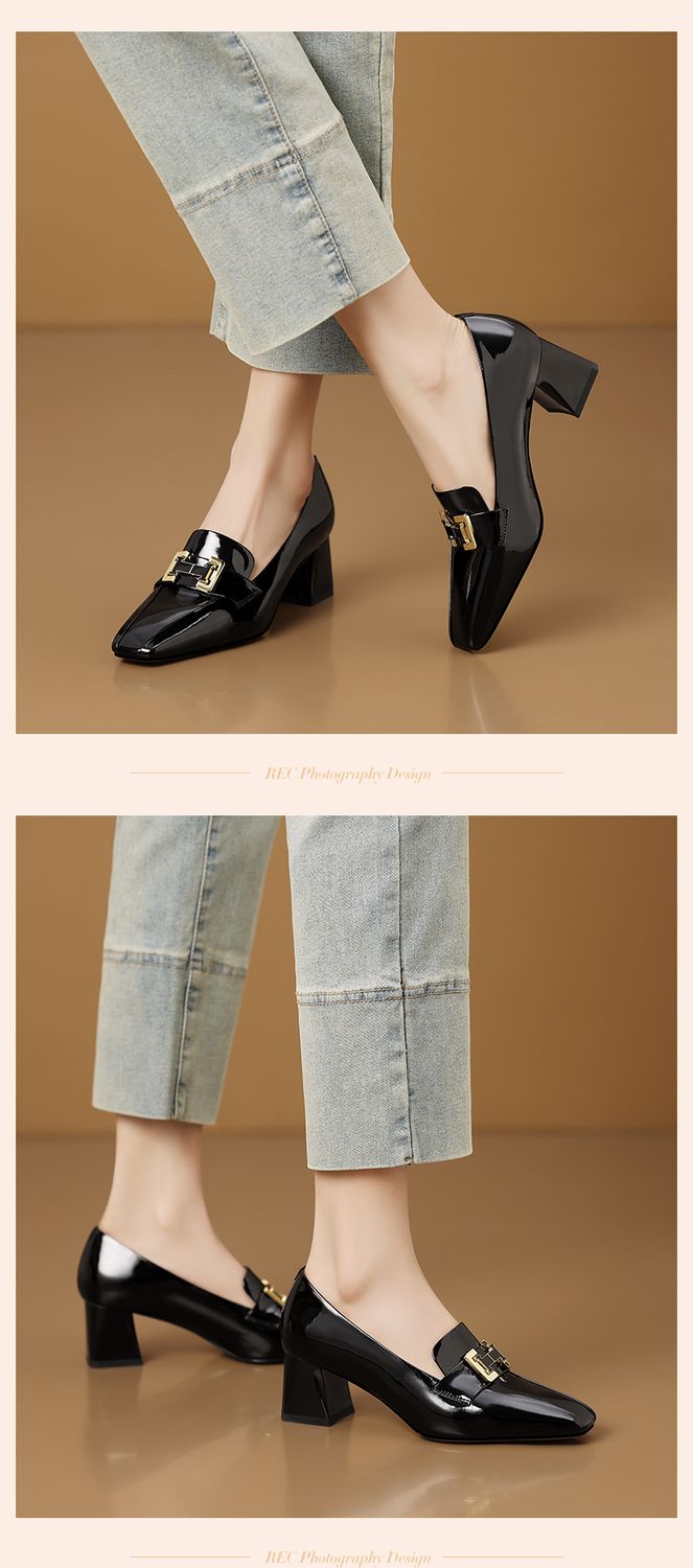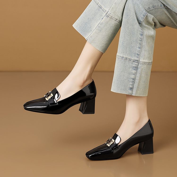 【预售5天】亮漆真皮方头浅口单鞋女春秋季新款舒适中跟粗跟女鞋中口乐福鞋HY&H3588