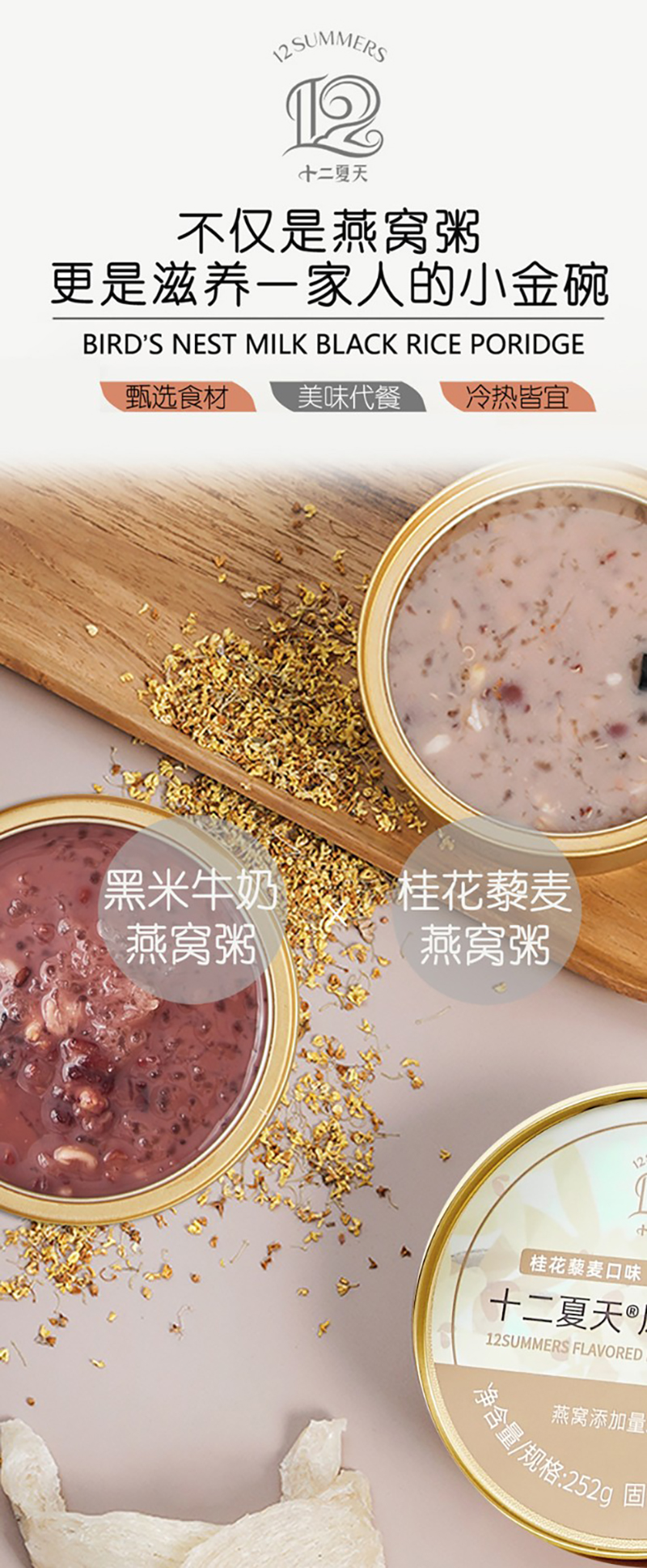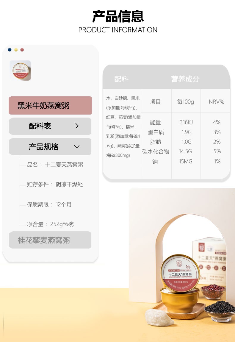 十二夏天风味燕窝牛奶黑米粥252g*6碗 营养粥桂花藜麦山姆燕窝粥早餐粥下午茶甜点送礼过年货礼盒