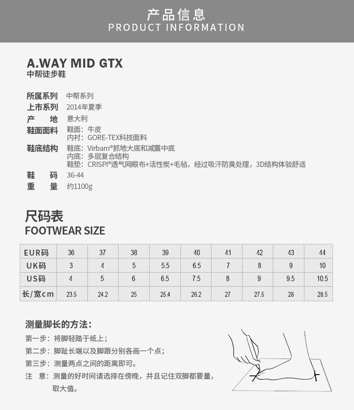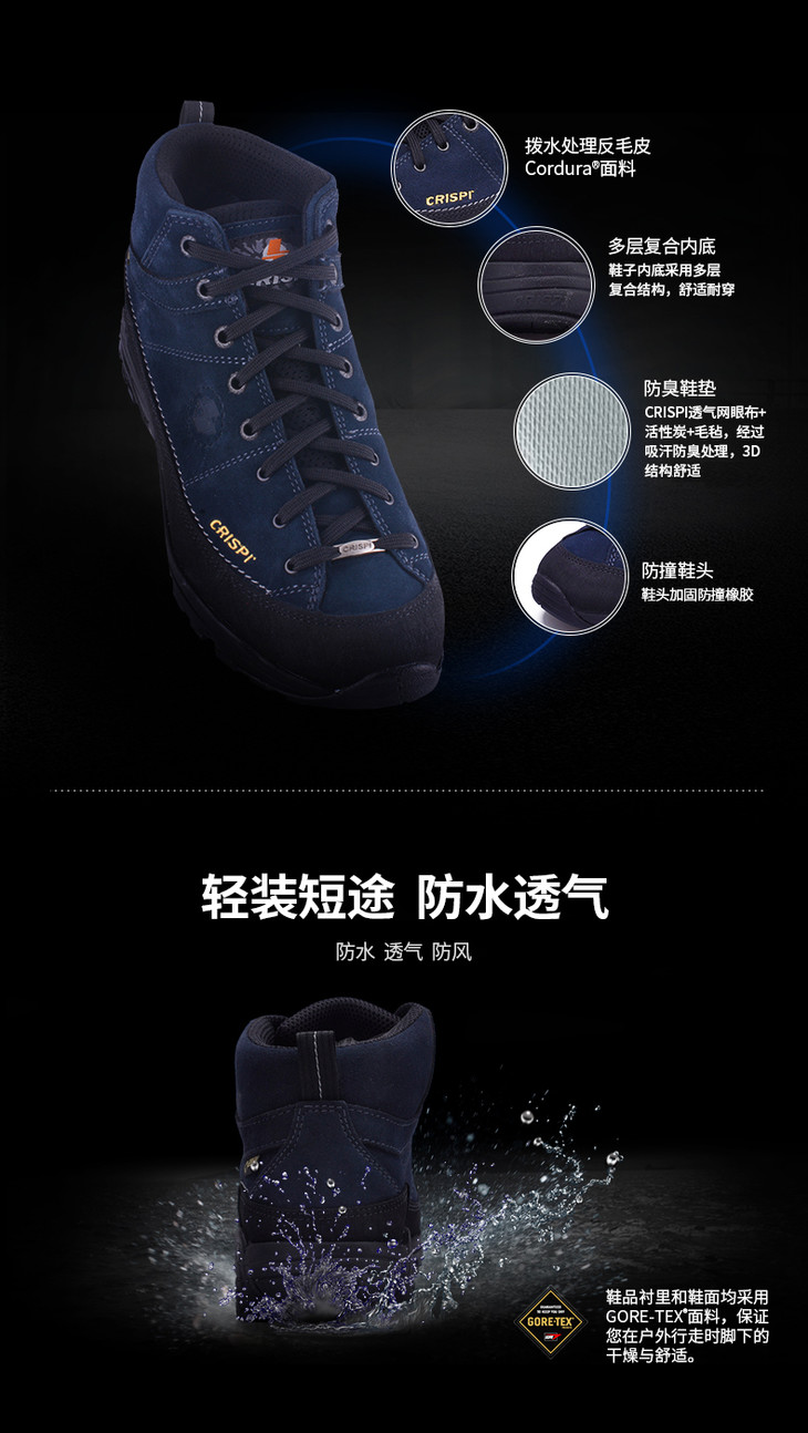 7.5折CRISPI A WAY MID GTX 耐磨防滑登山鞋男女款徒步鞋牛皮防水户外鞋跑马拉松比赛越野跑步耐力跑训练慢跑健身徒步运动