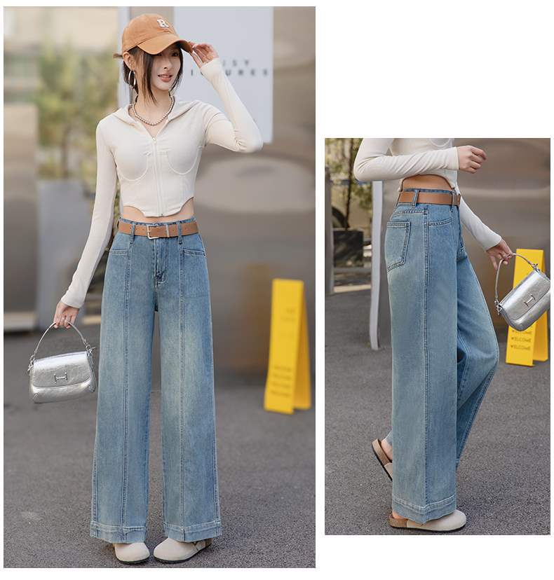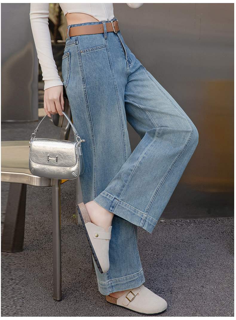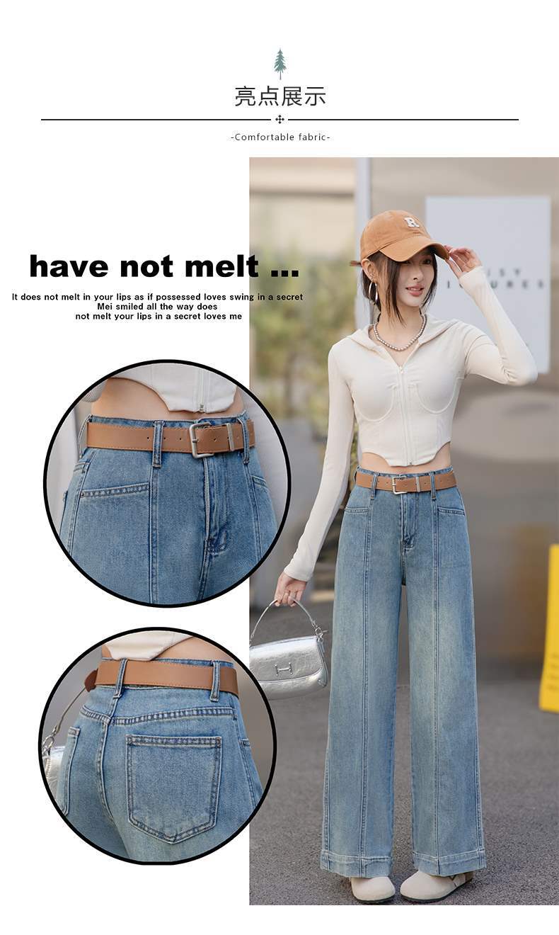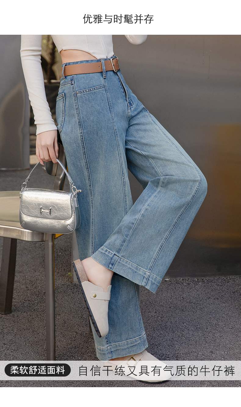 【送腰带】复古高腰阔腿牛仔裤,水洗宽松显瘦垂感休闲CLYZ2507