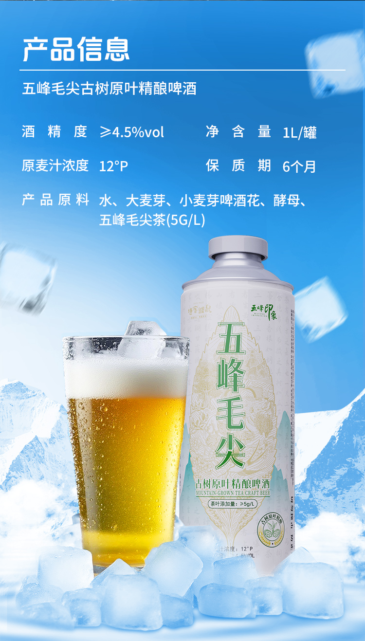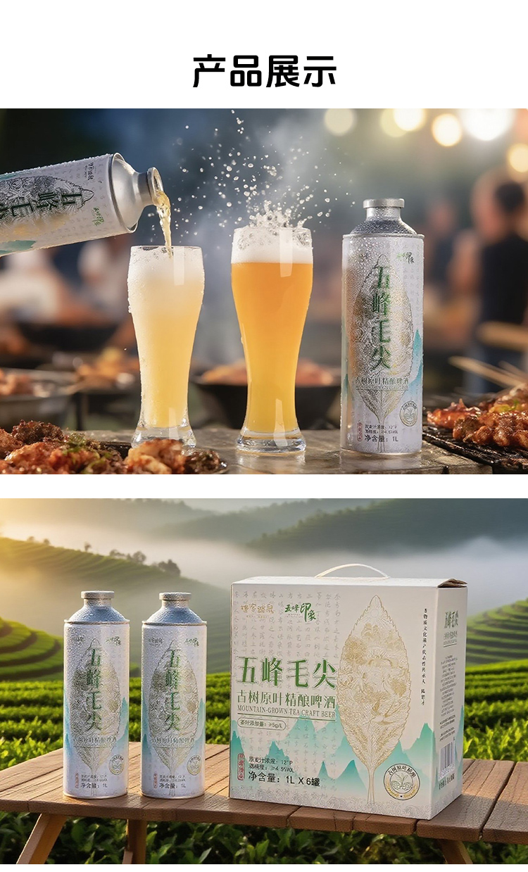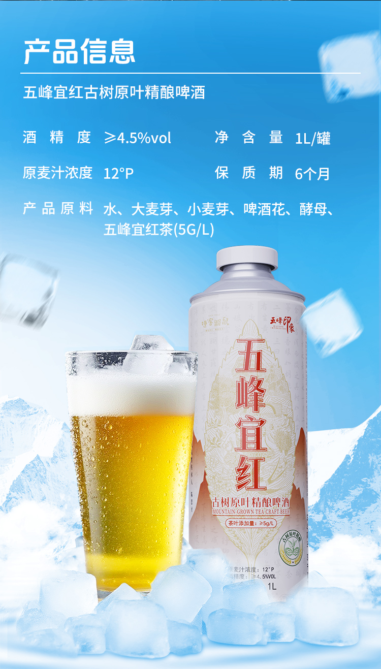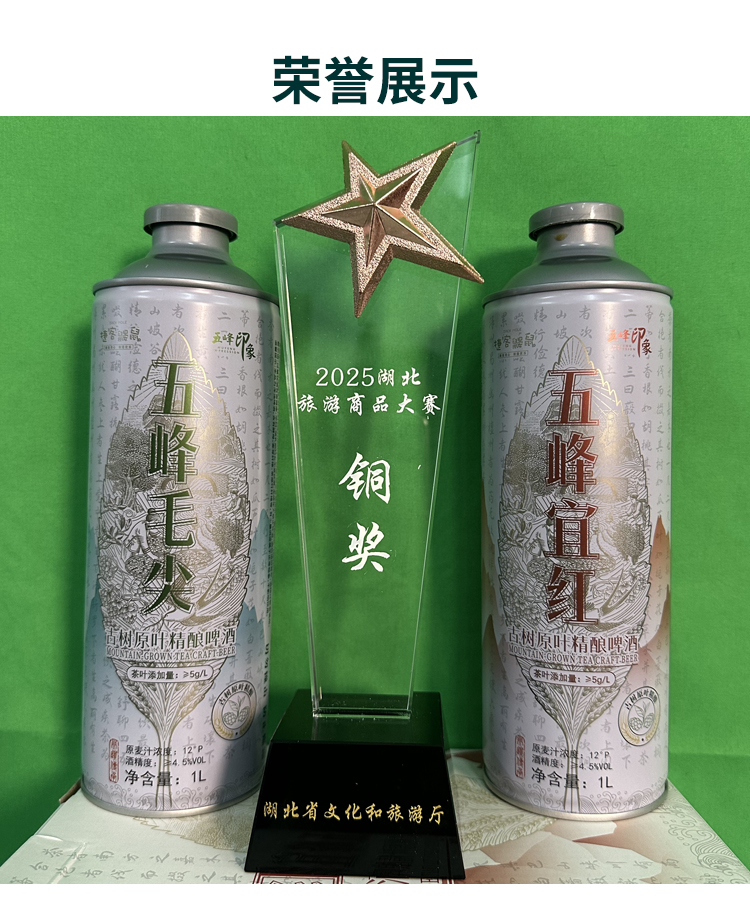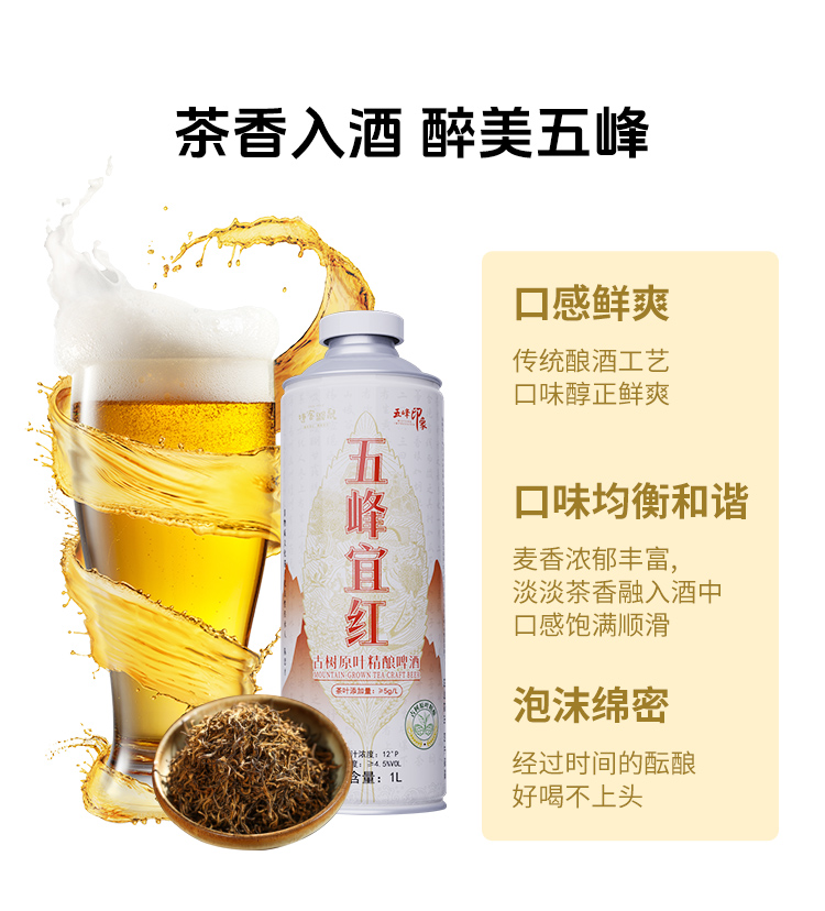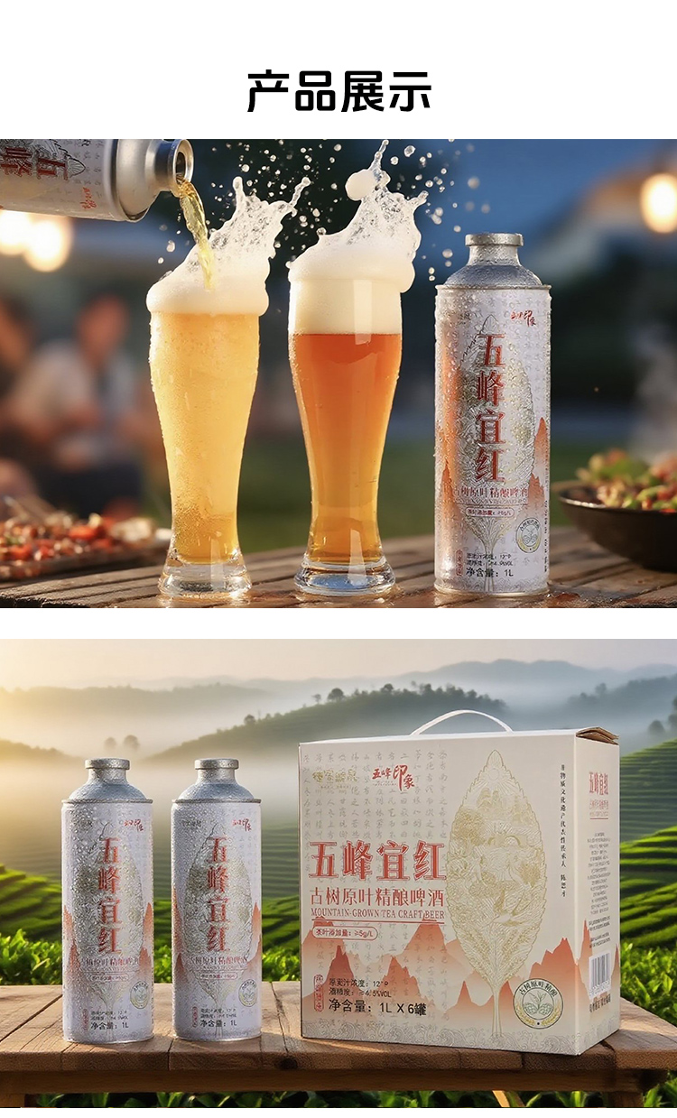 【现货火爆销售中】五峰印象毛尖宜红茶啤酒1L/瓶 6L/提古树原叶精酿啤酒750ml鹿竹百香精酿啤酒