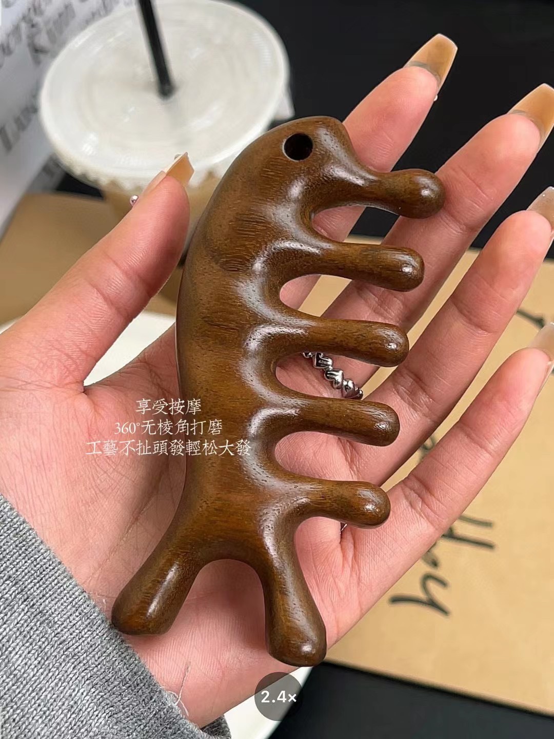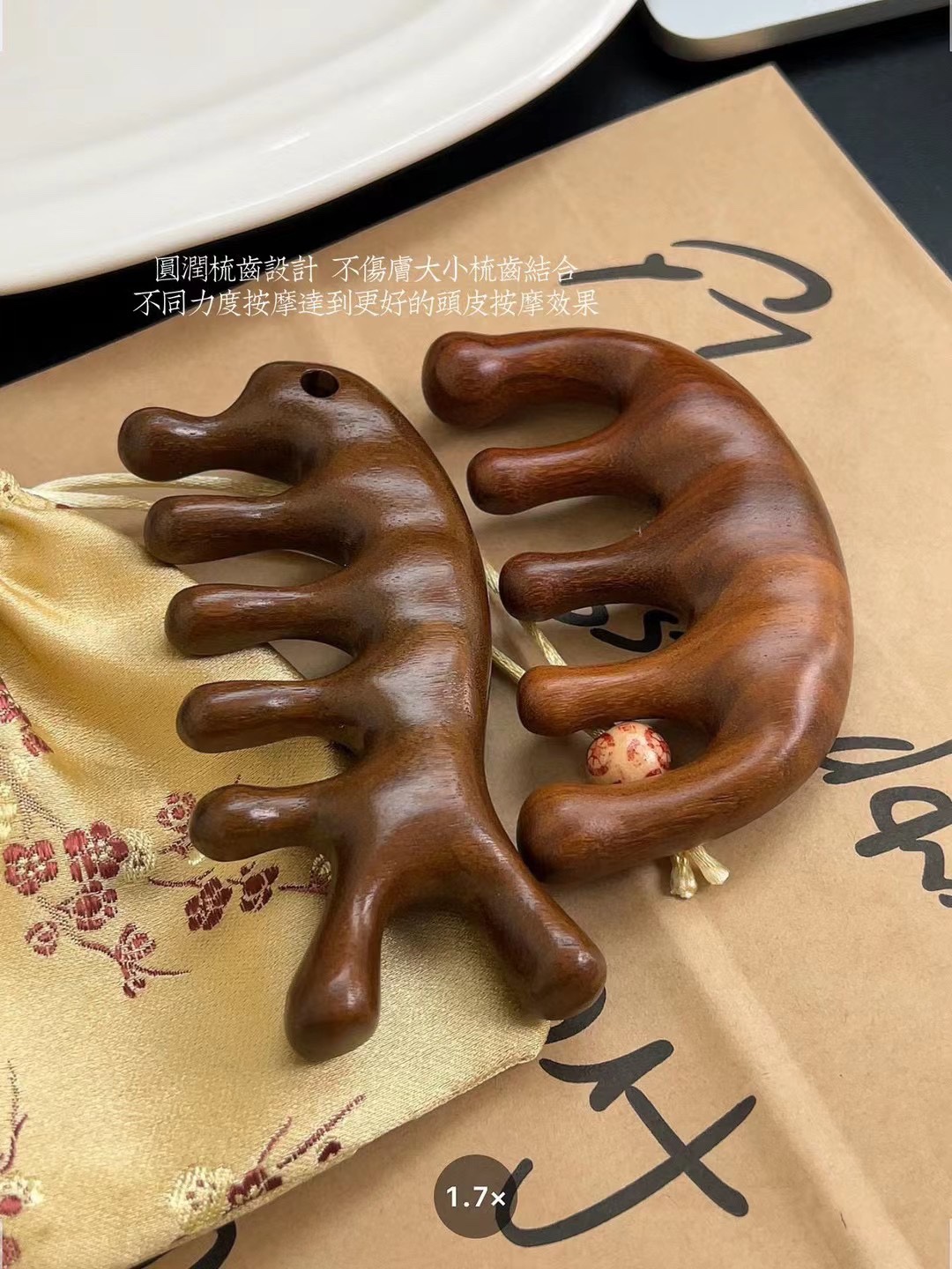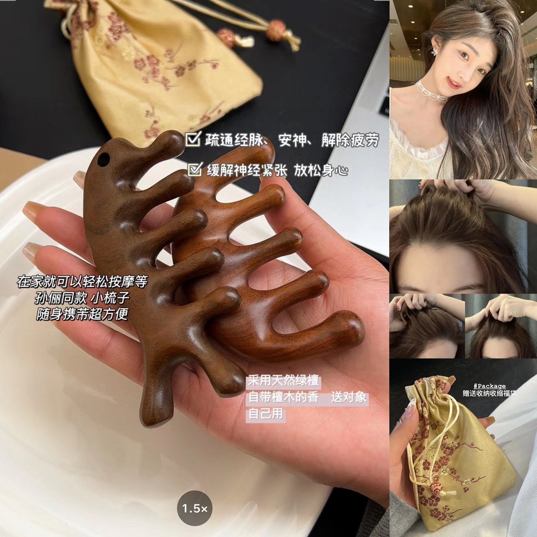 【 天然檀木按摩经络梳 】进口天然檀木梳 梳头按摩两不误,一梳两用 活络头部经血 点穴按摩放松,孙俪同款五经按摩梳 有一种特殊的香味,梳久了自带一股清香 味道低调淡雅,弥久不散 没事梳梳头 活到99