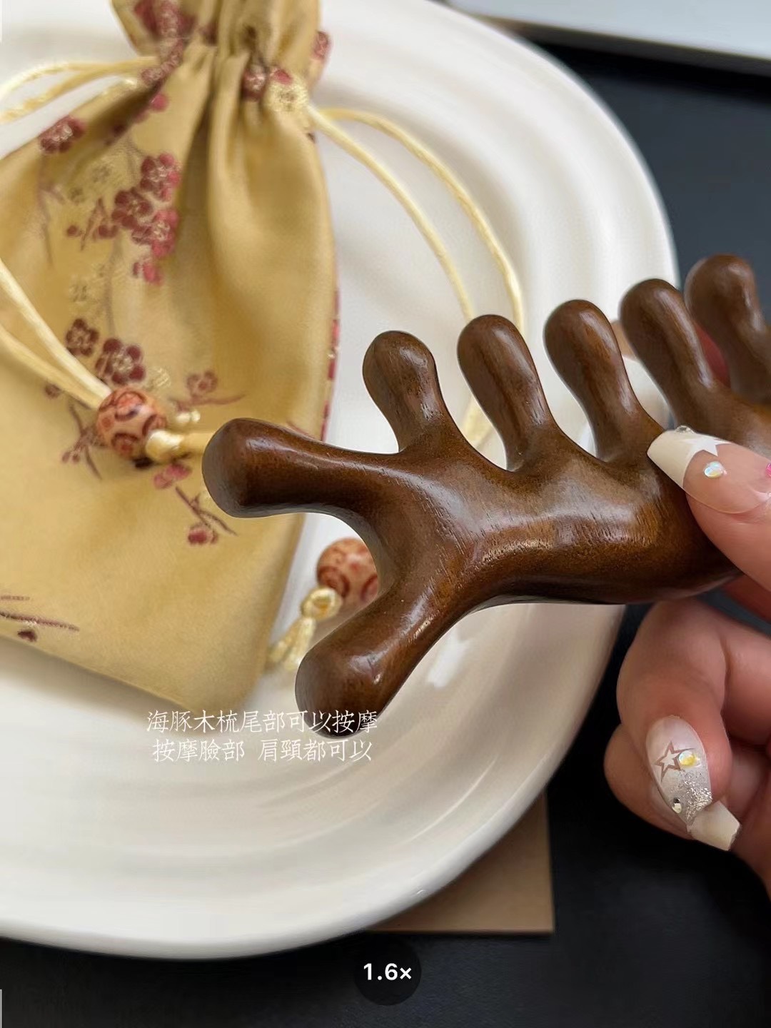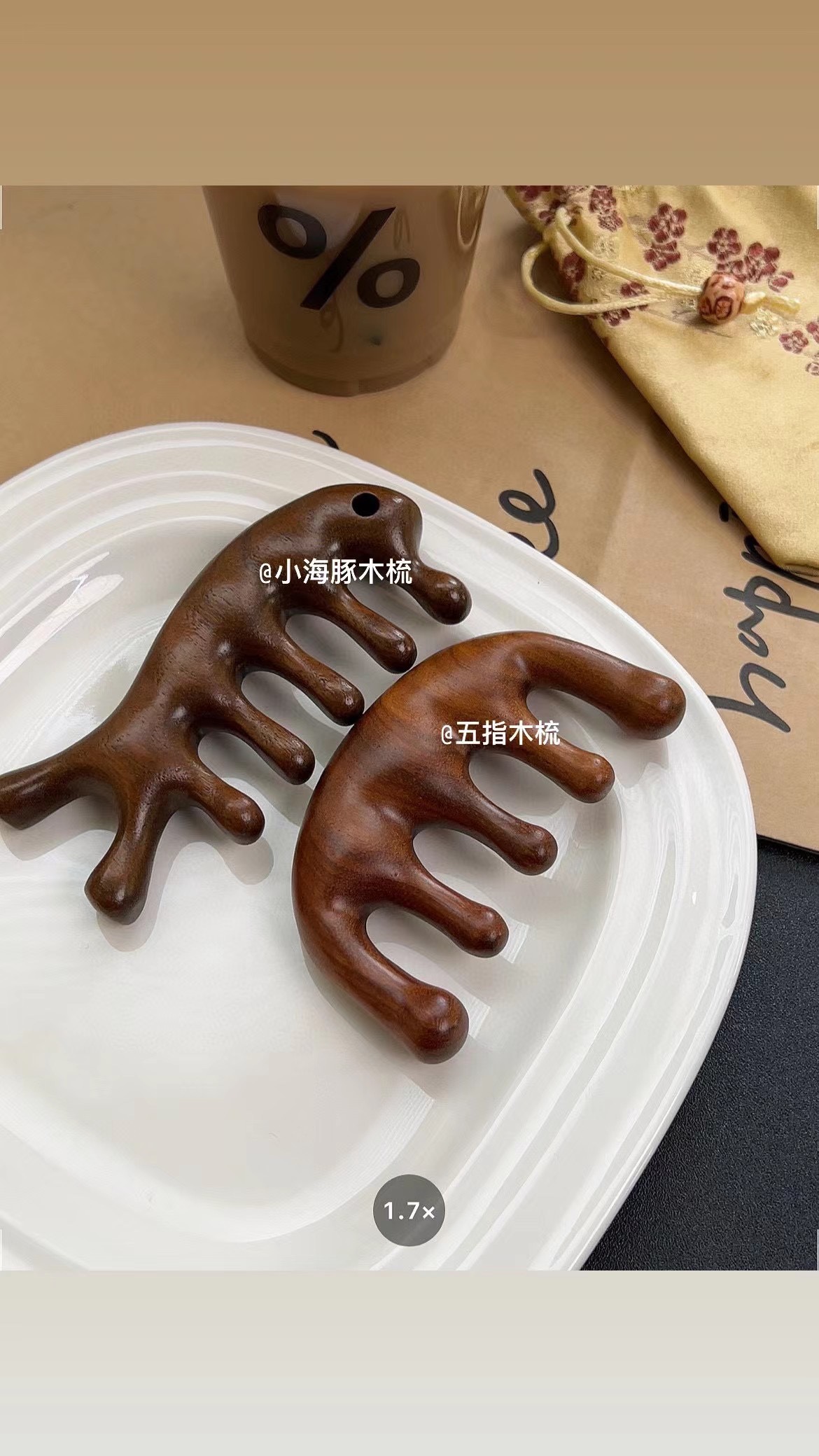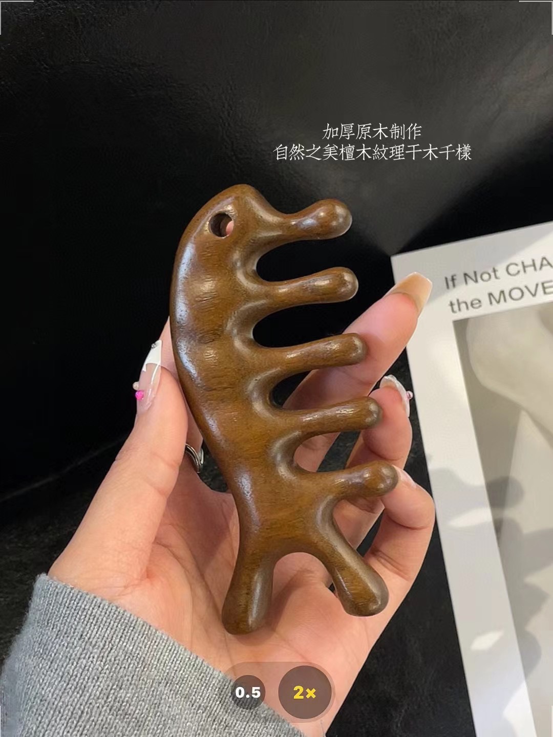 【 天然檀木按摩经络梳 】进口天然檀木梳 梳头按摩两不误,一梳两用 活络头部经血 点穴按摩放松,孙俪同款五经按摩梳 有一种特殊的香味,梳久了自带一股清香 味道低调淡雅,弥久不散 没事梳梳头 活到99
