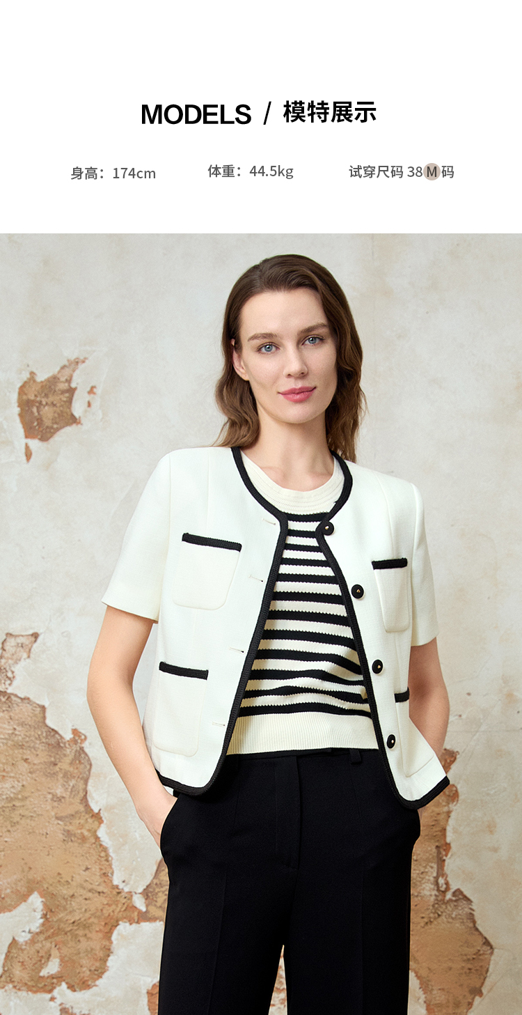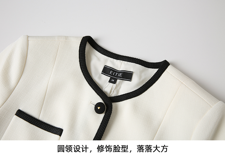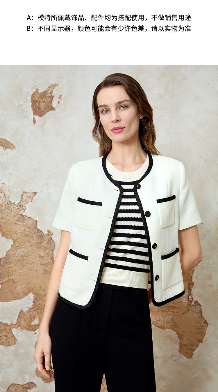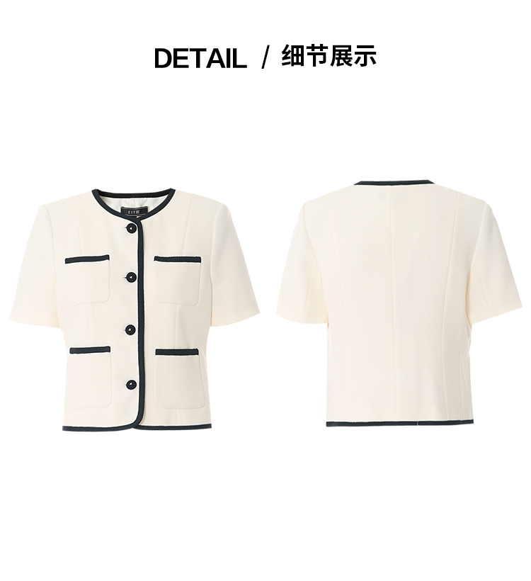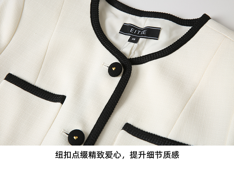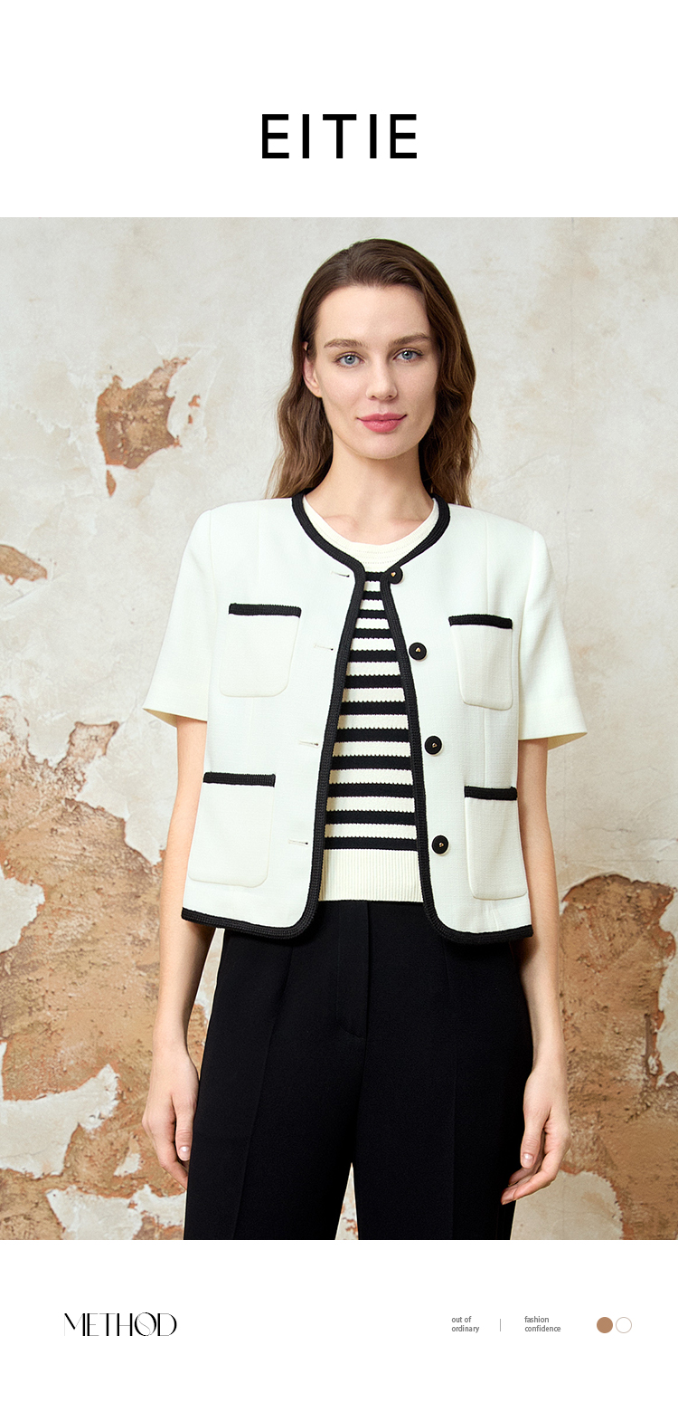 EITIE爱特爱气质圆领小香风撞色短款百搭短袖开衫外套春新款8103809