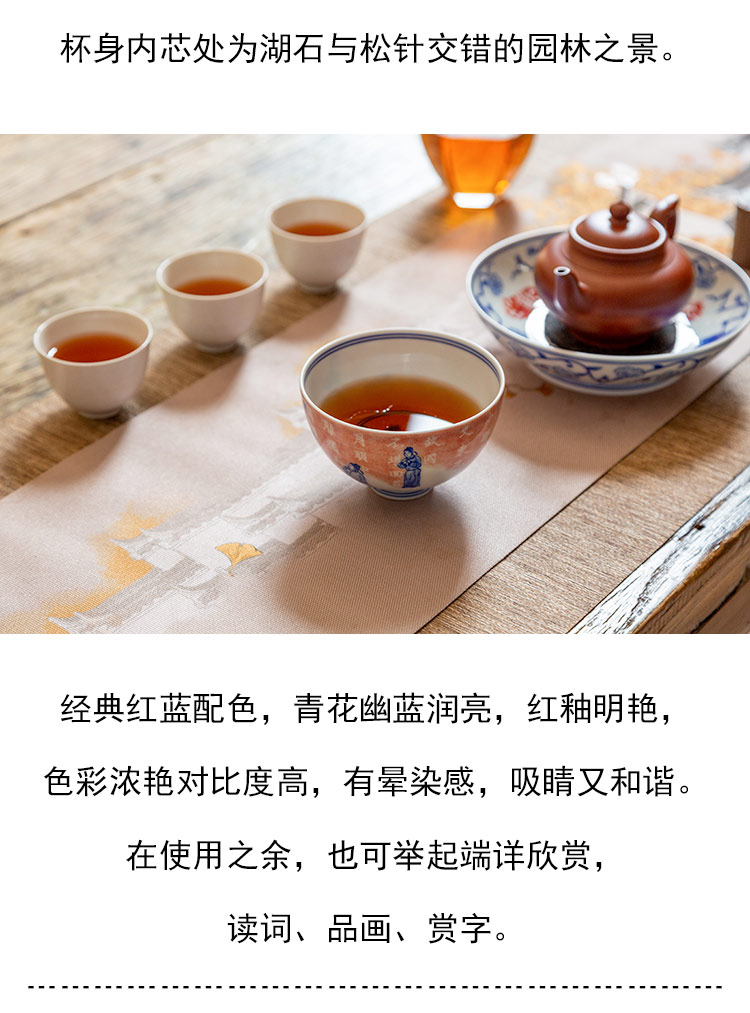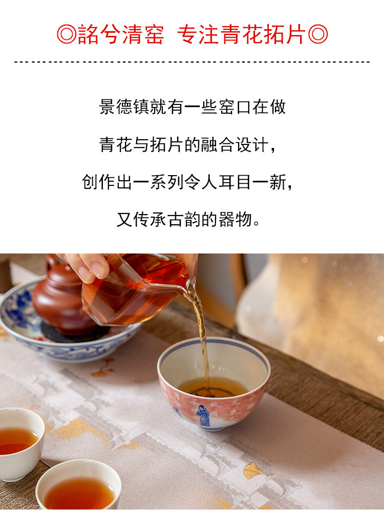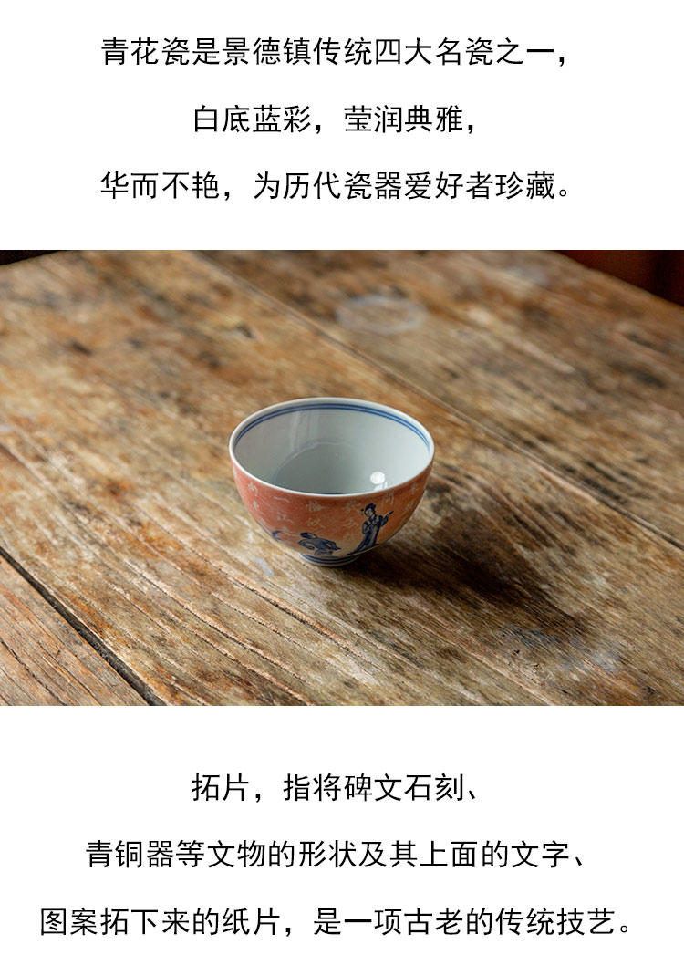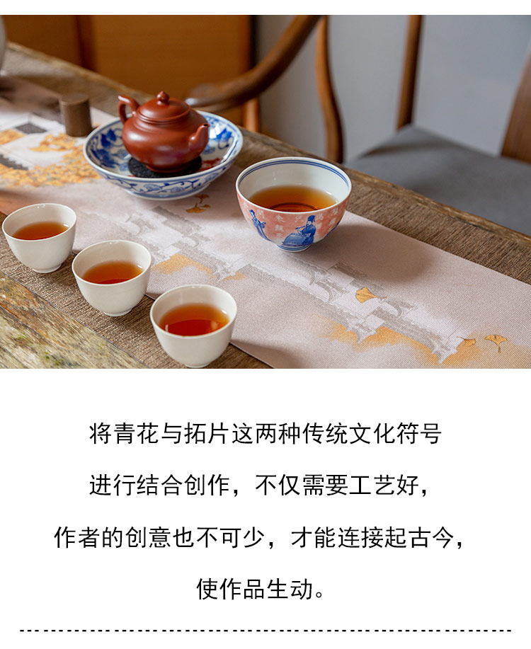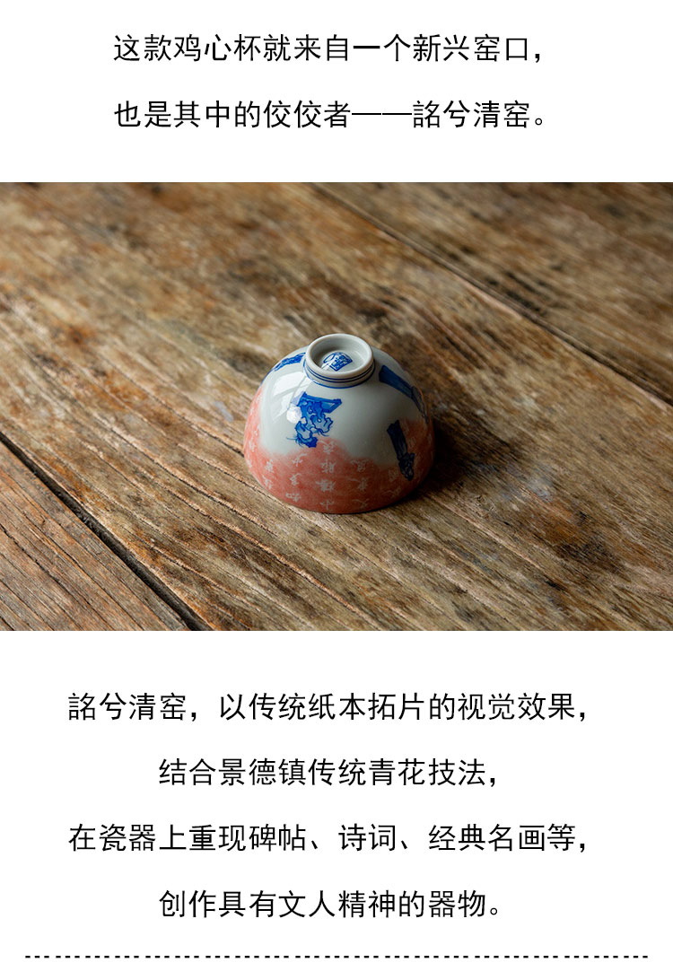 茶香记 青花拓片 韩熙载鸡心杯 詺兮清窑 精细手绘 文人意趣