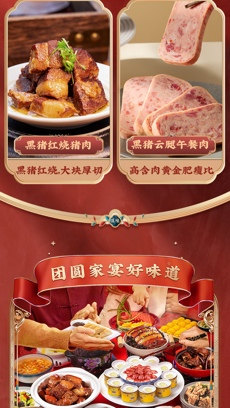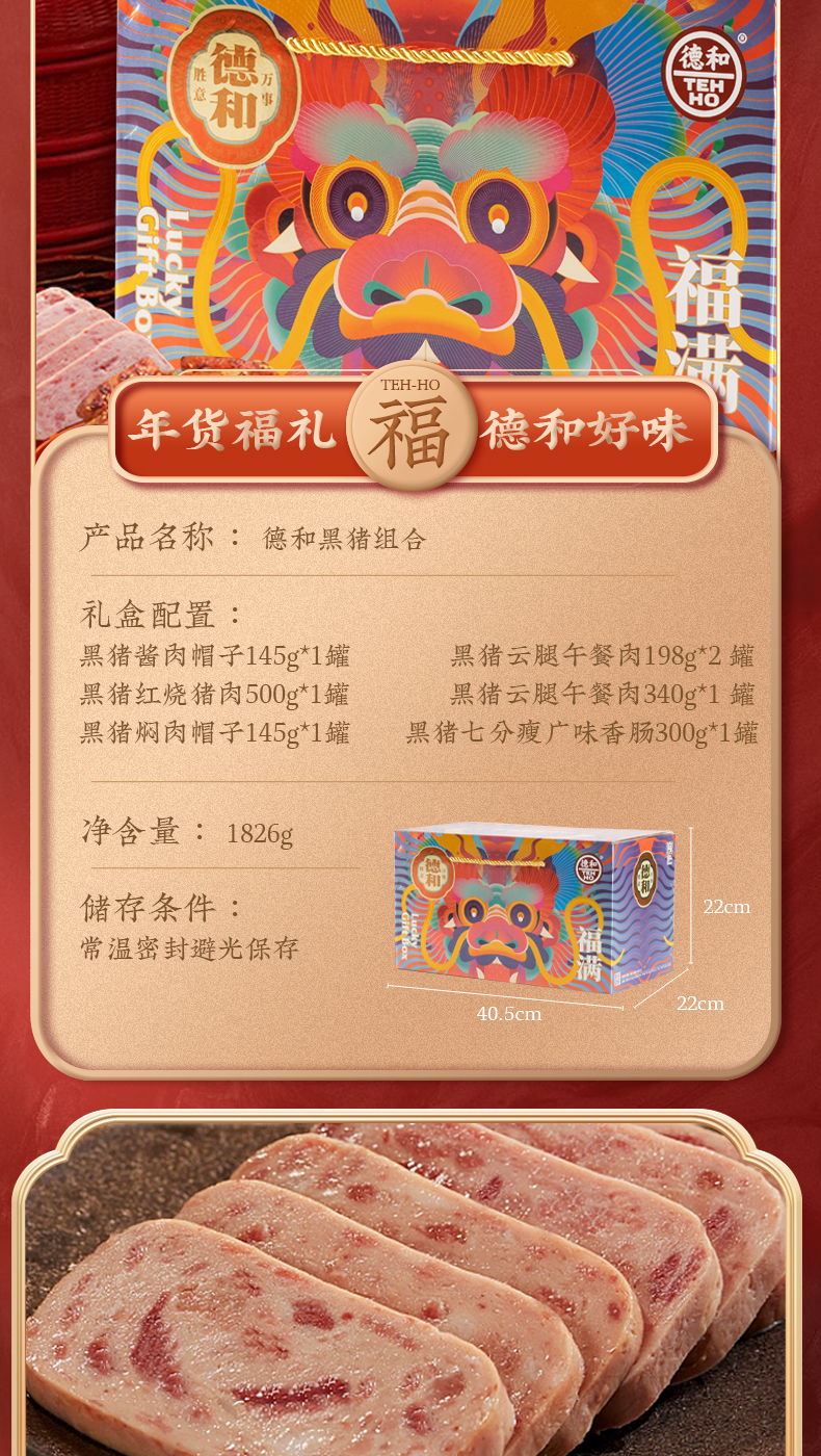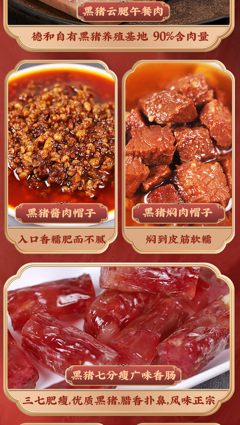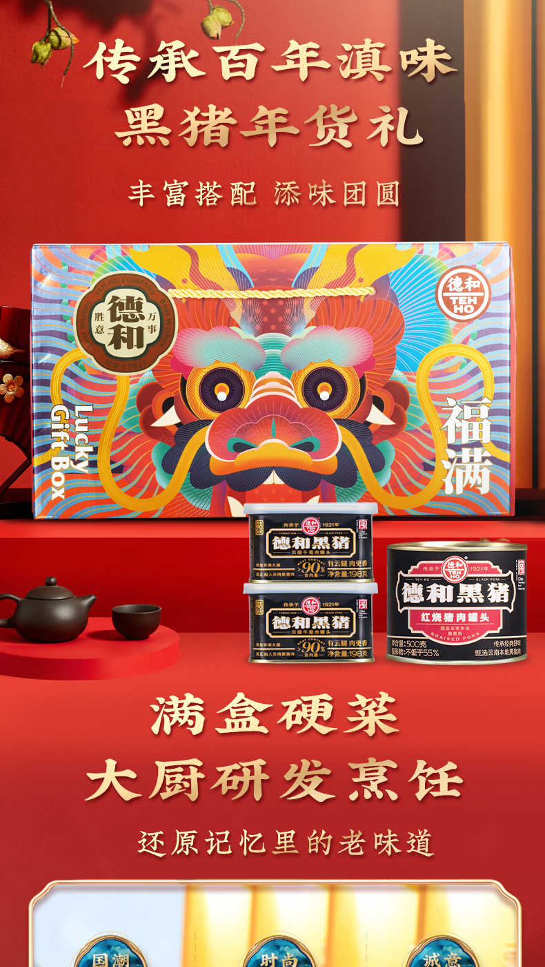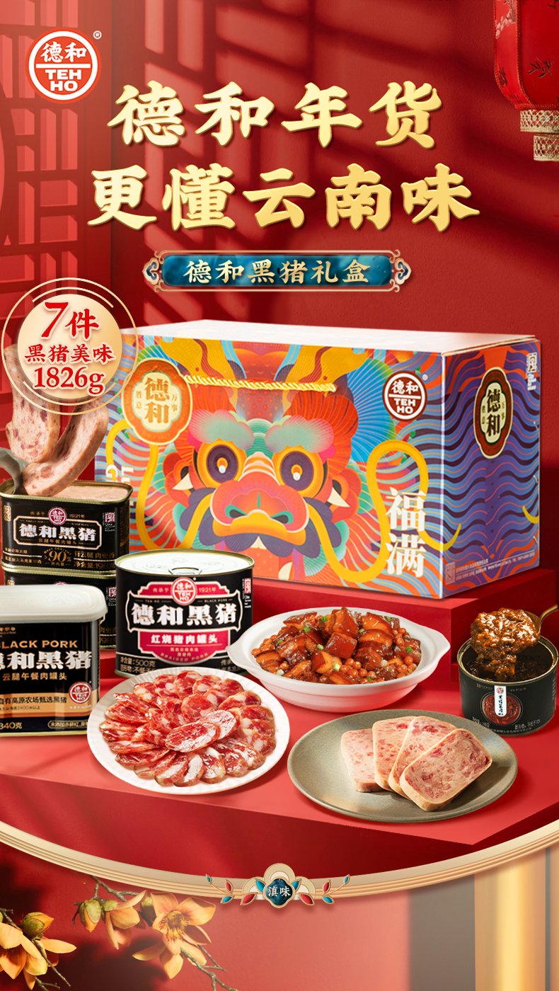 德和 黑猪礼包 黑猪云腿午餐肉酱红烧肉香肠组合团购送礼福利 福满龙礼包( 黑猪 ) 年货礼盒#礼包