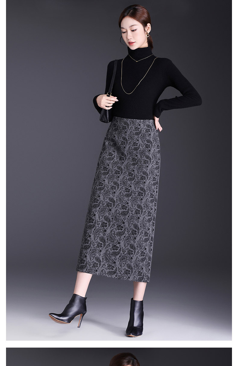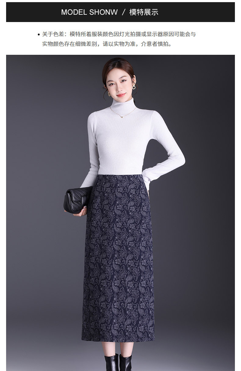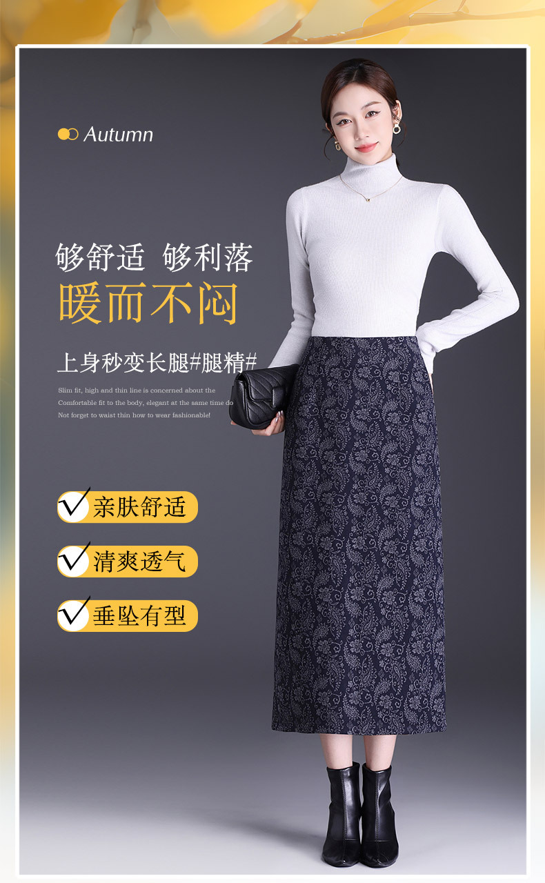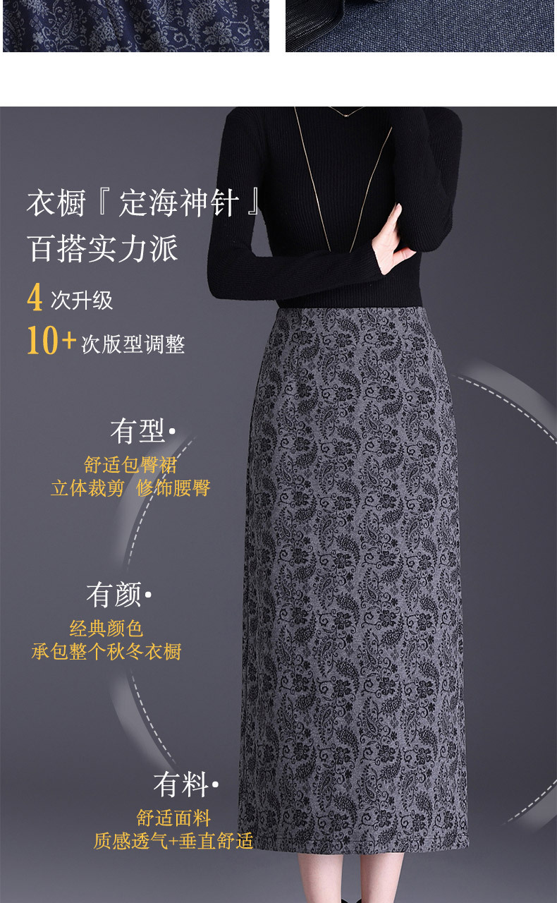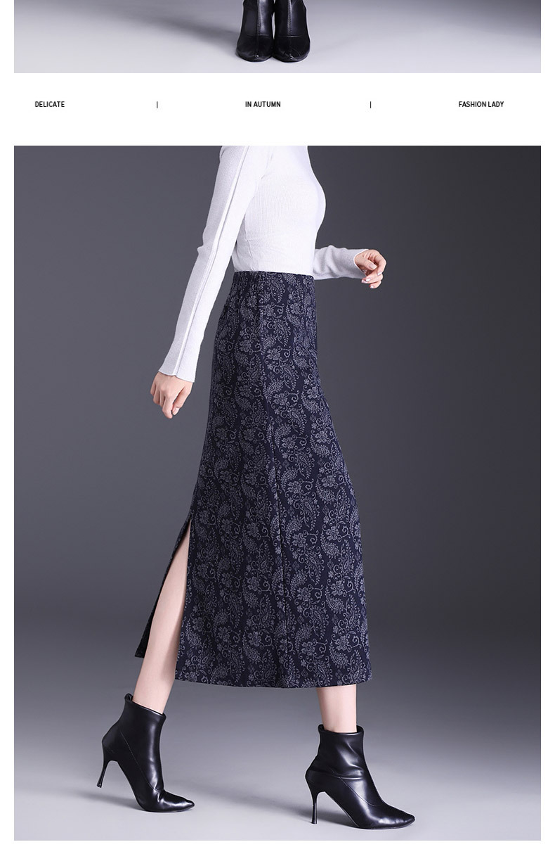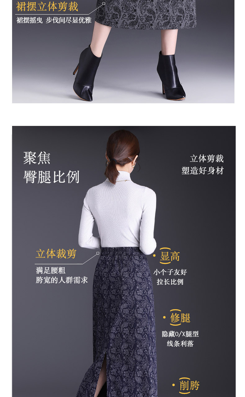 MYX通勤印花时尚直筒裙长款开叉一步裙2025年秋季新款高腰显瘦半身裙