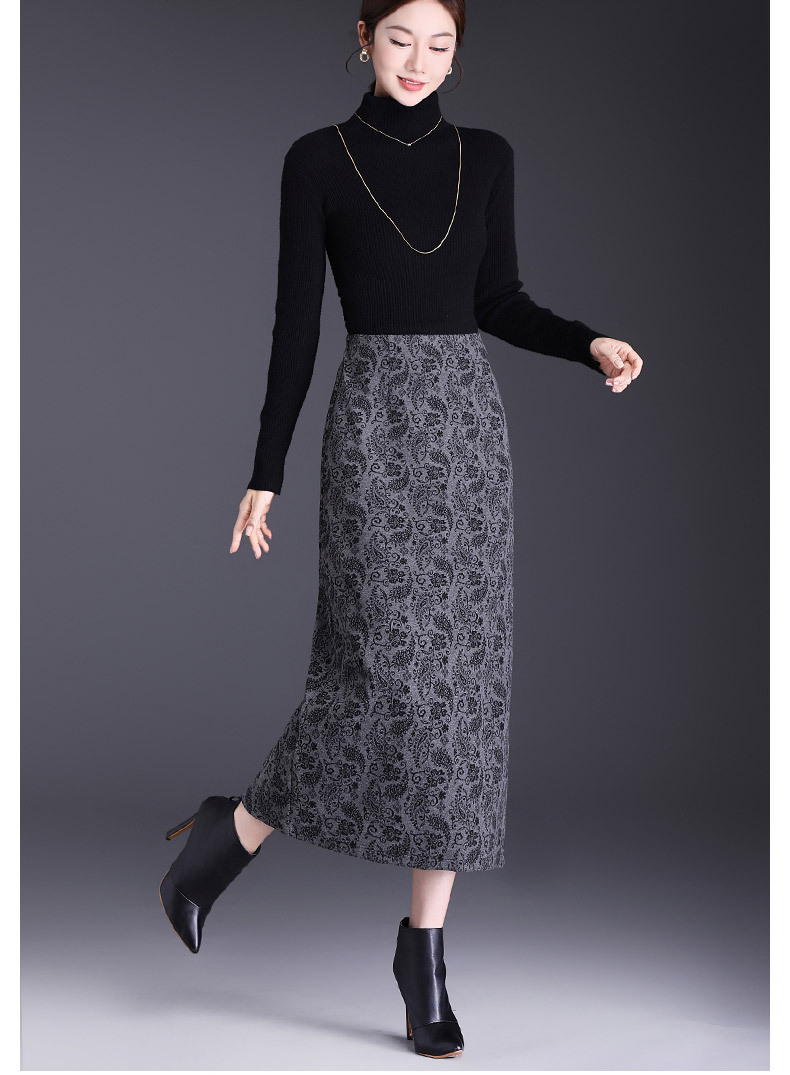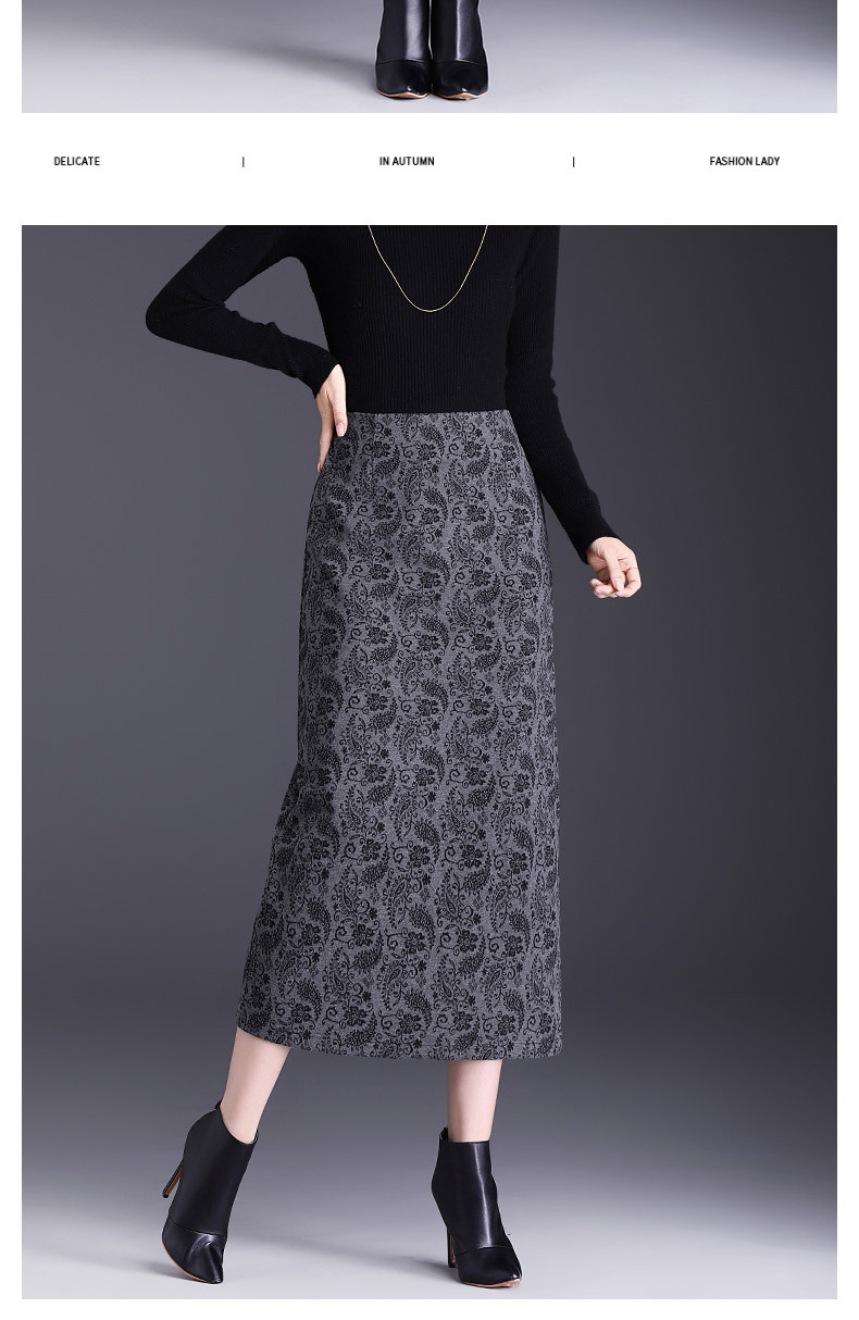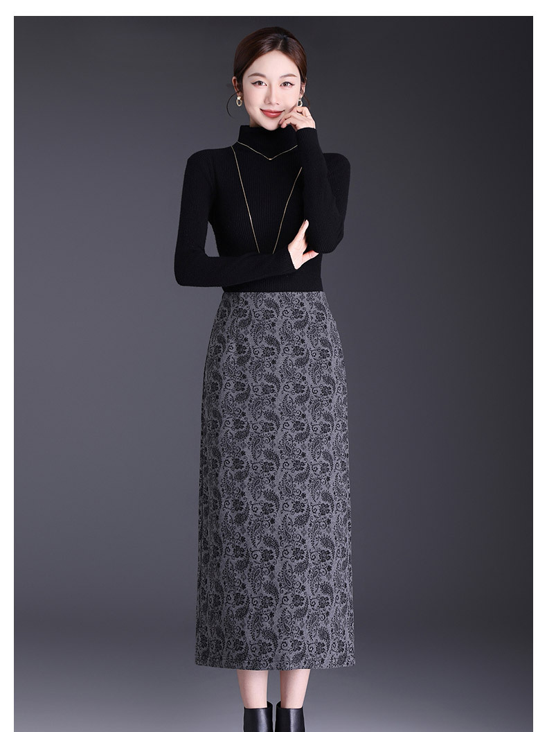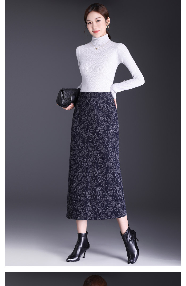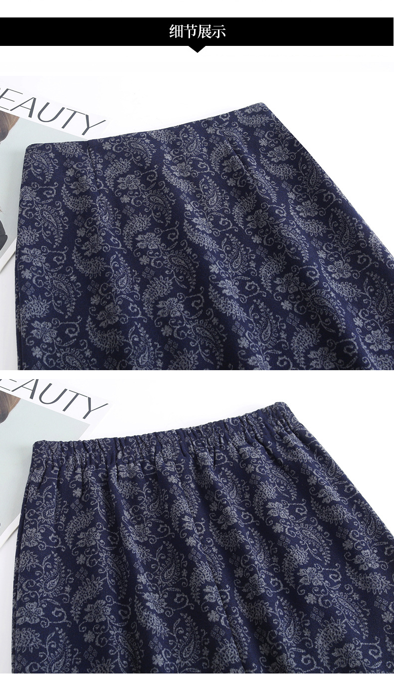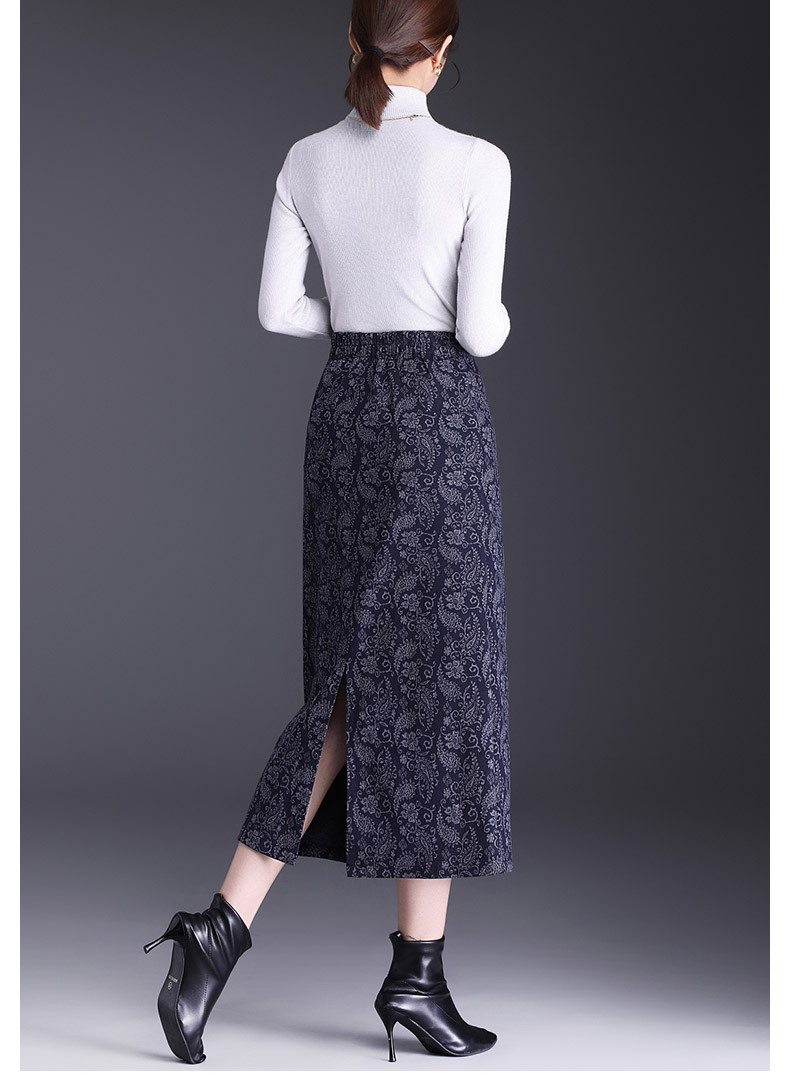 MYX通勤印花时尚直筒裙长款开叉一步裙2025年秋季新款高腰显瘦半身裙