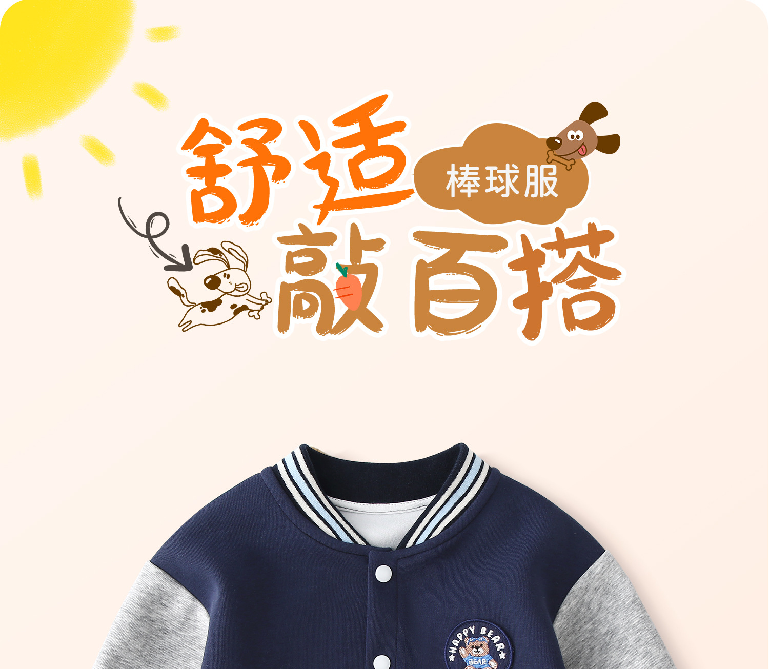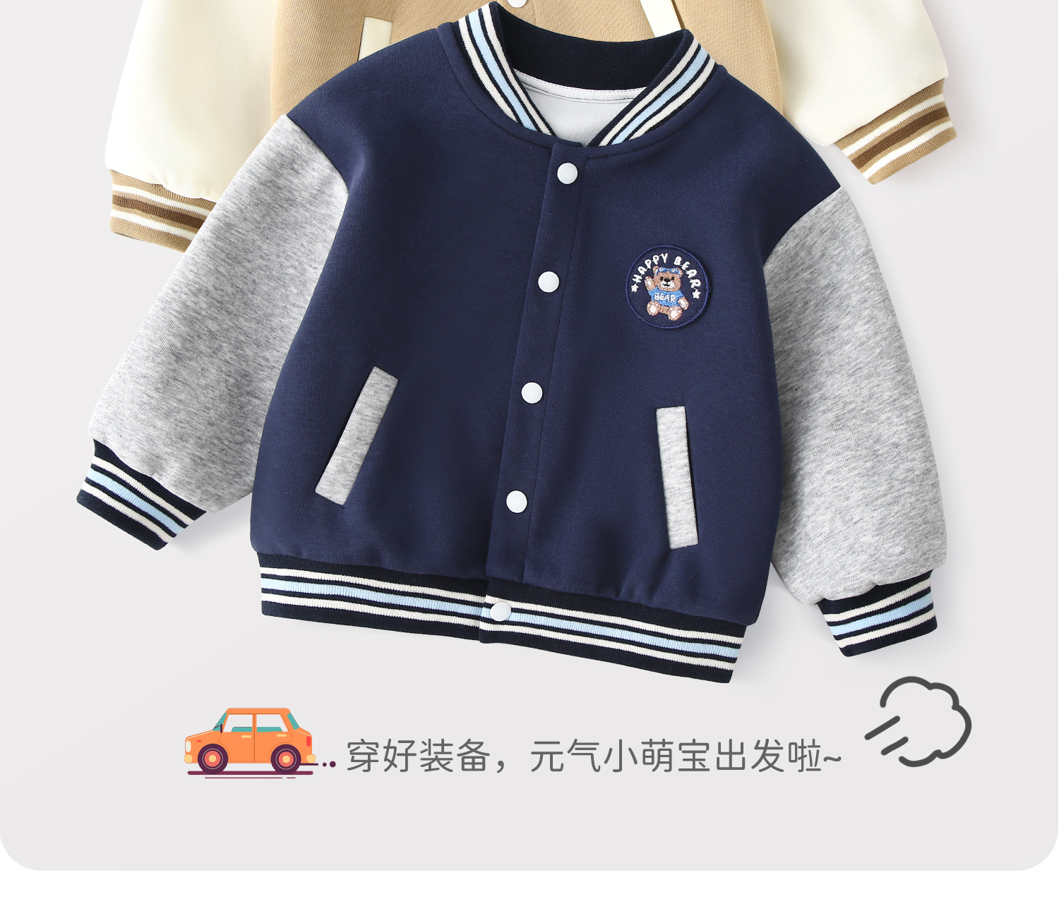 【多色可选,简单穿出彩】春秋款儿童外套 男童宝宝棒球服 女童上衣休闲外套 婴儿小童衣服童装 萌趣图案 可爱摸得到-QQ