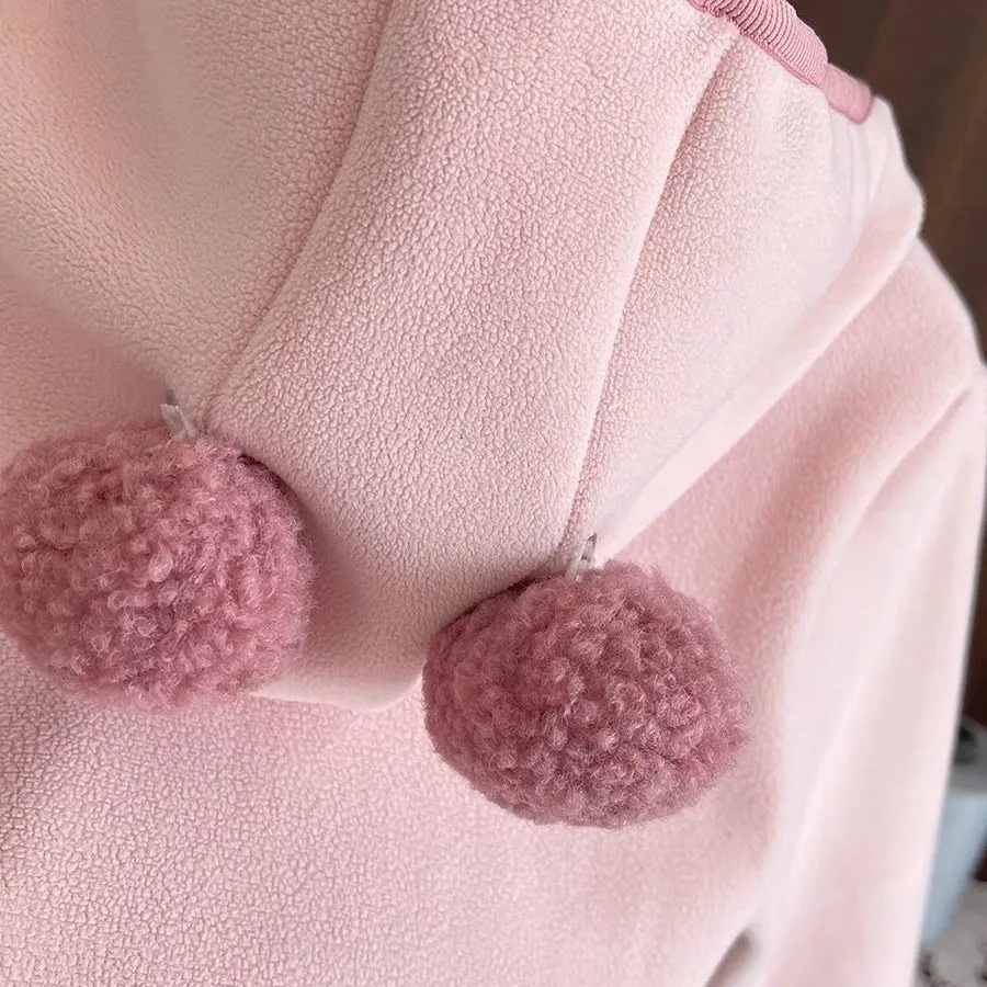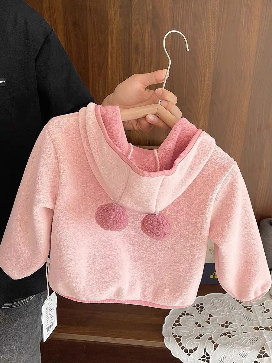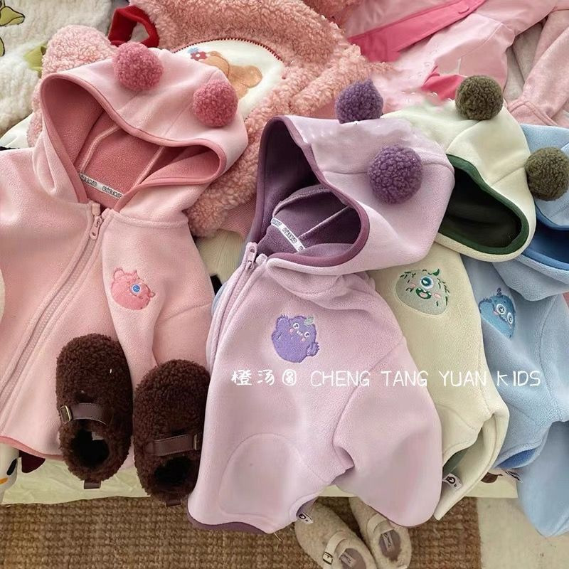 【可爱卡通设计,毛绒材质保暖加厚,男女童均可穿着】童装秋冬季外套 保暖加厚男女童 宝宝可爱卡通连帽开衫 毛绒衣服-QQ