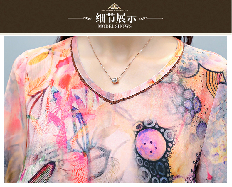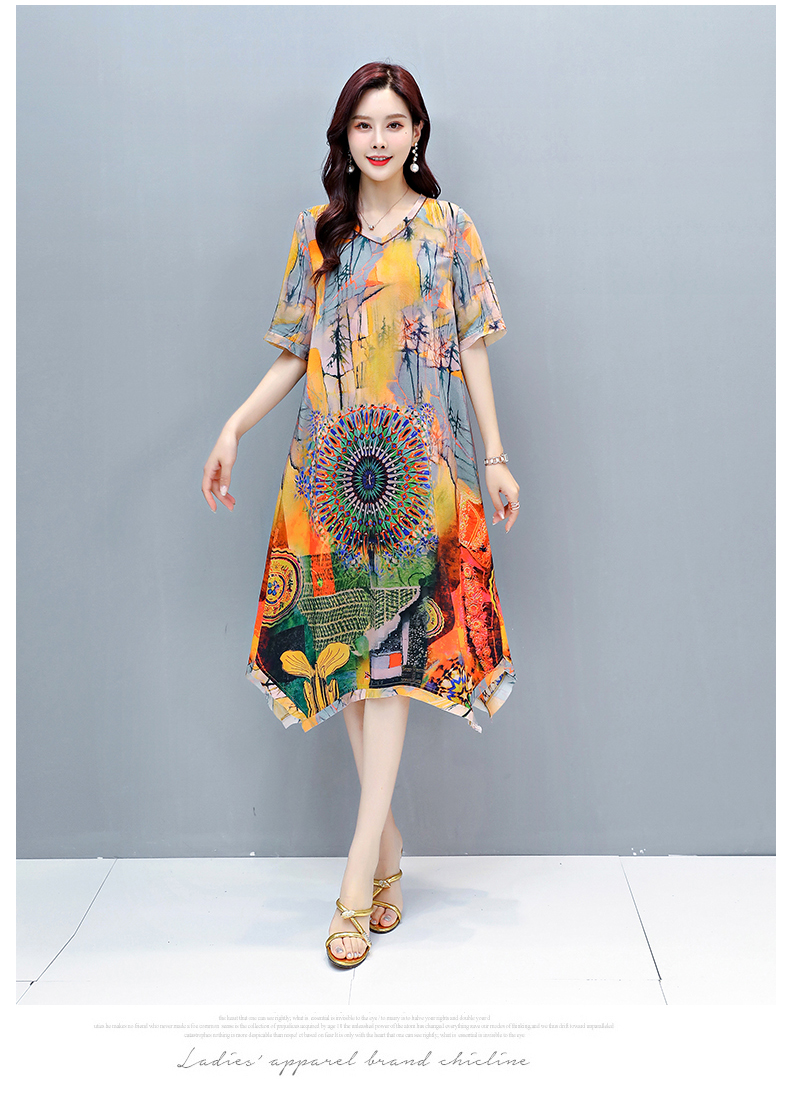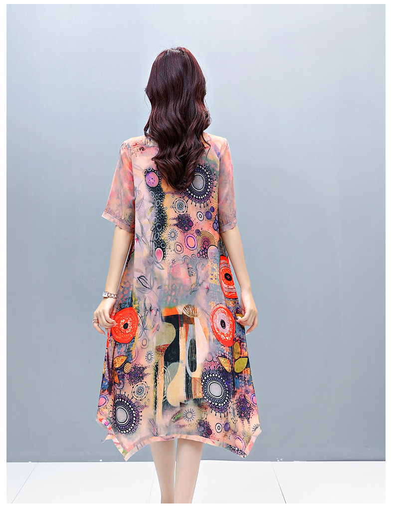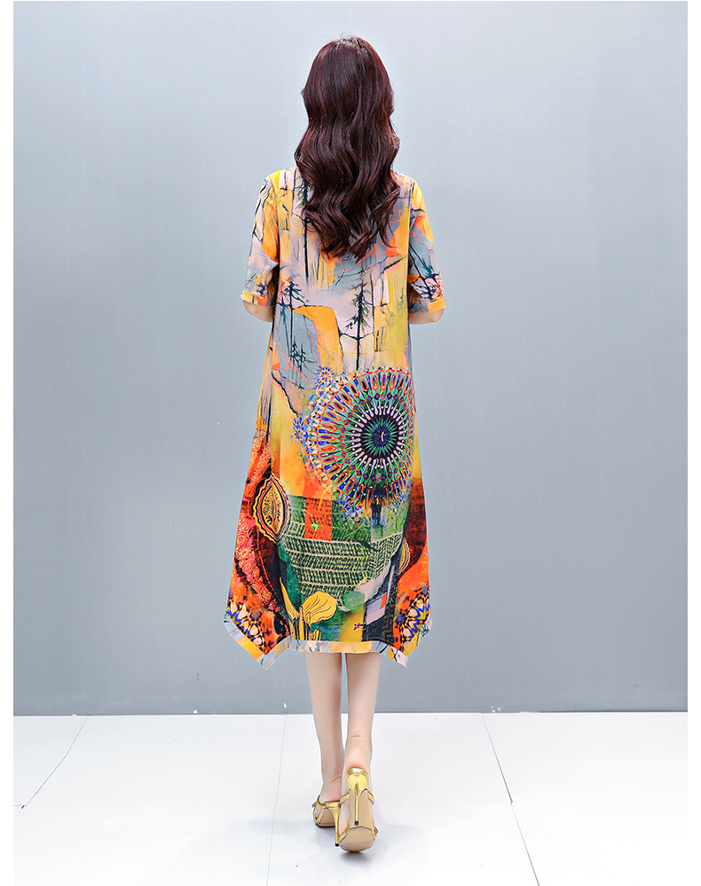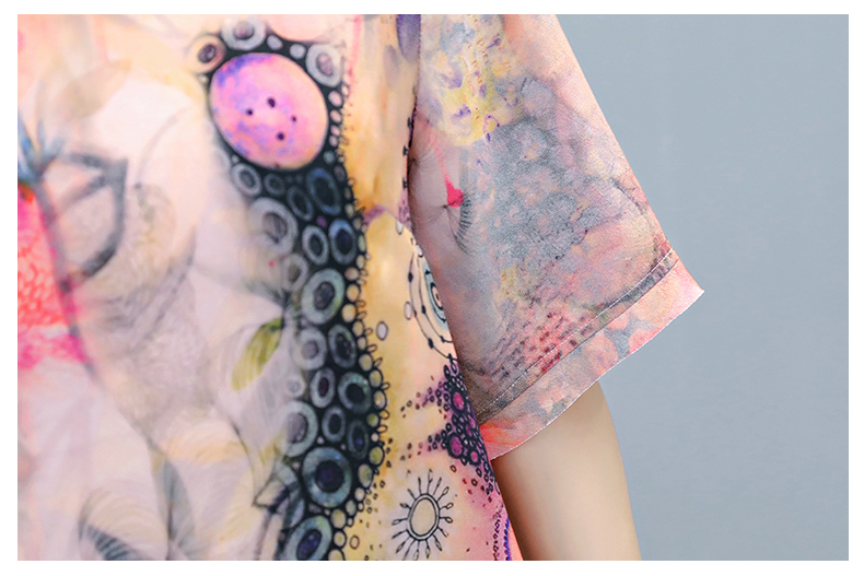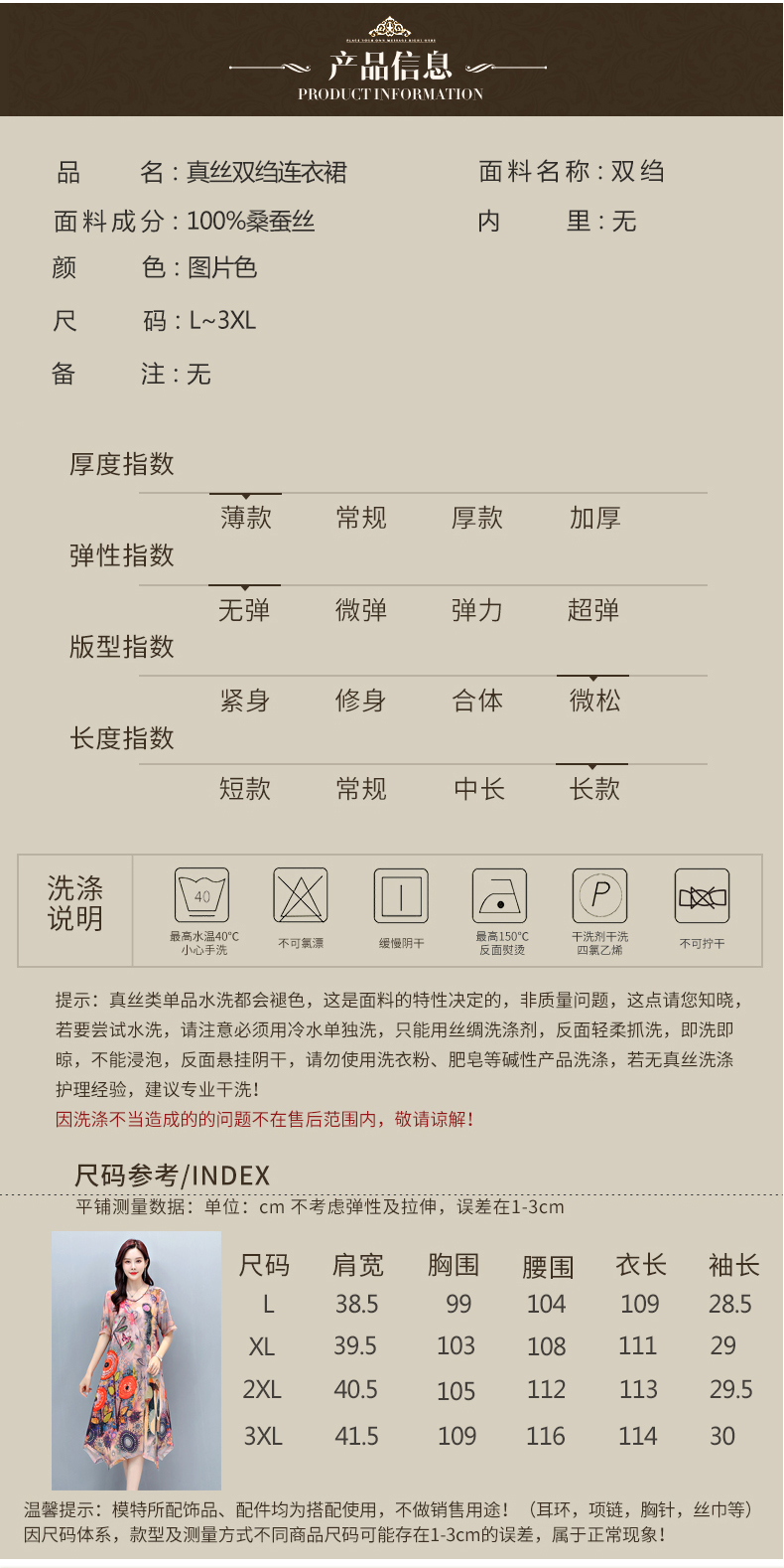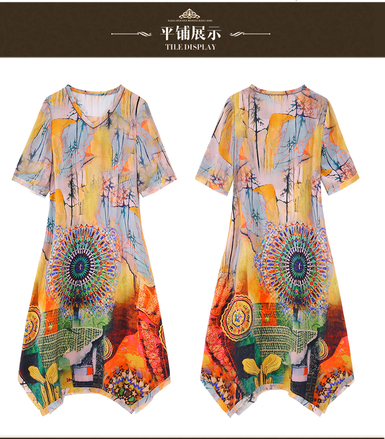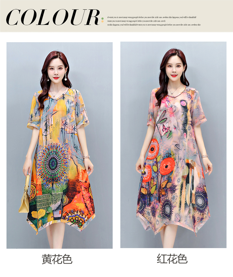 宽松舒适,长款复古套头大摆型印花真丝连衣裙MFE82132