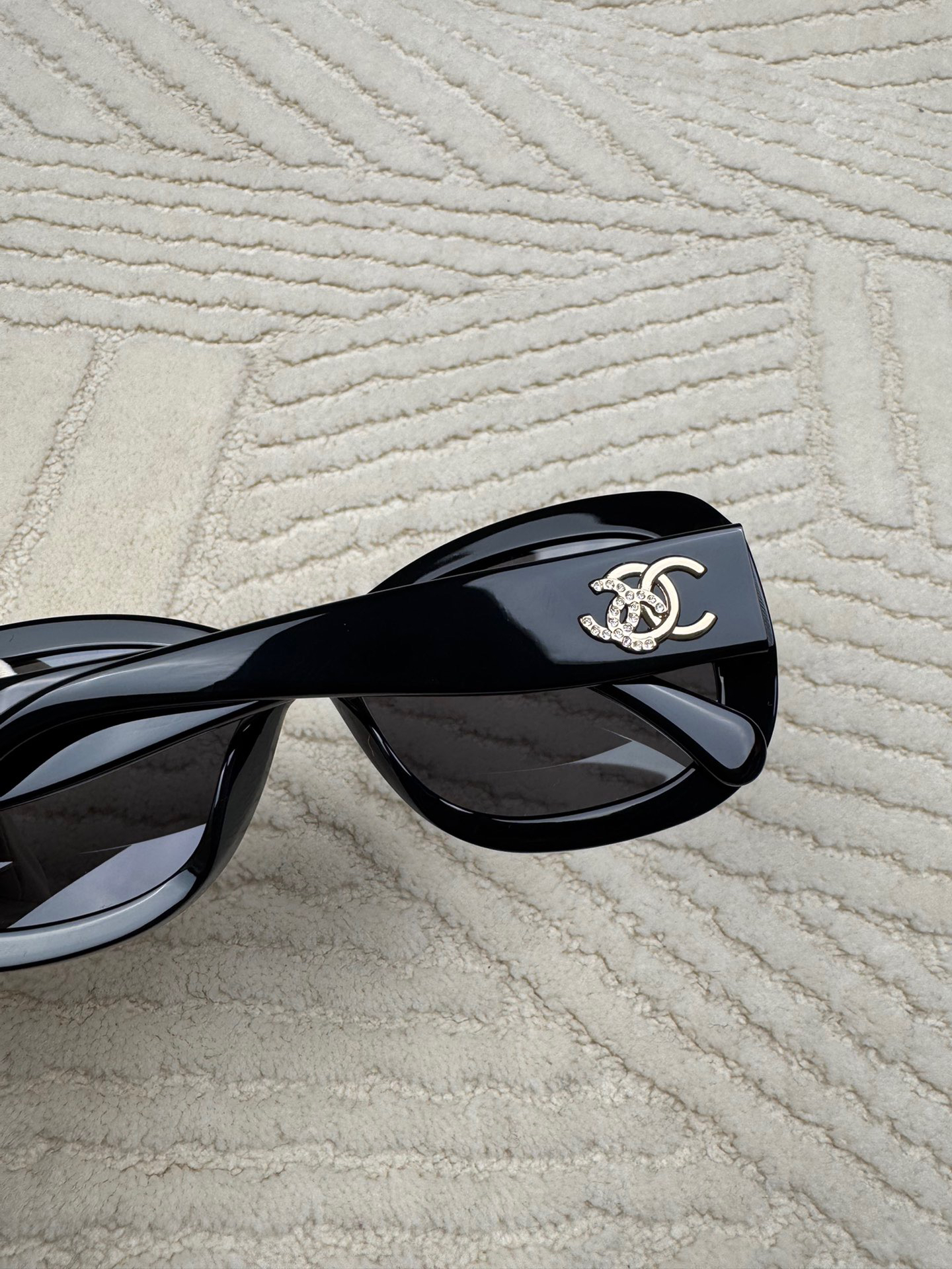 💰390 真货Chanel香奈儿双Clogo镶钻墨镜,全网独家真货,懂货的看双logo,看电镀镶钻,镜片字体,小香独家防伪字体,欢迎拿去专柜对比,型号CH5468-B- A,尺寸56口17-140,偏光镜片,欢迎专柜验货,假一赔万。