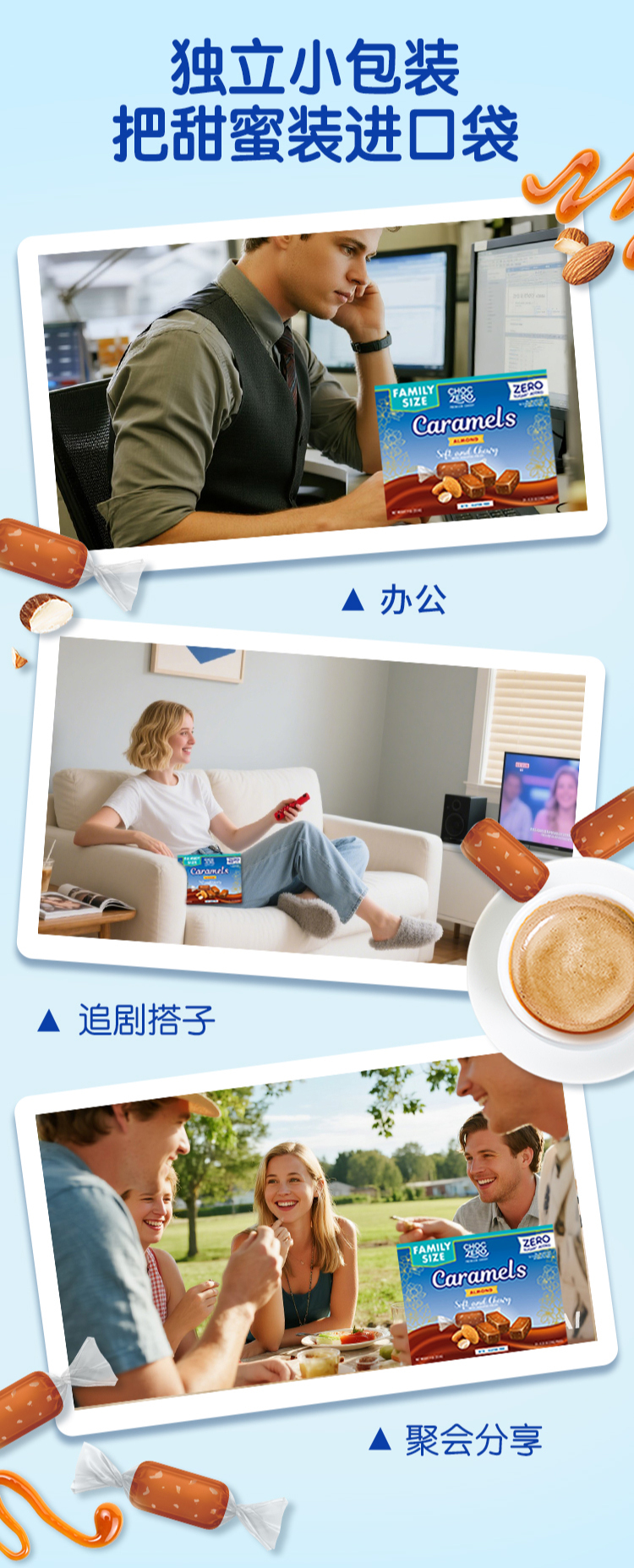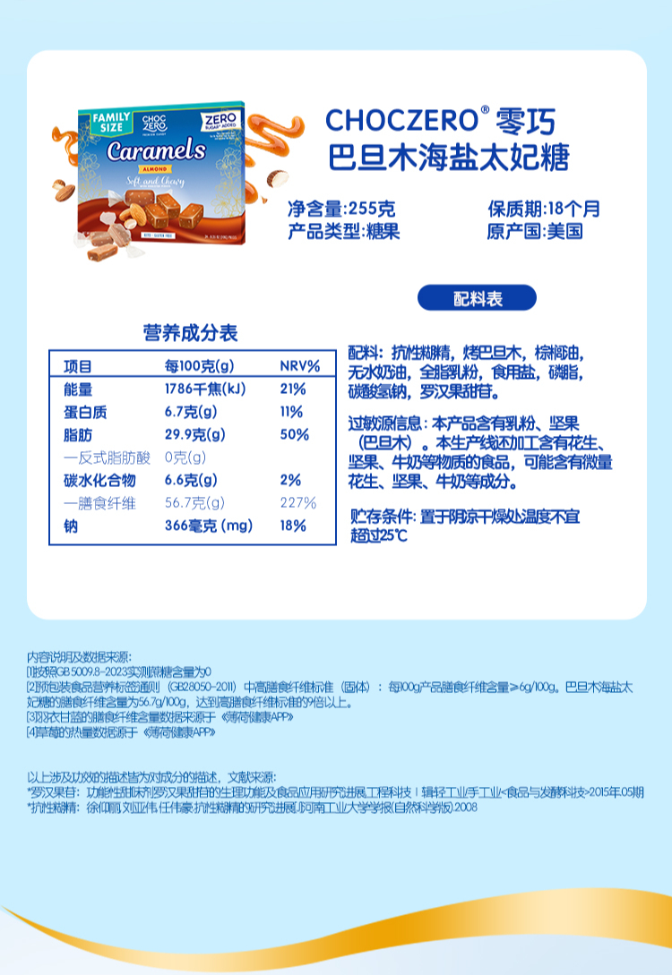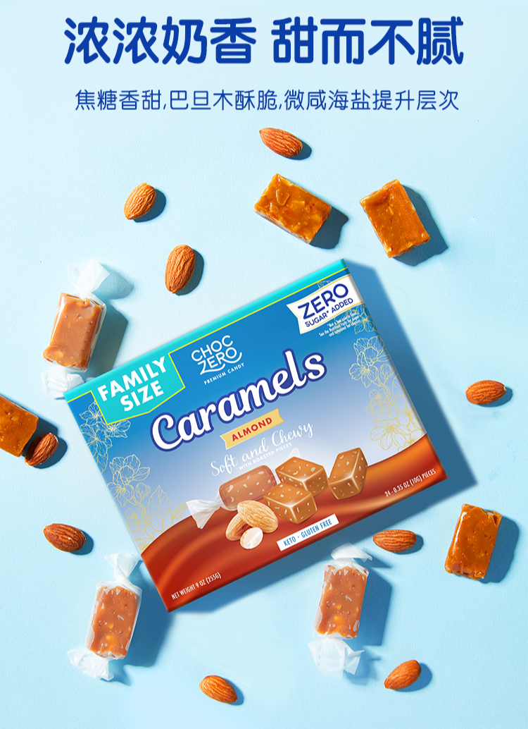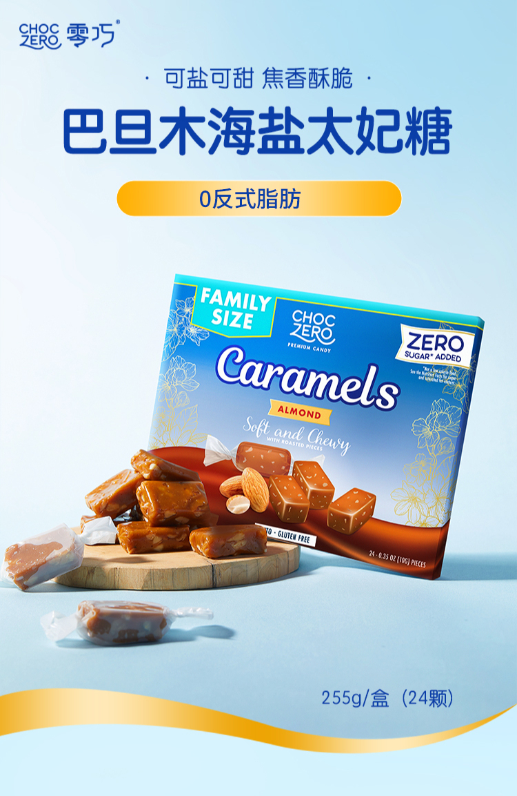 ChocZero 零巧巴旦木海盐太妃糖0蔗糖独立包装美国进口 255g